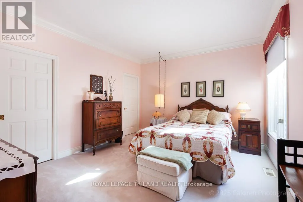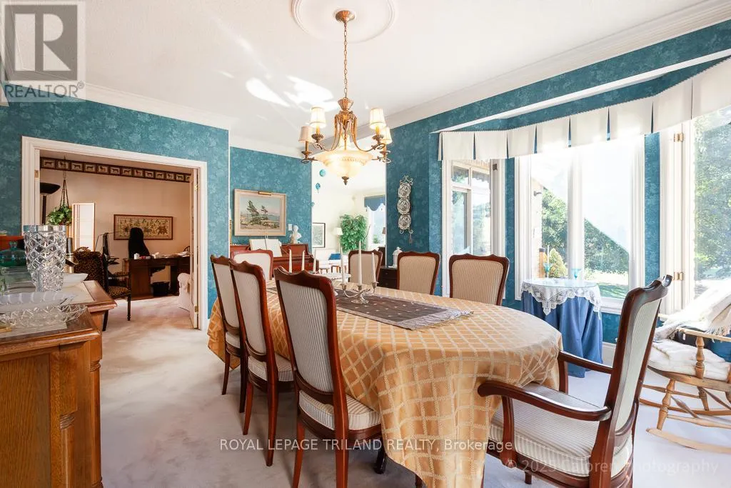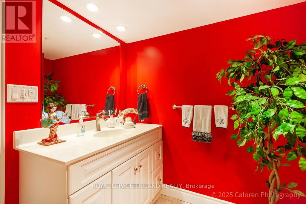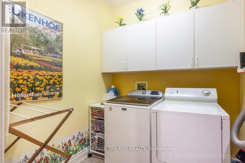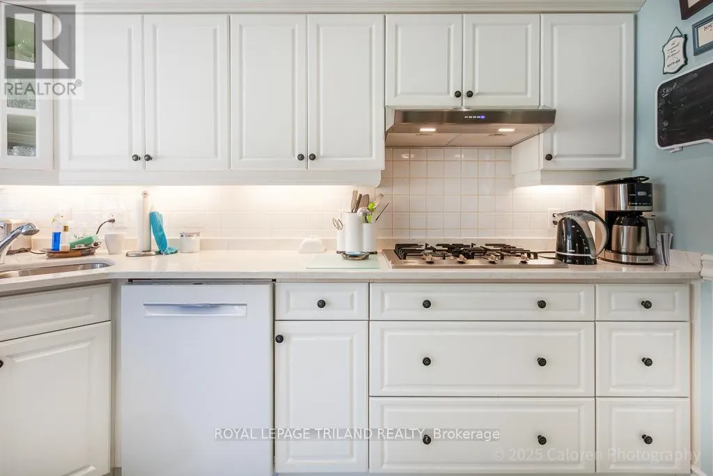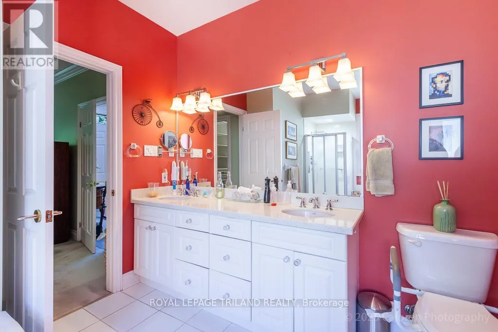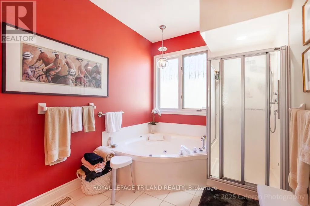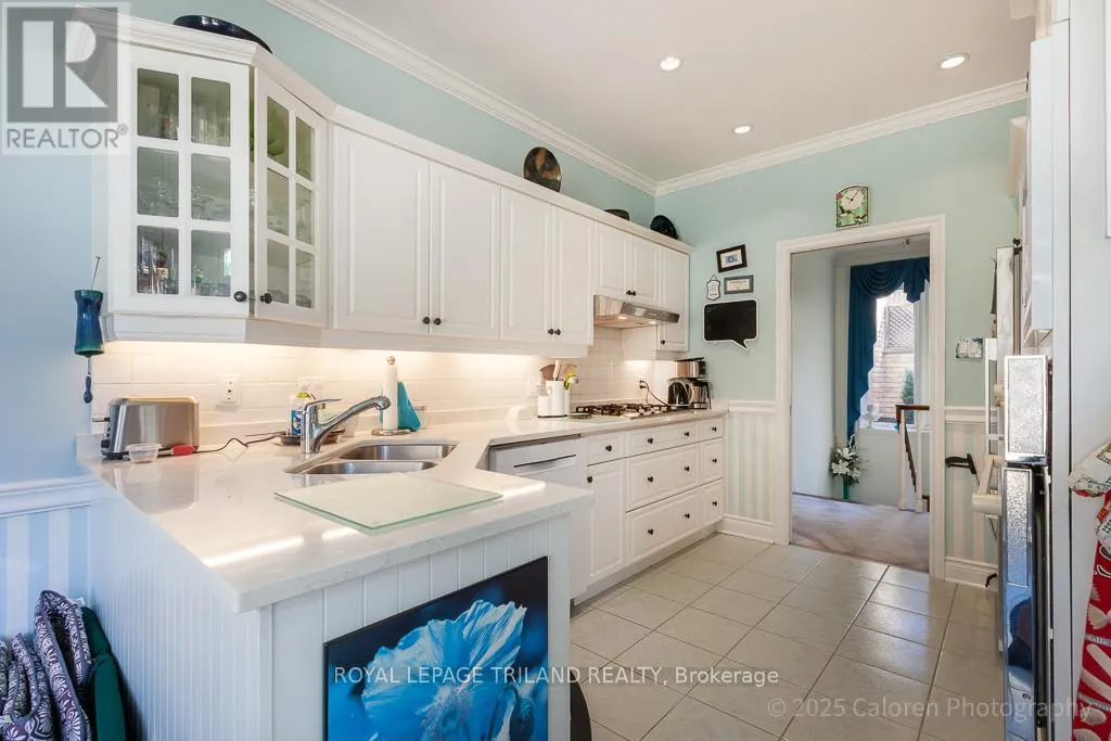 Cross Streets: HYDE PARK AND RIVERSIDE. ** Directions: WEST ON RIVERSIDE DR, COMPLEX JUST PAST THAMES VALLEY GOLF. Experience refined living in one of Londons most prestigious enclaves with this superb luxury detached condo in Hazel Lanes. This meticulously maintained home offers over 2,200 square feet of sun-filled main floor space, backing onto the scenic Thames Valley Golf Course for a tranquil and private setting perfect for both relaxation and sophisticated entertaining.Inside, discover a generous living room with a cozy gas fireplace and patio walkout to an expansive wrap-around deck equipped with retractable awnings, offering sweeping treed and golf course views. The main level features an elegant formal dining room, a spacious eat-in kitchen with abundant cabinetry and counter space, plus a bright den with direct access to a private interior courtyard.Retire to the oversized primary suite, complete with a large walk-in closet and a modern en-suite featuring a walk-in tub/shower. A second spacious bedroom, full bath, and convenient laundry area round out the main floor. The impressive 9-foot ceilings are enhanced by elegant crown moulding and a striking great room, adding to the overall sense of space and grandeur.The lower level offers a massive family room with its own fireplace, a third bathroom, and generous storage solutions ideal for extended family gatherings. A double garage with inside entry provides added convenience.Residents of Hazel Lanes enjoy access to a large heated saltwater pool, manicured green spaces, and walking and bike trails just steps away along the Thames River and Springbank Park, while Hyde Parks shopping and downtown amenities remain within easy reach. Recent updates include a newer cedar shake roof 2019, newer deck, and a high-efficiency furnace and central air installed in 2016.This exclusive, sought-after community combines elegant design with luxury amenities and an unbeatable location. Schedule your private viewing and experience the serenity and sophistication of Hazel Lanes living. (id:27476)