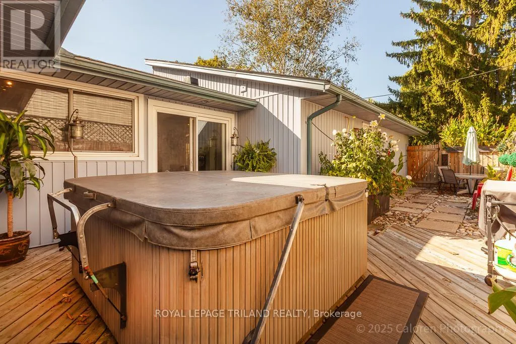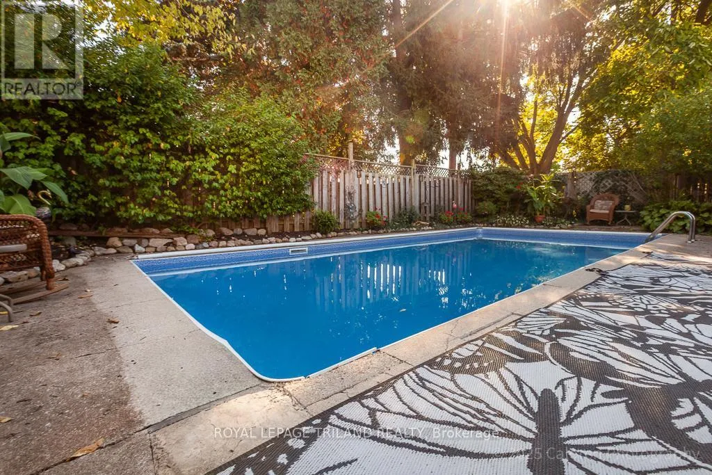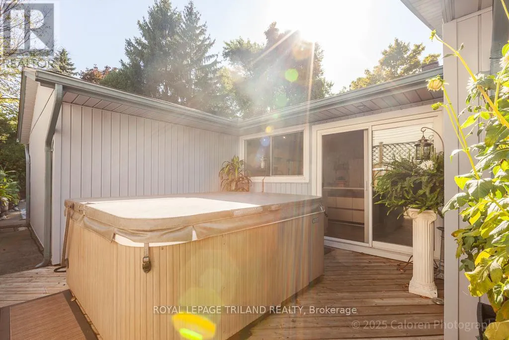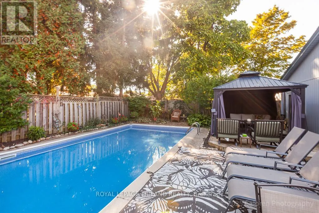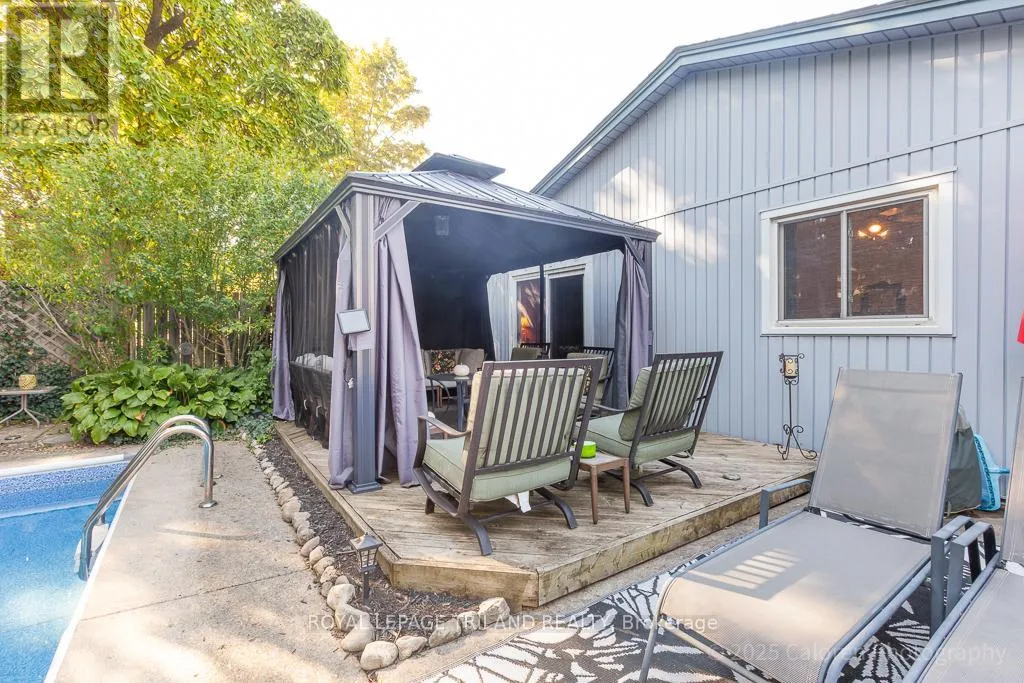 Cross Streets: CRABTREE AND YARDLWY WOODS. ** Directions: NORTH ON WONDERLAND, LEFT ON BLACKACRES, RIGHT ON YARDLEY, LEFT ON CRABTREE. Dive into comfort and relaxation with this inviting northwest London bungalow, complete with a sparkling inground swimming pool and a private hot tubperfect for unwinding or entertaining friends under the sun.This flexible home features three spacious main-floor bedrooms, plus a surprise loft retreat ideal for a fourth bedroom or a quiet home office. The principal bedroom is conveniently located on the main floor, while the open-concept great room combines a welcoming dining area and living space highlighted by a cozy gas fireplace.The large kitchen offers plenty of room for casual meals and flows seamlessly onto a private walled side garden through patio doors, providing a tranquil spot for morning coffee or evening gatherings. Step outside to enjoy the lush, south-facing backyard, where a canvas gazebo and deck lounge area create the perfect setting for summer relaxation.Recent updates include refreshed bathrooms, new shingles (2022), and a durable cement double-wide driveway for added convenience. Located in a quiet, sought-after residential neighbourhood, this property is close to grocery stores, the library, gym facilities, wooded trails, easy transportation options, and minutes from Western University.Welcome home to a lifestyle that blends comfort, flexibility, and outdoor enjoyment in one of Londons most desirable communities. (id:27476)