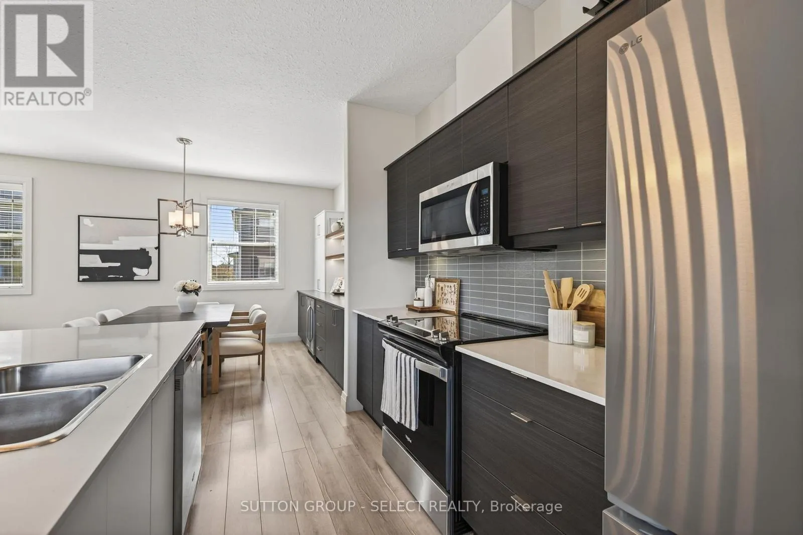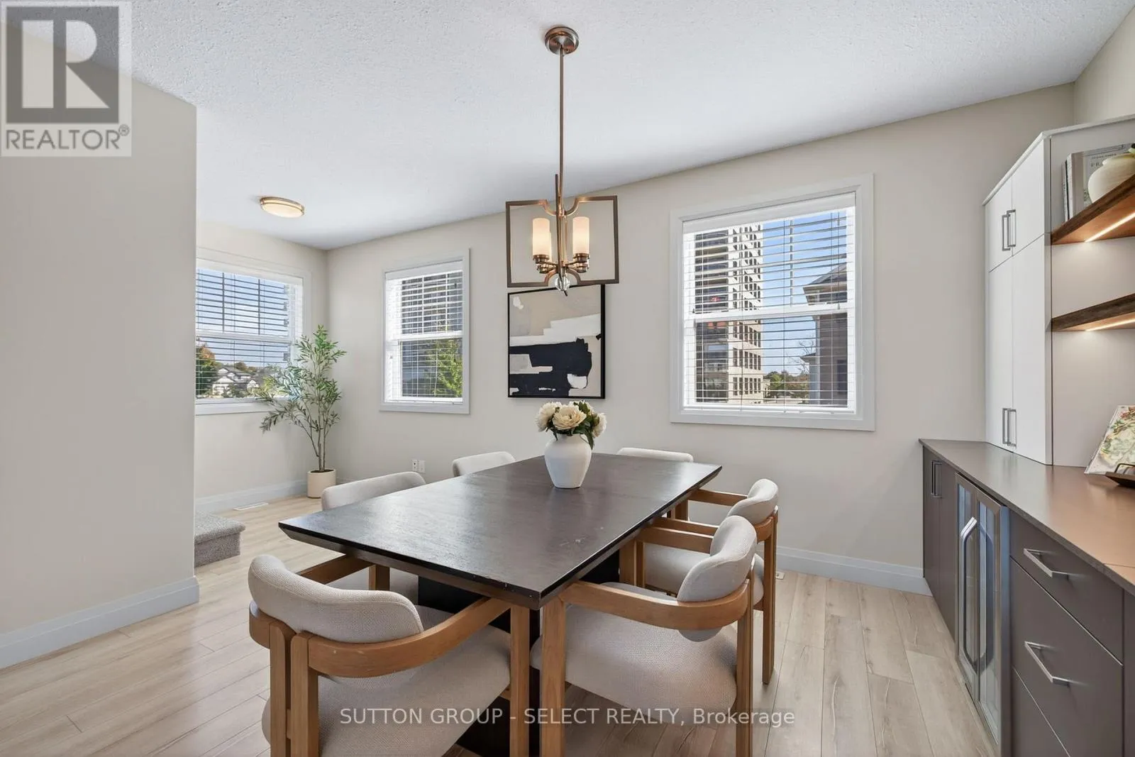 Cross Streets: South Carriage Road and Coronation Drive. ** Directions: From Hyde Park Road, east S Carriage Road, north on Coronation Drive. Nestled in a quiet North-West London community of thoughtfully designed three storey townhomes, this premium condo home is situated on the nicest private end unit location in Northcliff Towns and is a short 7-minute walk to the shops and restaurants of Hyde Park Village. With its open concept living space bathed in natural light and rear deck with treed privacy and beautiful views, this is a great place to call home. The contemporary styled kitchen is the central point of the home and includes a four-seat island, stainless steel appliances, built-in microwave, plenty of storage space and is open to the great room to the back and dining room toward the front of the home. Dining room has gorgeous custom built-in cabinetry with bar fridge (installed in 2022) adding to the style and functionality of the space. The oversized great room is bathed in natural light and is ideal for relaxing or entertaining. Listen to the birds and breeze through the trees on the premium deck with privacy glass railings and weather-deck surface. Upstairs, the spacious primary suit includes a walk-in closet and ensuite bathroom with glass shower. Two additional good-sized bedrooms share a three-piece bathroom. Laundry is also conveniently located on the bedrooms floor. Main floor entry has huge walk-in closet, inside access from the tandem two car garage and utility room offers additional storage space. Private driveway gives you a total of three dedicated parking spaces including the garage. Additional updates include washer/dryer, dishwasher, microwave (2021), stove (2023), fridge (2025), bedrooms and stairs carpet (2025) and fresh paint. Parks, schools and extensive trails are nearby as well as several of the city's best markets, grocery and big-box shopping. Book your showing today. (id:27476)