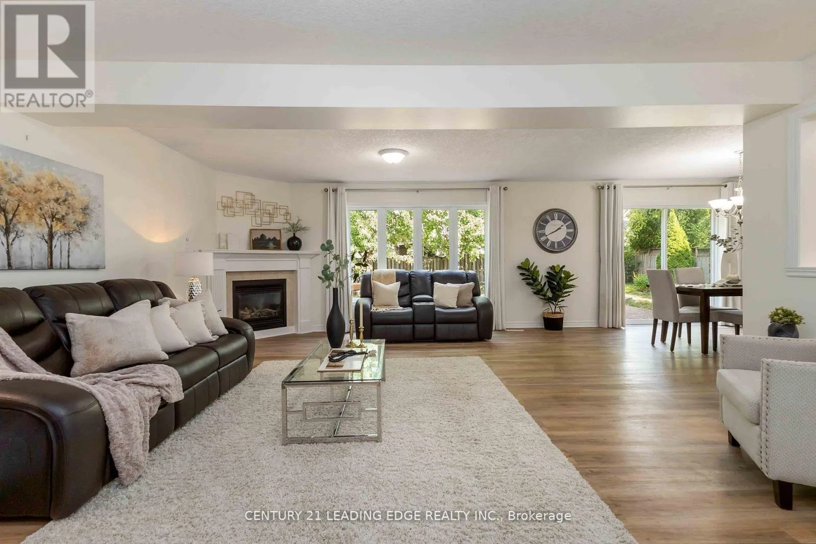 From Sunningdale Rd E turn to south Weinge Drive make right to Father Dalton to Fog Welcome to your dream home in prestigious Stoney Creek, North London! Offering more than 2,230sq. ft. of beautifully designed living space, this spacious 2-storey home sits on a premium pie-shaped lot at the end of a quiet cul-de-sac in one of the city's most sought-after neighbourhoods. Inside, you'll find 4 generously sized bedrooms, including the oversized primary suite with a luxurious 5-piece ensuite and custom walk-in closet that perfectly blends elegance and functionality. The bright, open-concept main floor features a gas fireplace,durable luxury vinyl flooring, and large rear windows that flood the living room with natural light. With three bathrooms, a double-car garage, and a thoughtful floor plan, this home is designed for both everyday living and entertaining. The unfinished basement offers even more potential with tall ceiling height and large egress windows, perfect for creating your dreamrec room, gym, or additional bedrooms or living space. Step outside to a private, low-maintenance backyard with perennial gardens and a large deck, ideal for gatherings or quiet evenings. Located just minutes from top-rated Stoney Creek Public School, the YMCA and library, nature trails, shopping, Masonville Mall, and more. Plus, you will enjoy an easy commute to Western University or Downtown London. A home with this much space, on a premium lot, with a cul-de-sac setting is a rare find, don't miss your chance to make it yours. Book your viewing today! (id:27476)