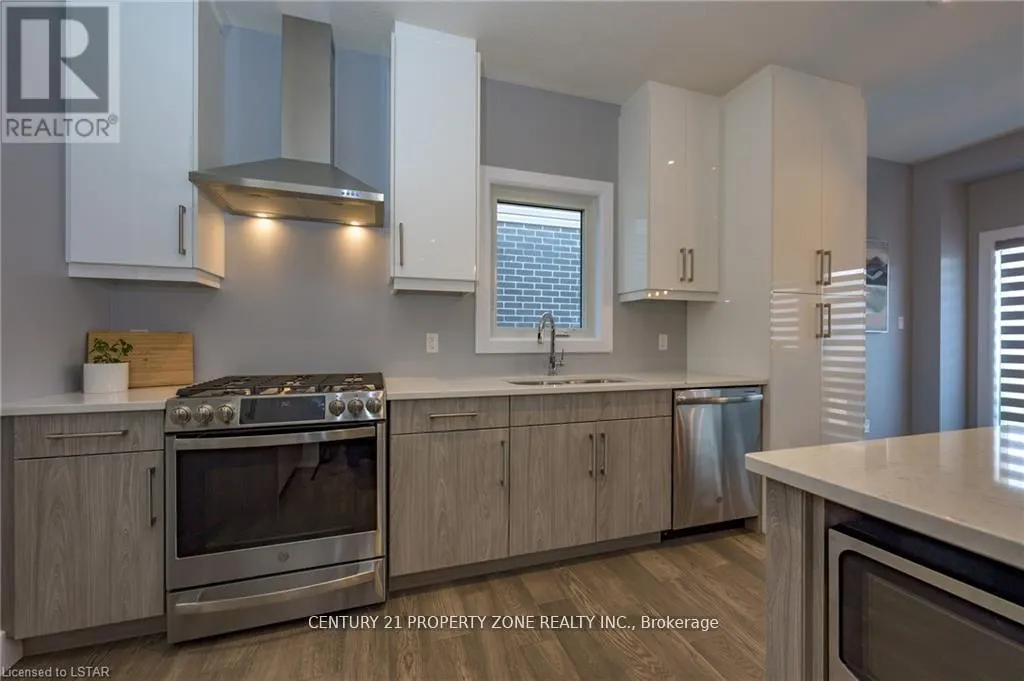 Take Sunningdale Rd left on Denview Ave take Tokal Exceptional Leasing Opportunity Elegant 4-Bedroom Home In North London's Premier Community Discover The Perfect Blend OfStyle And Comfort In This Immaculate 4-Bedroom Home, Complete With A 2-Car Garage And Fully Fenced Backyard, Situated InOne Of North London's Most Sought-After Neighborhoods. This Beautifully Maintained Residence Showcases ContemporaryFinishes Throughout, Including Expansive Rear-Facing Oversized Windows That Fill The Home With Natural Light. TheChef-Inspired Kitchen Is Outfitted With Sleek Quartz Countertops, Premium Stainless Steel Appliances, And A Practical BreakfastBar, Ideal For Both Everyday Living And Entertaining. Additional Highlights Upgraded Light Fixtures And Abundant Pot LightingThroughout No Front Walkway, Ensuring Added Privacy Carpet-Free Main Floor With High-End Flooring Crafted WithTop-Quality Materials And Exceptional Attention To Detail, This Home Offers Sophisticated Living In A Vibrant, Family-FriendlySetting. BASEMENT IS NOT INCLUDED. (id:27476)