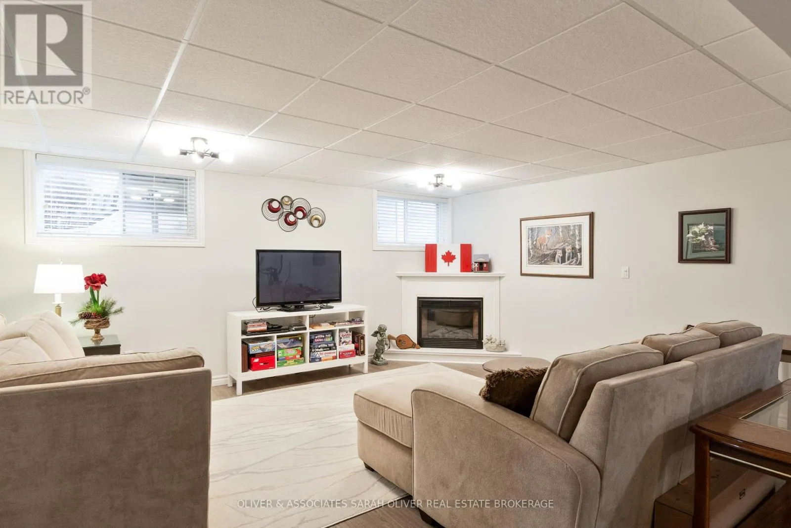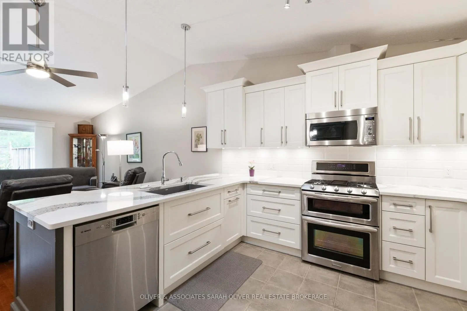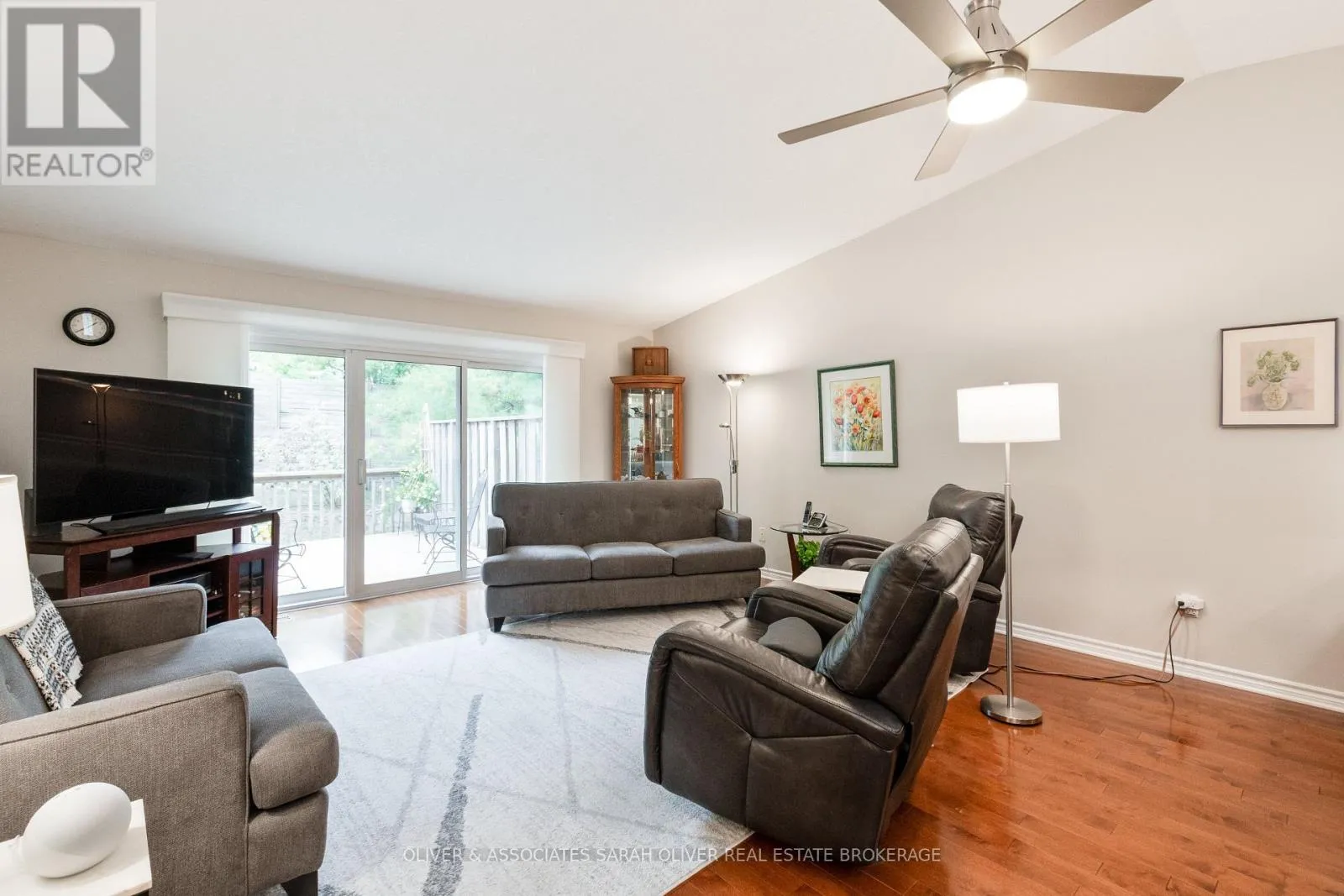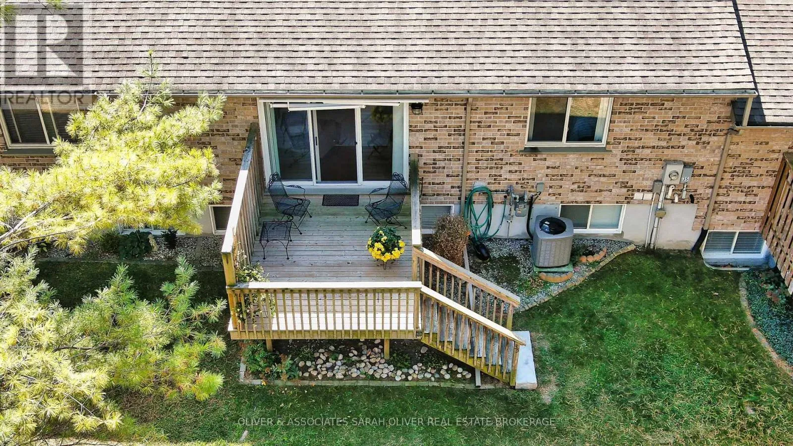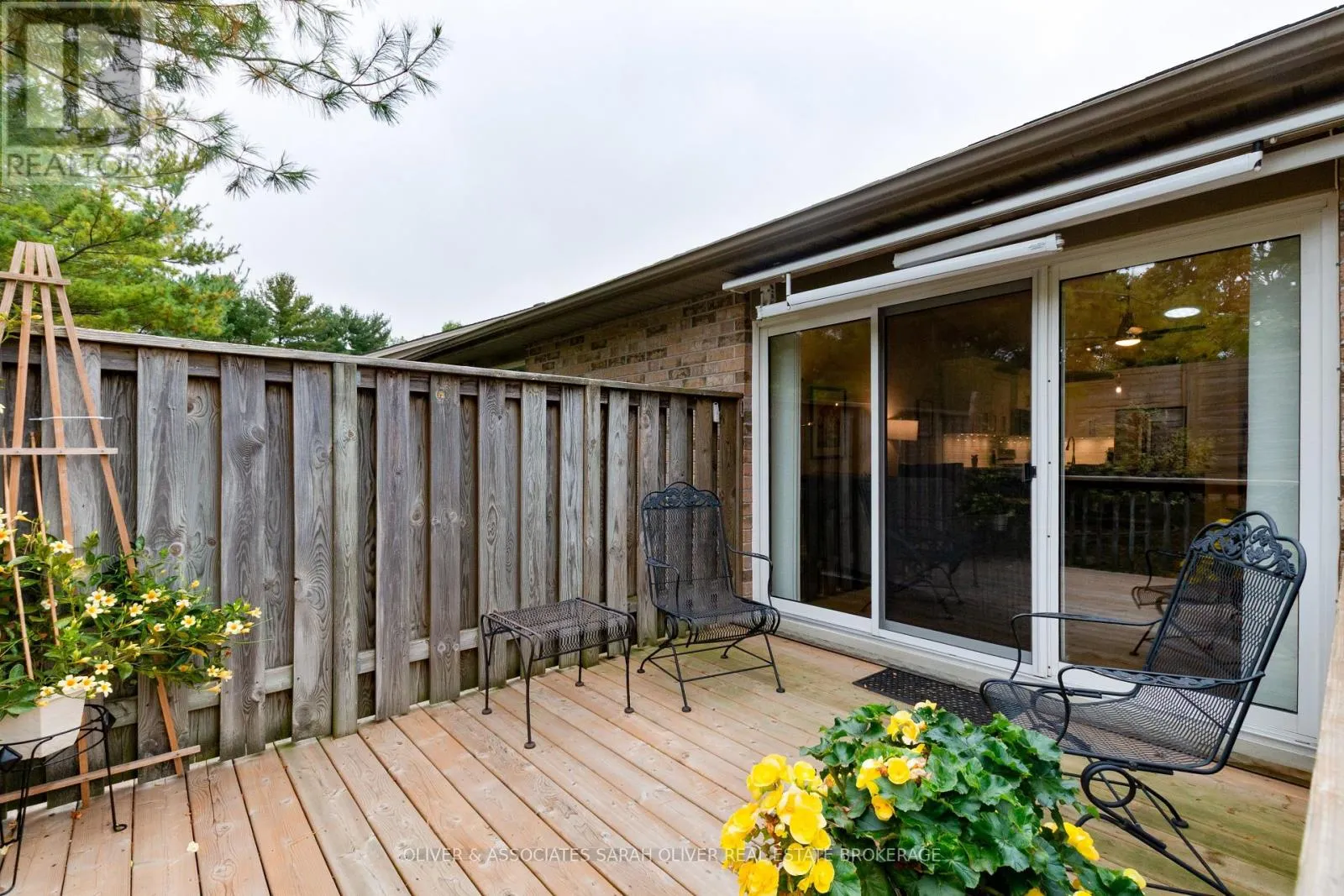 East on Beaverbrook Ave from Wonderland Rd Beautifully updated 2+1 bedroom townhouse with 3 full bathrooms in a quiet, well-maintained complex! This charming home features an open-concept layout with a newer modern kitchen with quartz countertops, perfect for entertaining. The main floor primary bedroom is spacious with a walk-in closet and a 3 piece ensuite. The finished basement offers a cozy family room, an additional bedroom and a third bathroom which provides plenty of options for your family or guests. This unit is nestled in a prime private location in the complex with no neighbours or buildings behind. Outside, you will find a cute front patio and a rear deck off of the living room with a retractable awning. Enjoy the convenience of a double garage and proximity to shops, restaurants, and all essential amenities. Perfect spot for retiring couples, professionals or those simply looking to downsize. Several updates include kitchen, furnace and air, hot water tank as well as two showers. Please note: Laundry rough-in available on the main level. (id:27476)
