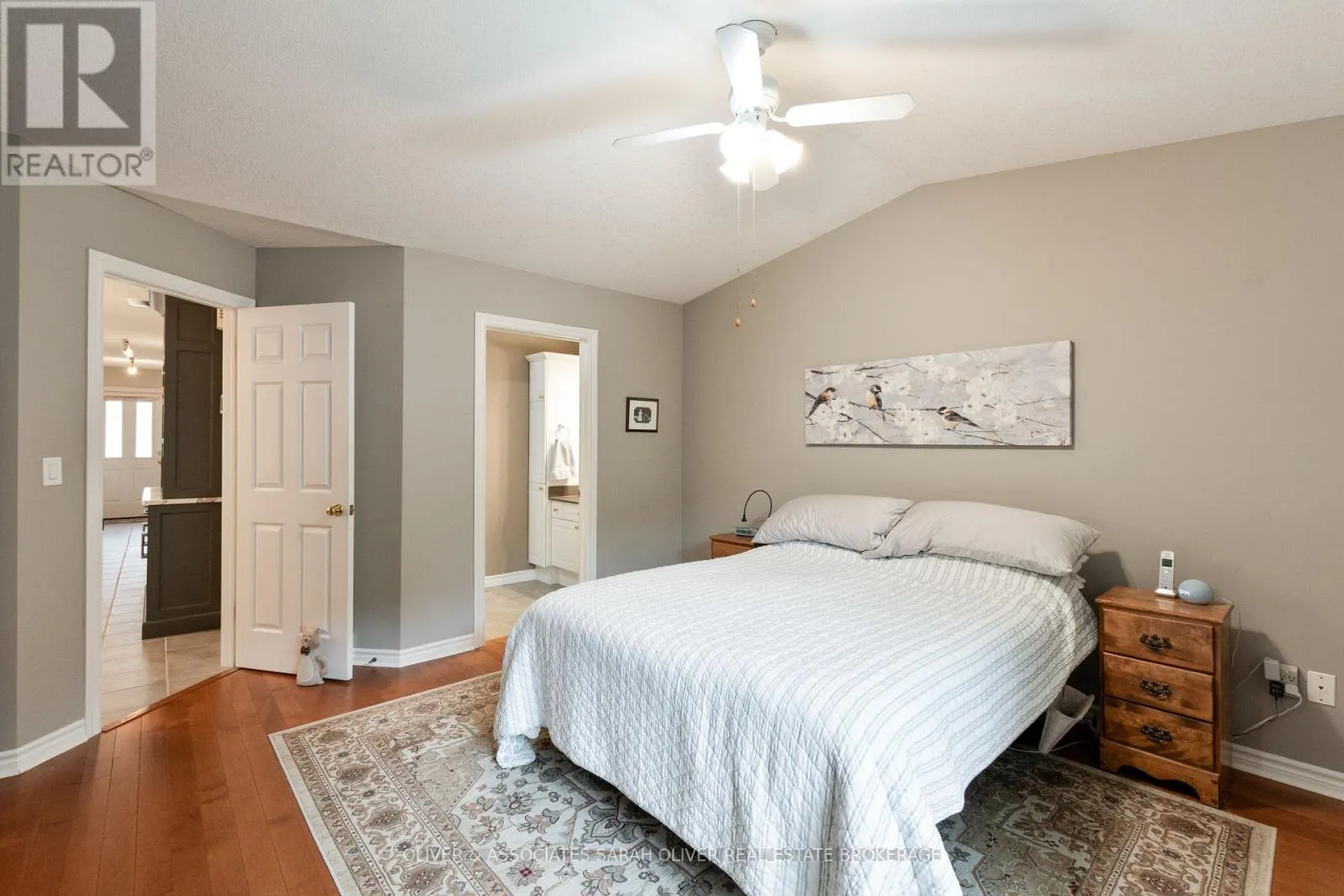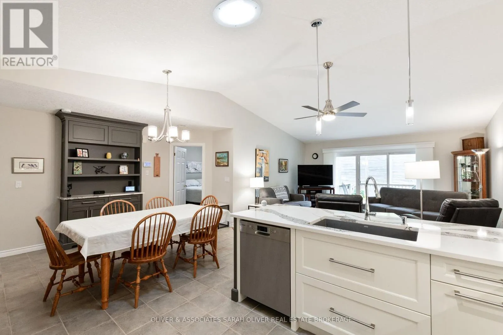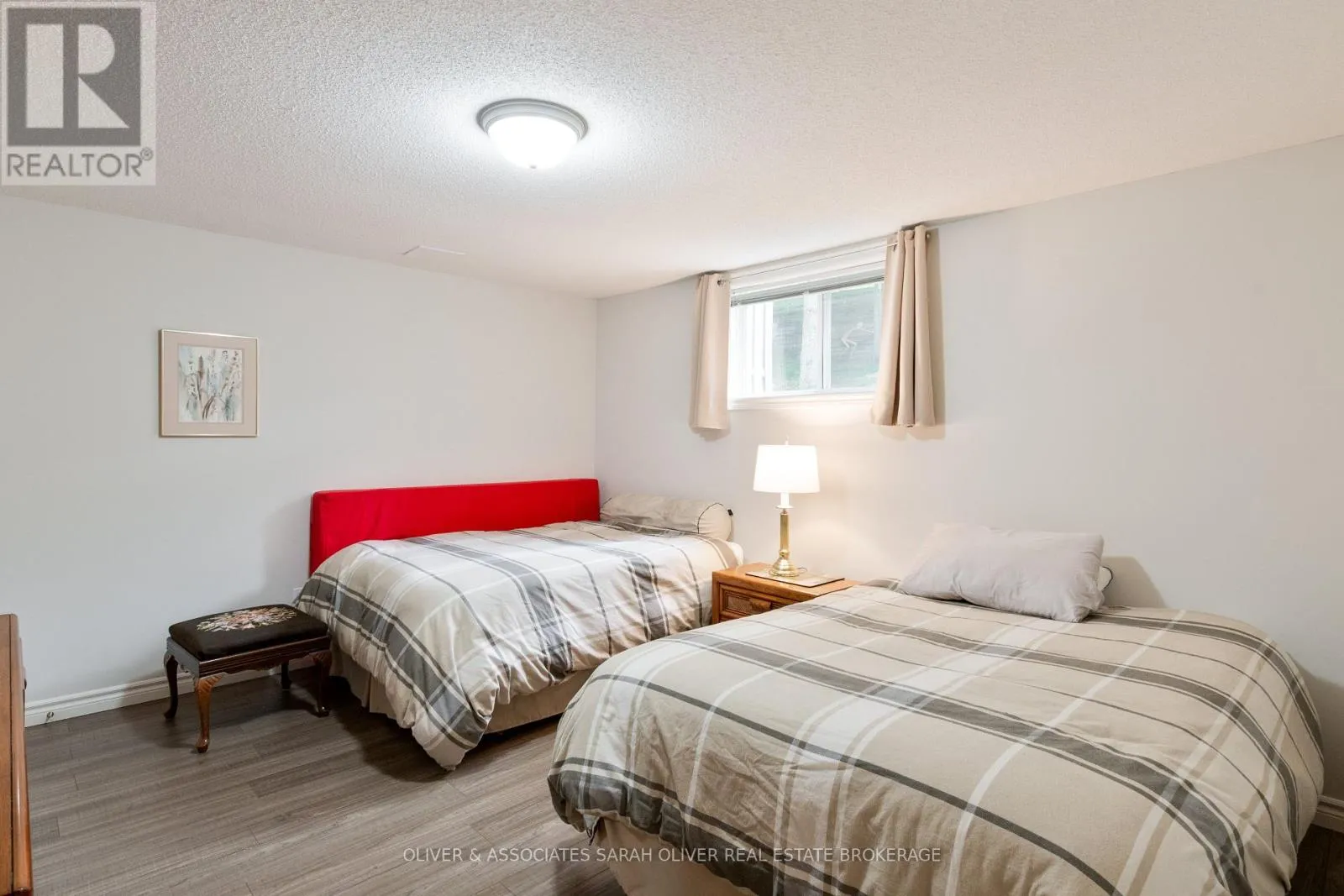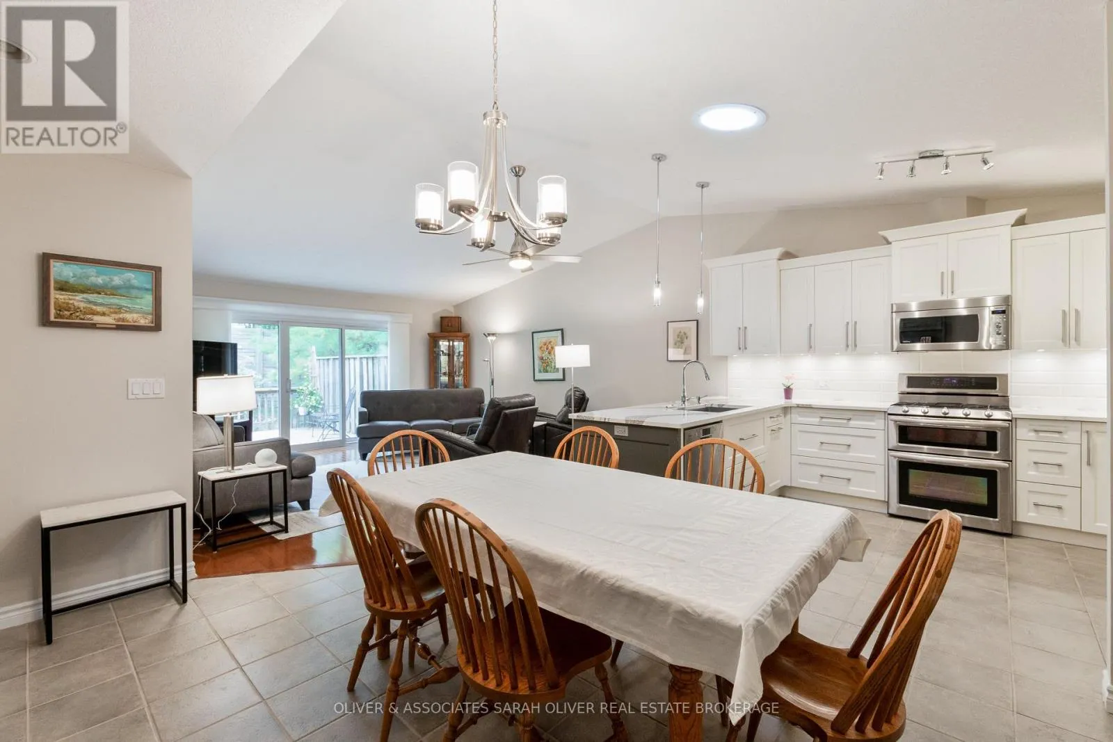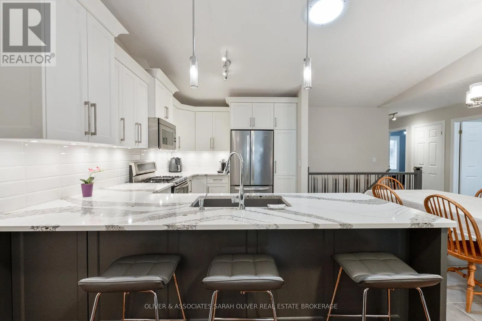 East on Beaverbrook Ave from Wonderland Rd Beautifully updated 2+1 bedroom townhouse with 3 full bathrooms in a quiet, well-maintained complex! This charming home features an open-concept layout with a newer modern kitchen with quartz countertops, perfect for entertaining. The main floor primary bedroom is spacious with a walk-in closet and a 3 piece ensuite. The finished basement offers a cozy family room, an additional bedroom and a third bathroom which provides plenty of options for your family or guests. This unit is nestled in a prime private location in the complex with no neighbours or buildings behind. Outside, you will find a cute front patio and a rear deck off of the living room with a retractable awning. Enjoy the convenience of a double garage and proximity to shops, restaurants, and all essential amenities. Perfect spot for retiring couples, professionals or those simply looking to downsize. Several updates include kitchen, furnace and air, hot water tank as well as two showers. Please note: Laundry rough-in available on the main level. (id:27476)