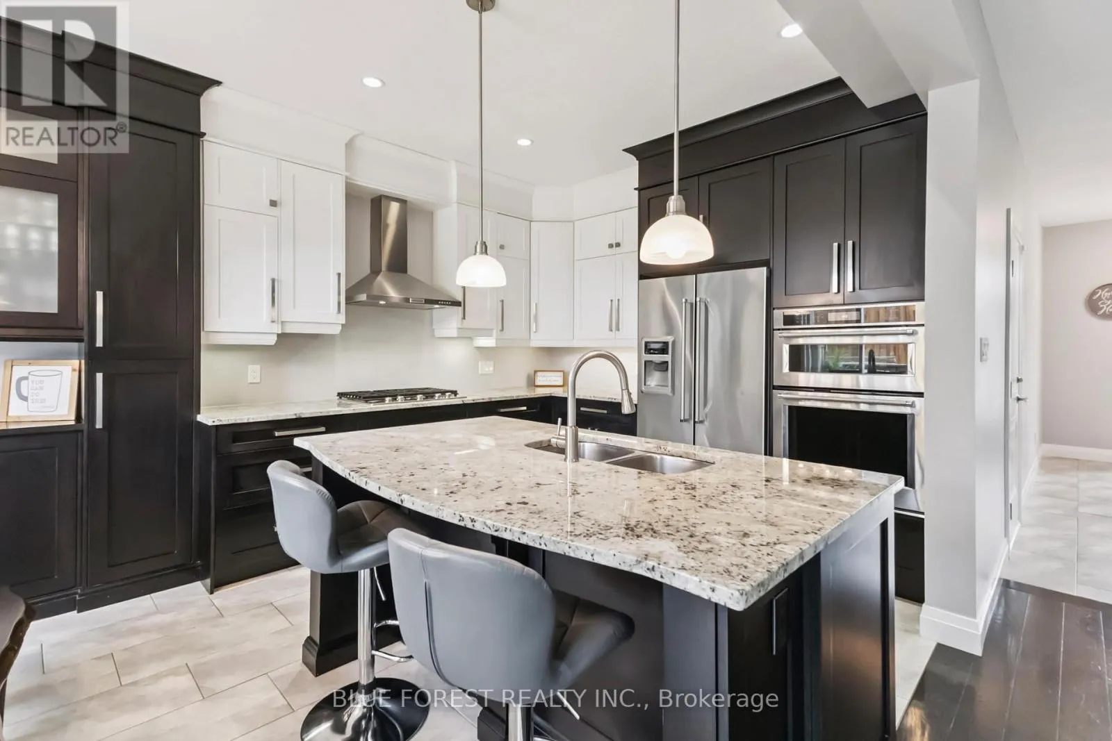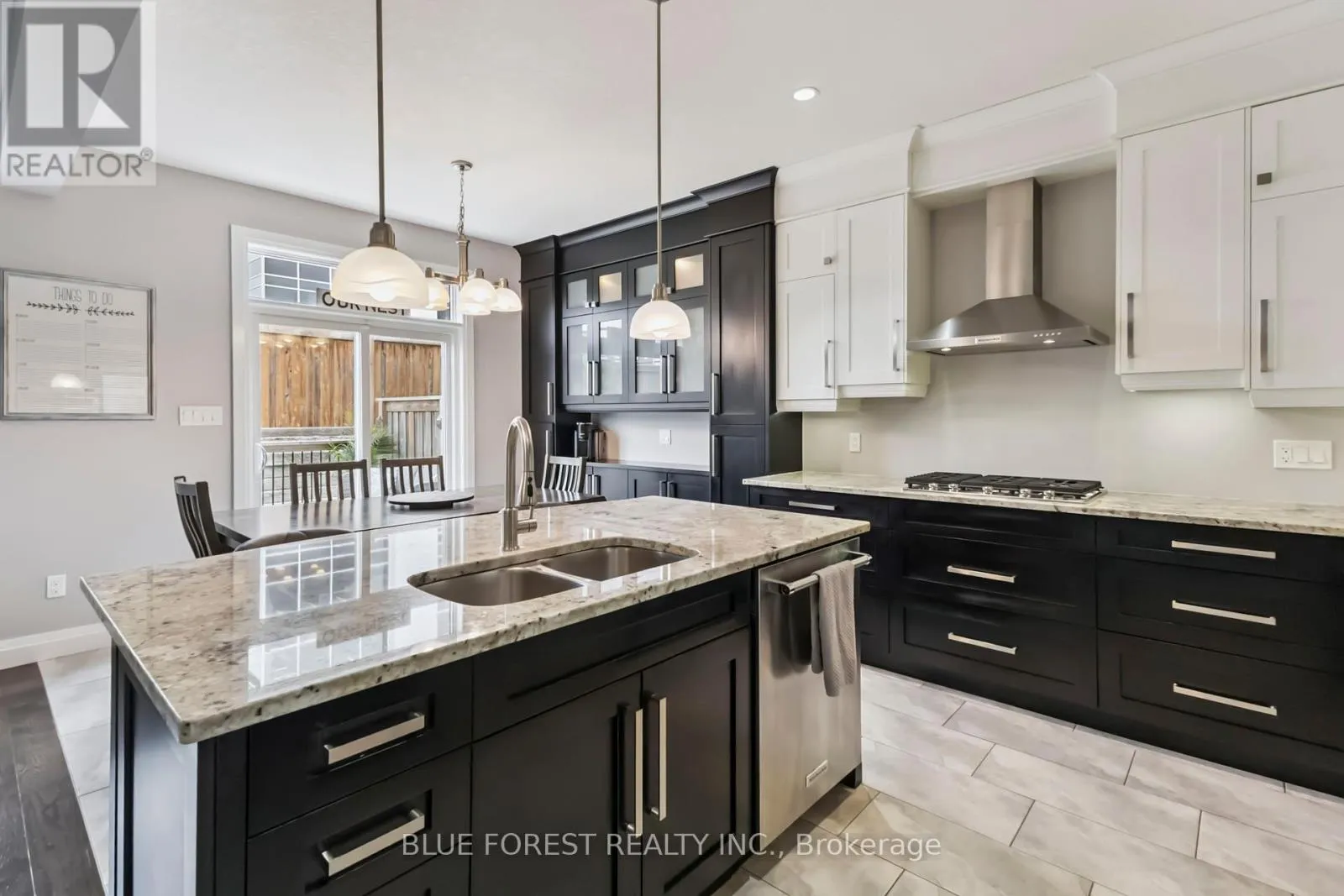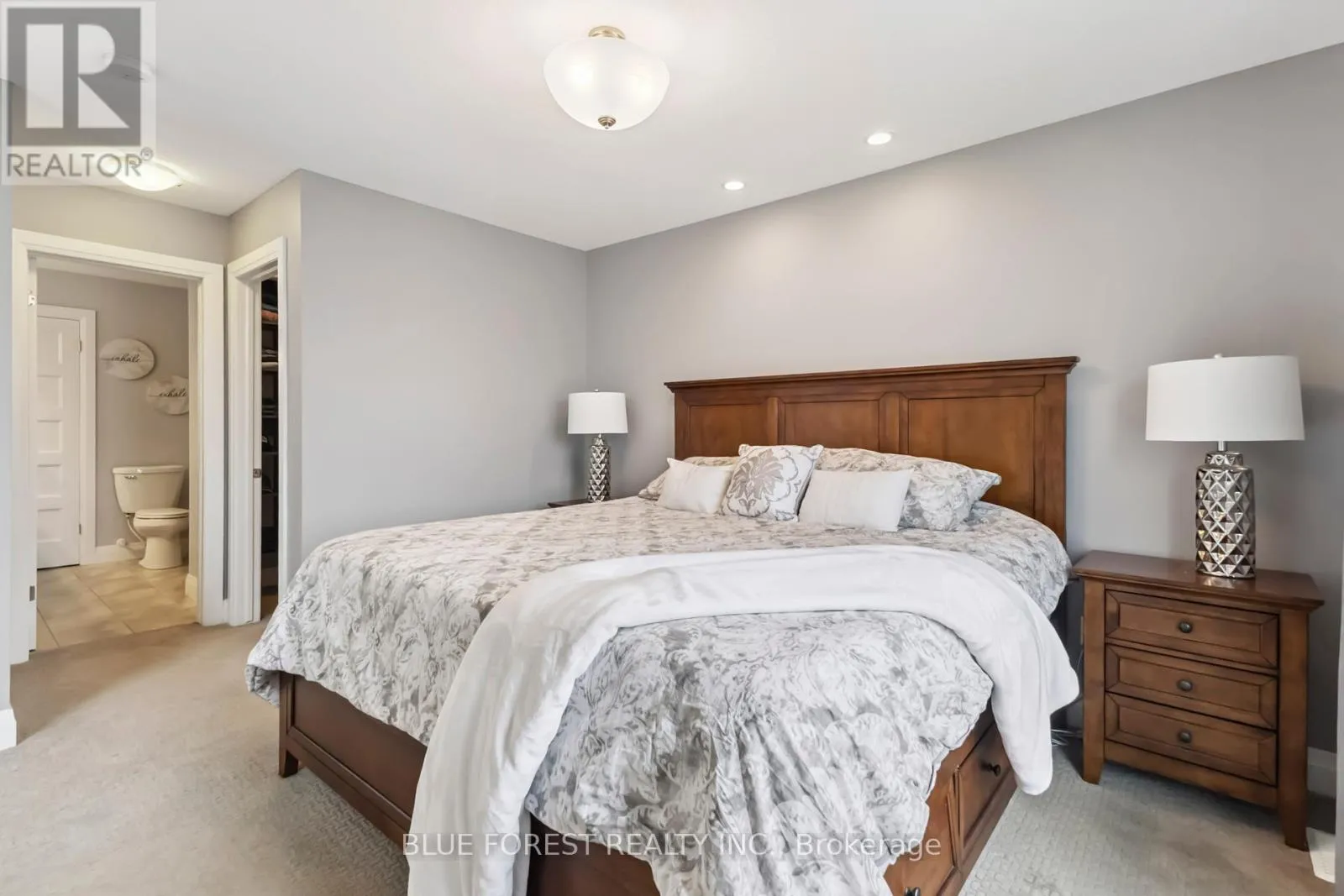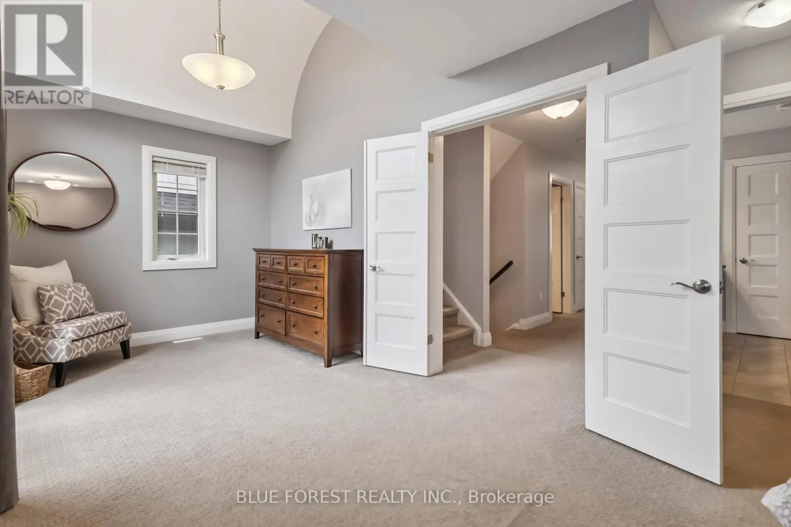 Cross Streets: Richmond St. & Sunningdale Rd. ** Directions: North on Richmond St, West on Sunningdale Rd, North on Meadowlands Way, East on Callaway Rd. Take a right into the complex, then take your second left, and the unit is straight ahead. Welcome to this beautifully upgraded end unit condo that's arguably the most desirable in the entire complex. With no rear neighbours and one of the most sought-after floor plans, this rare offering combines luxury, privacy, and thoughtful design across 2,100 square feet of living space. Built in 2016 and meticulously maintained, this home features 3 oversized bedrooms, 3 bathrooms, and a spacious third-level bonus room with a rough-in for a fourth bathroom, perfect for use as a family room, guest suite, bedroom, or home office. The open-concept custom kitchen is a showstopper, featuring a gas cooktop, built-in oven and microwave, granite countertops, an undermount sink, and a gorgeous custom bar area with built-in cabinetry. Granite countertops, undermount sinks, and custom-built-in closets are found throughout the home. The second level features a massive primary bedroom with a walk-in closet and a stunning 4-piece ensuite. Two additional generous bedrooms and another full bathroom complete this level. The unfinished lower level offers a blank canvas for your dream rec room or additional living space. Located in prestigious Upper Richmond Village, you're just minutes from Western University, University Hospital, Masonville Place, Sunningdale Golf & Country Club, the Medway Valley Heritage Forest, and top-rated schools. This immaculate, move-in-ready home offers an unmatched blend of location, layout, and luxury. Don't miss your chance, book your private showing today! (id:27476)
