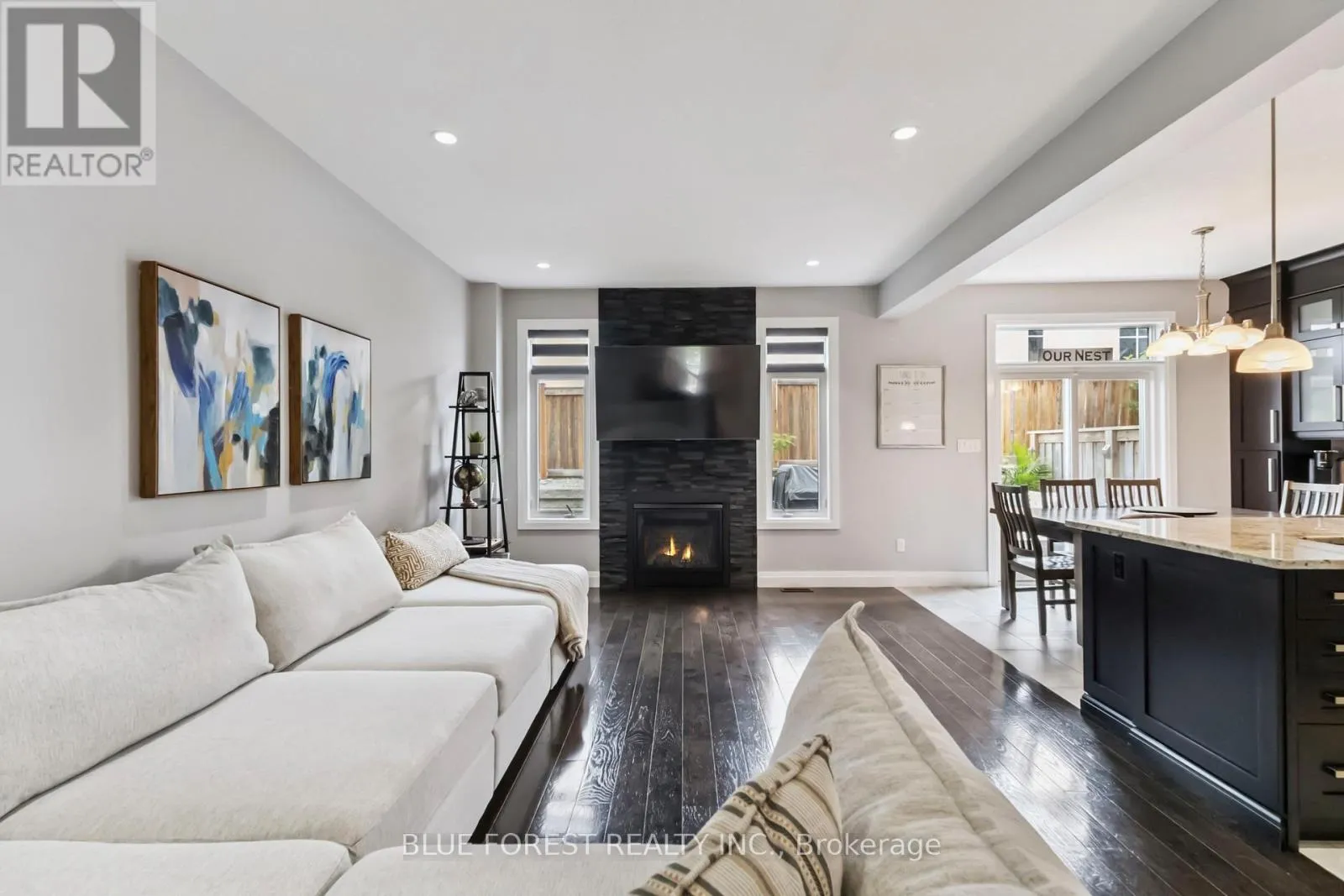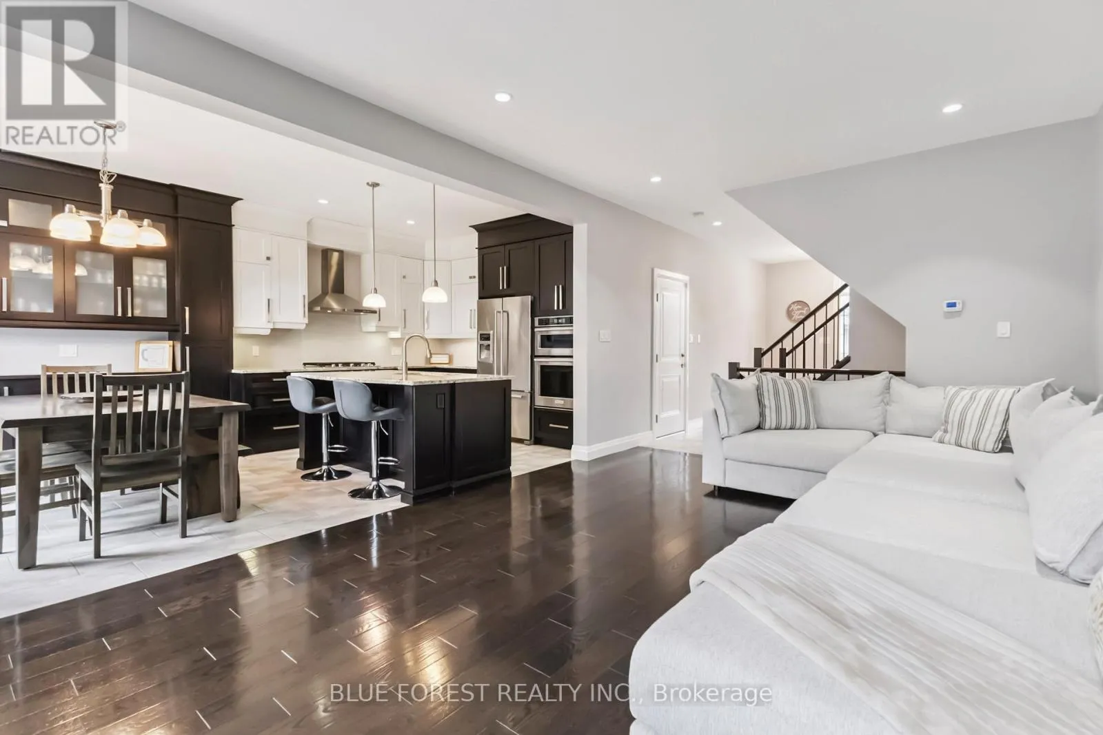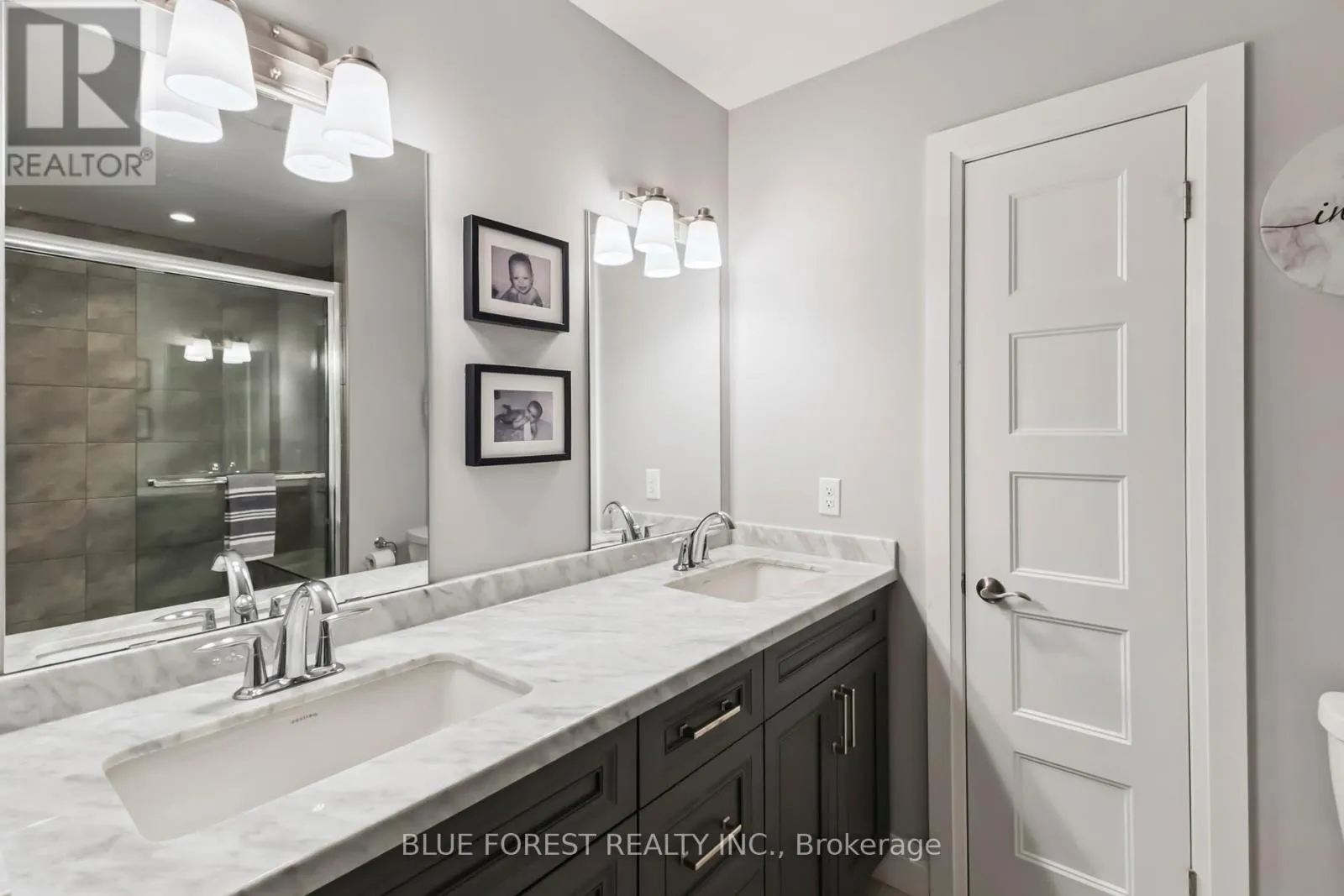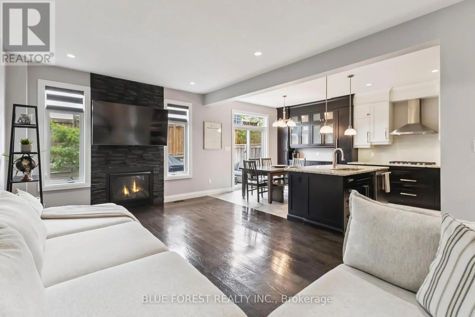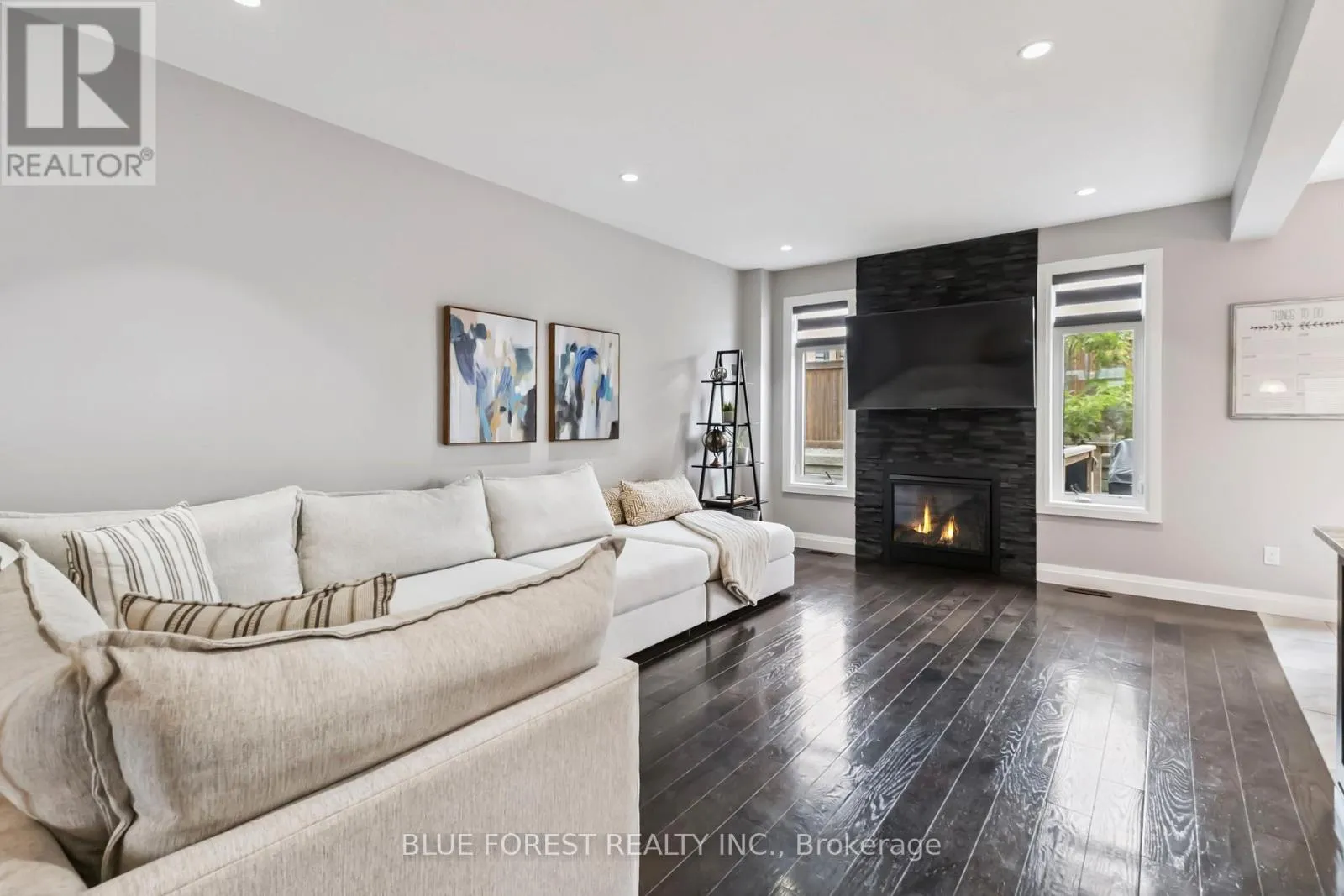 Cross Streets: Richmond St. & Sunningdale Rd. ** Directions: North on Richmond St, West on Sunningdale Rd, North on Meadowlands Way, East on Callaway Rd. Take a right into the complex, then take your second left, and the unit is straight ahead. Welcome to this beautifully upgraded end unit condo that's arguably the most desirable in the entire complex. With no rear neighbours and one of the most sought-after floor plans, this rare offering combines luxury, privacy, and thoughtful design across 2,100 square feet of living space. Built in 2016 and meticulously maintained, this home features 3 oversized bedrooms, 3 bathrooms, and a spacious third-level bonus room with a rough-in for a fourth bathroom, perfect for use as a family room, guest suite, bedroom, or home office. The open-concept custom kitchen is a showstopper, featuring a gas cooktop, built-in oven and microwave, granite countertops, an undermount sink, and a gorgeous custom bar area with built-in cabinetry. Granite countertops, undermount sinks, and custom-built-in closets are found throughout the home. The second level features a massive primary bedroom with a walk-in closet and a stunning 4-piece ensuite. Two additional generous bedrooms and another full bathroom complete this level. The unfinished lower level offers a blank canvas for your dream rec room or additional living space. Located in prestigious Upper Richmond Village, you're just minutes from Western University, University Hospital, Masonville Place, Sunningdale Golf & Country Club, the Medway Valley Heritage Forest, and top-rated schools. This immaculate, move-in-ready home offers an unmatched blend of location, layout, and luxury. Don't miss your chance, book your private showing today! (id:27476)