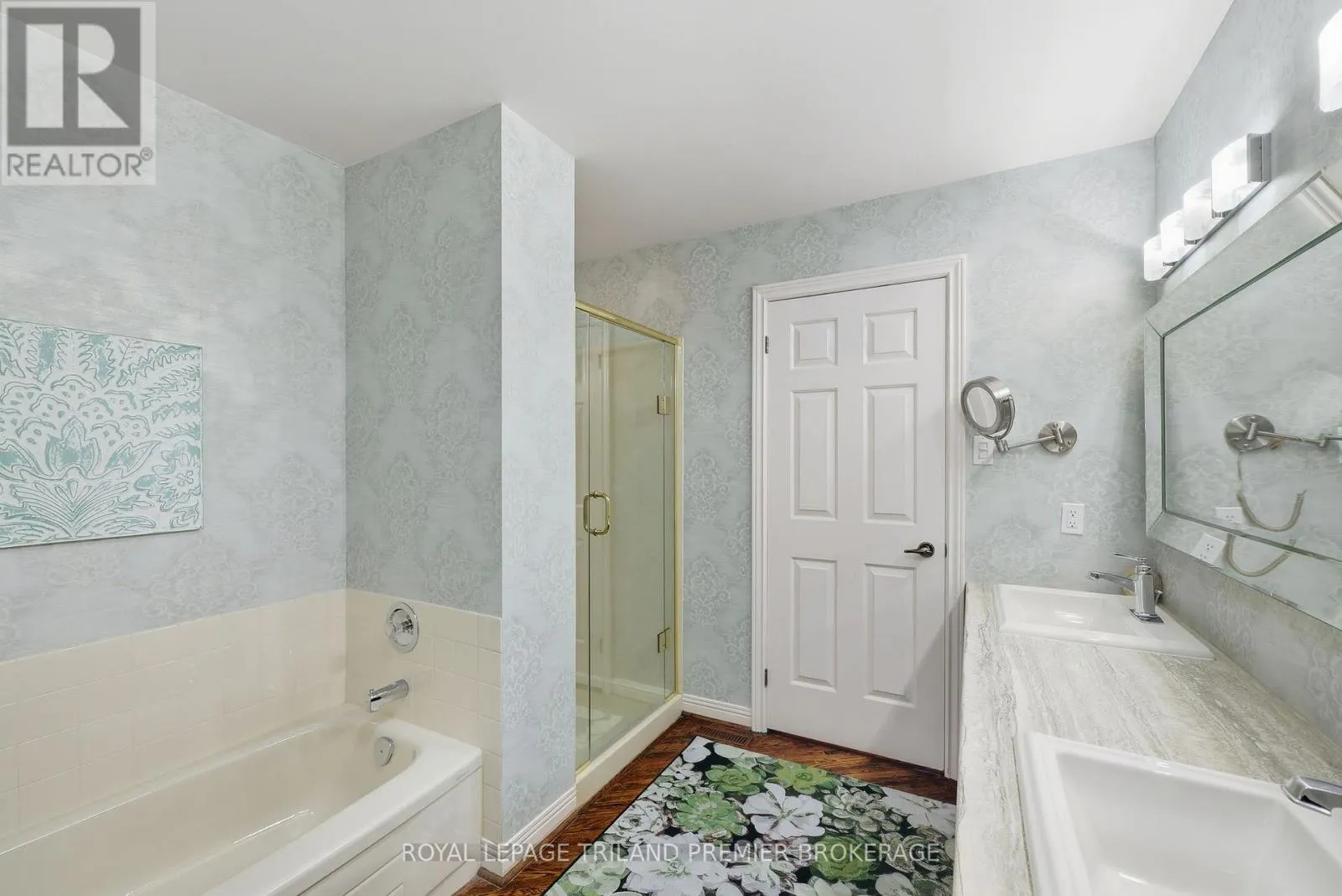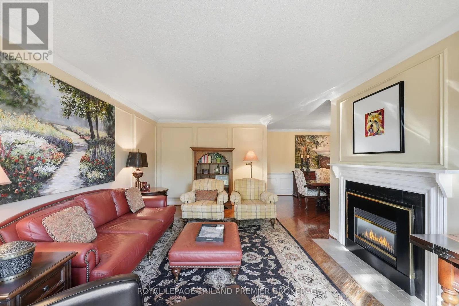Cross Streets: Valetta. ** Directions: Riverside Dr to Hyde Park Rd, North on Hyde Park to Valetta St. Welcome to this charming single-storey condominium, nestled with a serene and meticulously maintained enclave in the highly sought-after Oakridge area. This residence boasts elegant hardwood flooring throughout and features a bright main floor den, a spacious living and dining area, and a stunning front court yard - an ideal setting for savouring morning coffee or hosting evening cocktails. The kitchen is tucked away but bright and neutral, creating a perfect atmosphere for entertaining but could be updated for that real "wow" factor. A convenient powder room enhances the convenience for guests, while two generously sized bedrooms, each with walk-in closets and a shared ensuite complete the main floor. The lower level presents a charming guest bedroom, perfect for accommodating extended visitors. Additional highlights include a large family room, a laundry room and ample storage space. The property also features a rare detached two-car garage, further enhancing its convenience and appeal. Situated within a well-managed and established condominium development, this home is close to a wealth of amenities, including a beautiful heated swimming pool to enjoy throughout the summer months with ample programs for owners. Whether you are downsizing or seeking low-maintenance luxury in a desirable neighbourhood, this turnkey home offers a harmonious blend of comfort, space, and charm - truly the home you have been searching for. (id:27476)