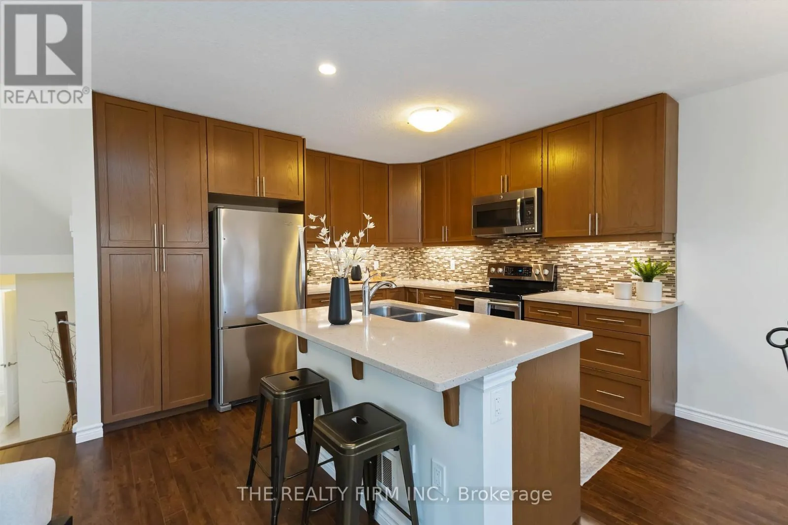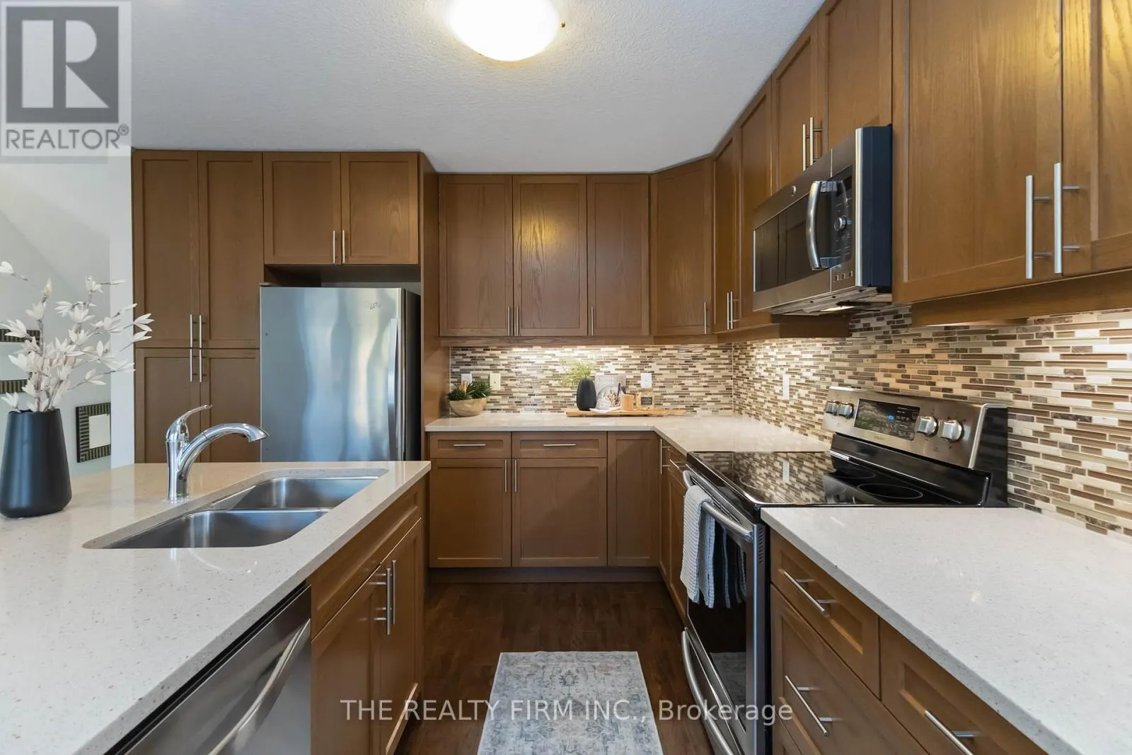 Fanshawe Park & Stackhouse Ave Welcome to this premium end unit in Jacobs Ridge! The bright and welcoming end-unit townhouse was built by Rembrandt Homes in 2014 and has been beautifully cared for ever since. With 3 bedrooms, 2.5 bathrooms, and a unique 5-level backsplit layout, there's plenty of space for everyday living and entertaining. You'll love the open-concept kitchen, perfect for cooking and gathering, as well as the cozy living areas filled with natural light. The primary bedroom with its own ensuite gives you a private retreat, while the two additional bedrooms offer flexibility for family, guests, or a home office. Upgrades include California shutters, new carpet (2023) and modern paint colours that makes the home feel fresh and move-in ready. Whether you're just starting out or looking for a place to settle in, this home has all the space and comfort you've been searching for. Book your showing today, you don't want to miss it! (id:27476)
