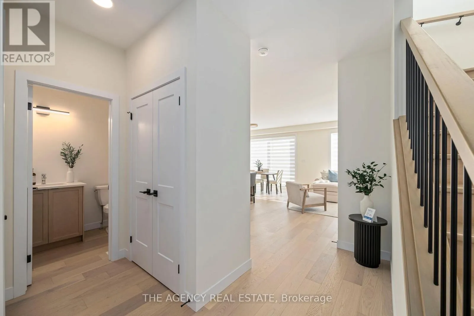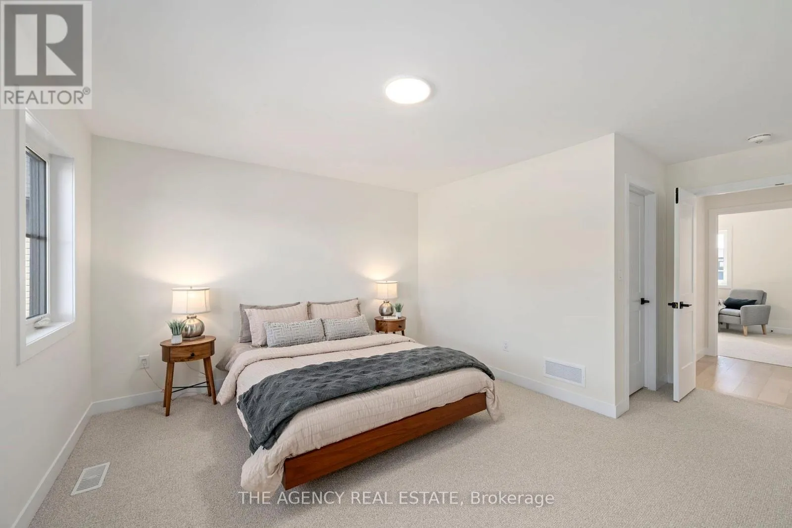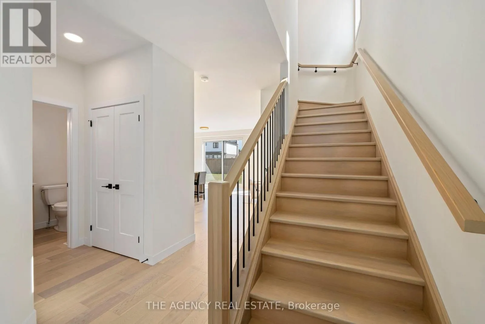 Cross Streets: Sunningdale Rd W, Fair Oaks Blvd, Buroak Dr. ** Directions: Take Sunningdale Rd W, turn onto Fair Oaks Blvd (drive past Northwest Public school), take the roudabout onto Saddlerock Ave. Saddlerock Ave is a horse shoe shape street surrounding a forest. The home is across from Kent park. Situated across from a peaceful wooded forest park, 2172 Saddlerock Ave invites you to a lifestyle immersed in nature on a quiet street. Enjoy a leisurely stroll through the park, watch the kids at the playground or watch them having fun at the half basketball court, all from the comfort of your front porch. Showcasing beautiful natural-toned engineered hardwood flooring throughout the main level, staircase and upper hallway, complemented by 9 ft ceilings, a soothing colour palette and thoughtfully selected finishes enhance the feel of this home. The kitchen features quartz countertops, two-toned maple cabinetry in crisp white and natural tones, under-cabinet lighting, an extra-wide kitchen island, stainless steel appliances, and a walk-in pantry with a freezer that can convert to fridge mode. Bright and airy open-concept living and dining areas showcase impressive 8 ft 8 ft windows and 8 ft 8 ft patio doors, creating a seamless indoor outdoor connection to the premium pie-shaped yard. A powder room and inside entry from the garage add functional ease. Upstairs, discover 3 spacious bedrooms. The primary suite offers double doors, a large walk-in closet, and a 4-piece ensuite with double vanity, quartz countertops, and a luxurious tiled shower. A main 4-piece bathroom, convenient upper-level laundry, and linen closet complete the upper level. The unfinished basement offers plenty of storage and potential for additional living space. Inviting curb appeal, paver stone driveway, double car garage with insulated doors, garage door openers and a handy exterior side door for convenience. Families will love the proximity to new schools, including Northwest Public Elementary (with childcare), and St. Gabriel Catholic Elementary, just minutes away. This nearly new home has $30,000 + in upgrades and just under 6 years remaining on the transferable Tarion warranty. Enjoy the perfect blend of nature and a park just steps away, ideal for family fun and making lasting memories. (id:27476)