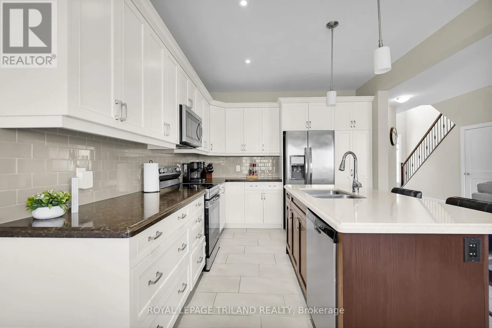 Cross Streets: HYDE PARK ROAD AND GAINSBOROUGH ROAD. ** Directions: TAKE HYDE PARK RD TRAVELING NORTH, TURN RIGH ONTO CARRIAGERD, 3RD EXIT ON THE ROUNDABOUT TO CORONATION DR, TURNRIGHTONTO SOPHIA CRES, HOME IS ON YOUR LEFT HAND SIDE. Welcome to 521 Sophia Crescent in desirable Northwest London! This stunning 4-bedroom, 3-bathhome offers modern elegance, comfort, and income potential perfect for families or investors. The open-concept kitchen features granite countertops, a central island, stainless steel appliances, and a pantry, flowing into a bright dinette and fully fenced backyard with a deck. A cozy gas fireplace anchors the living room, while a powder room and convenient laundry/mudroom with garage access complete the main floor. Upstairs, the spacious primary suite boasts a walk-in closet and spa-like ensuite with double sinks, a soaker tub, and a glass shower. Three additional bedrooms and a full bath provide plenty of space for the whole family. The lower level offers over 1,000 sq. ft. of income potential, registered with the City as two units with a separate side entrance with a cement walkway ideal for future income. Close to top schools, parks, shopping, and all amenities. This home is a rare find you wont want to miss! Book your showing today. (id:27476)