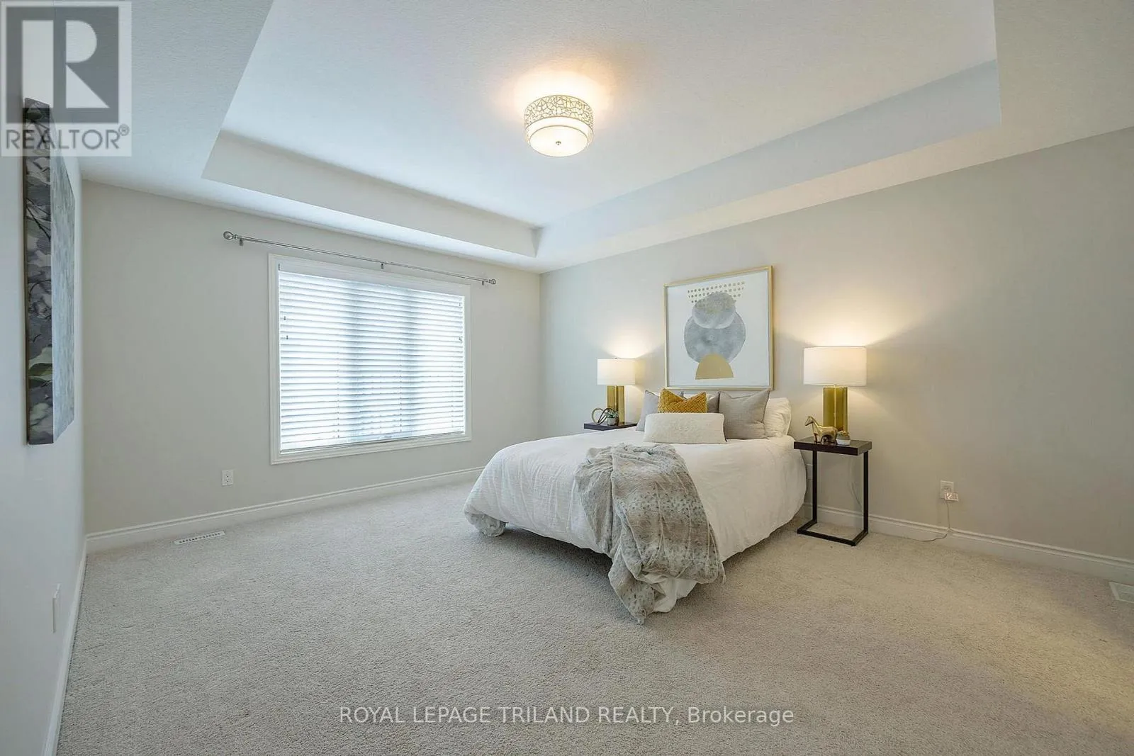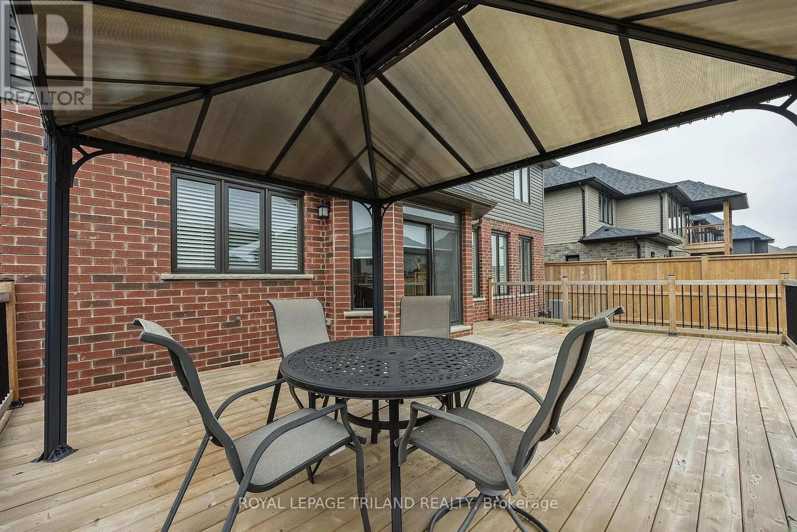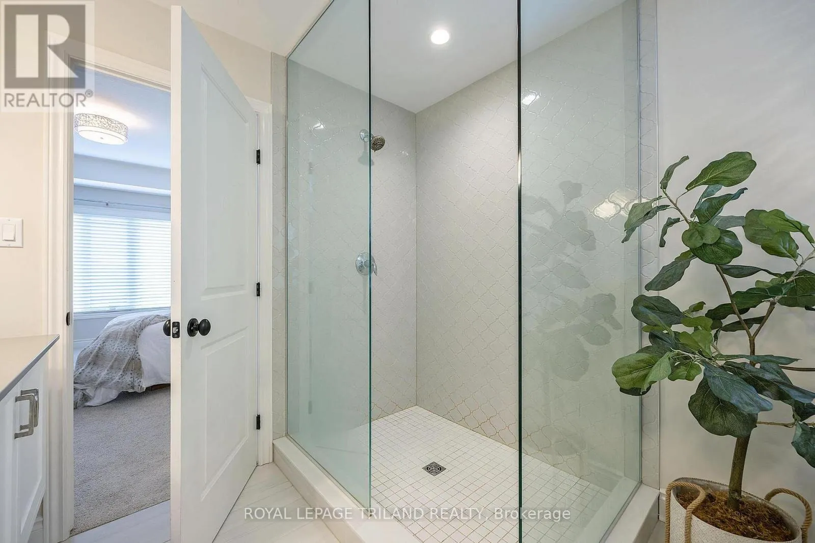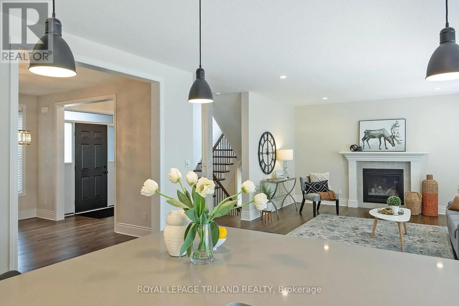 SUPERIOR DRIVE AND MADDEX WAY Elegant 4-Bedroom Home with Dual Primary Suites in Prime North London This beautifully appointed 4-bedroom, 5-bath home offers two spacious primary bedrooms with private ensuites. The home features classic red brick exterior, black-framed windows, tumbled stone driveway, and a covered front porch with great curb appeal. Inside, enjoy an open-concept main level with warm hardwood floors, high ceilings, and sun-filled spaces. The gourmet kitchen impresses with white and black cabinetry, ceiling-height subway tile, quartz countertops, gas stove, stainless appliances, dry bar with floating shelves, and a massive8-seat L-shaped island. A walk-in pantry adds extra function. The bright living room offers a gas fireplace, recessed lighting, panoramic backyard views, and walkout to a covered deck and fully fenced yard. A vaulted office, mudroom/laundry, and 2-piecebath complete the main floor. The primary suite boasts a tray ceiling, spa-like 5-piece ensuite with freestanding tub, double vanity, custom glass shower, and a huge walk-in closet. The second bedroom also includes a vaulted ceiling and private ensuite. Two additional bedrooms share a 4-piece bath. The unfinished basement with large windows and plumbing rough-in awaits your personal touch. Ideally located near YMCA, Masonville Mall, Weldon Park, Sunningdale Golf, UWO, and University Hospital. Welcome home (id:27476)