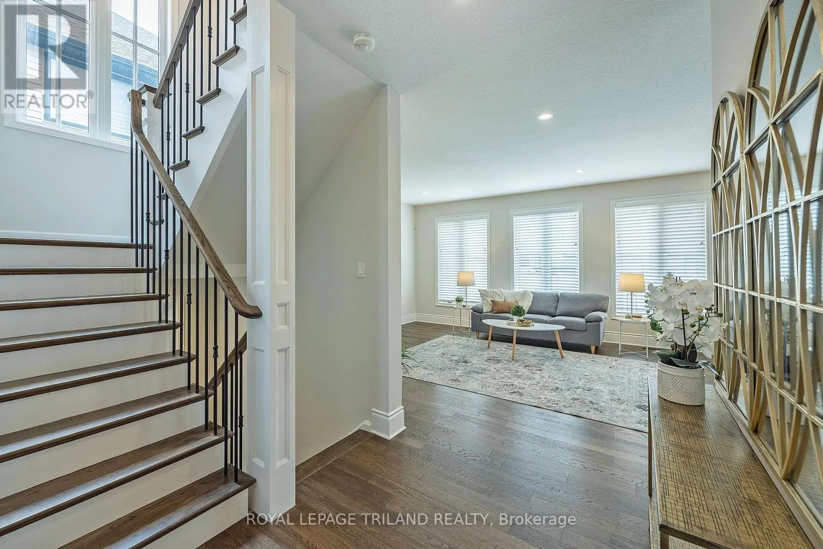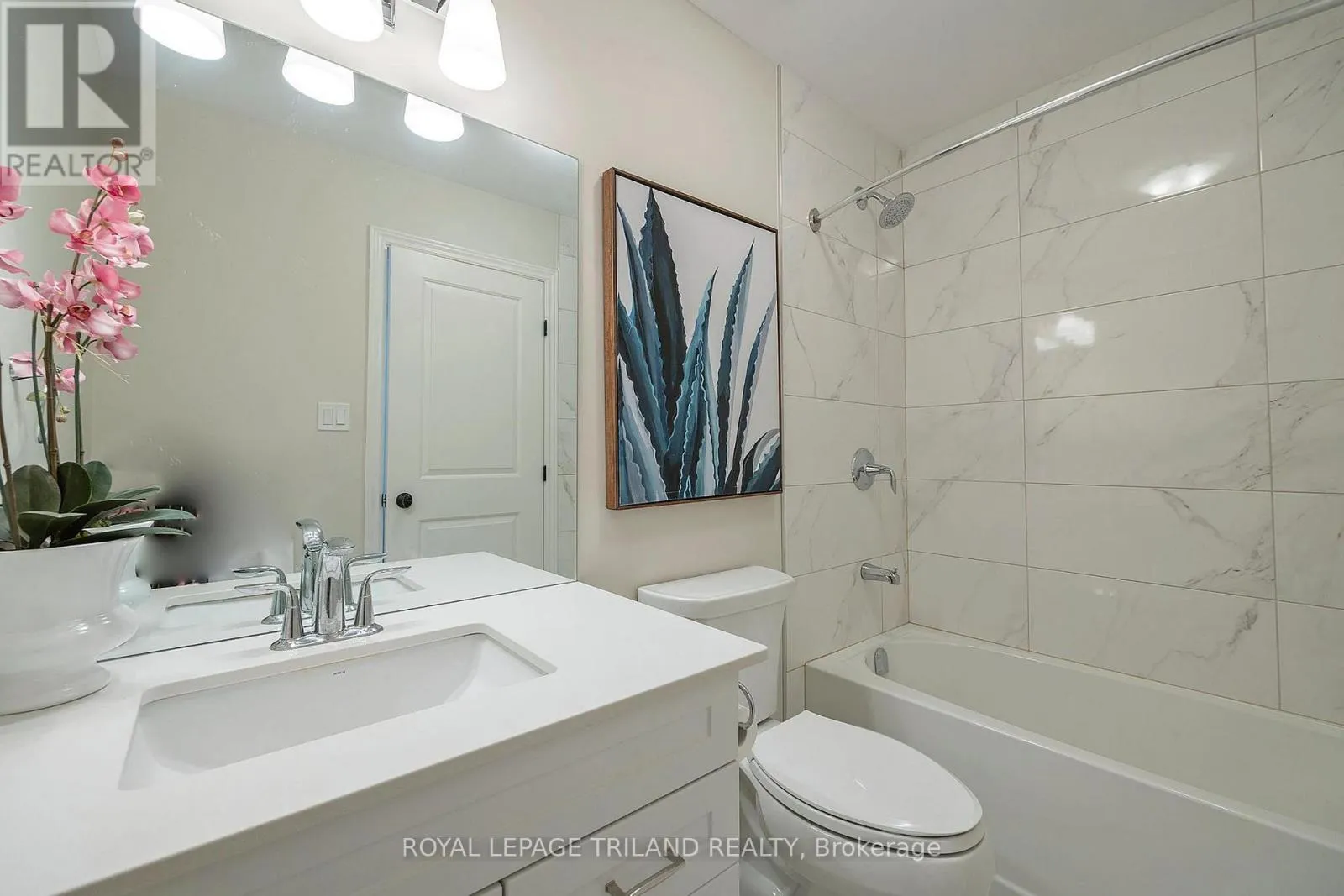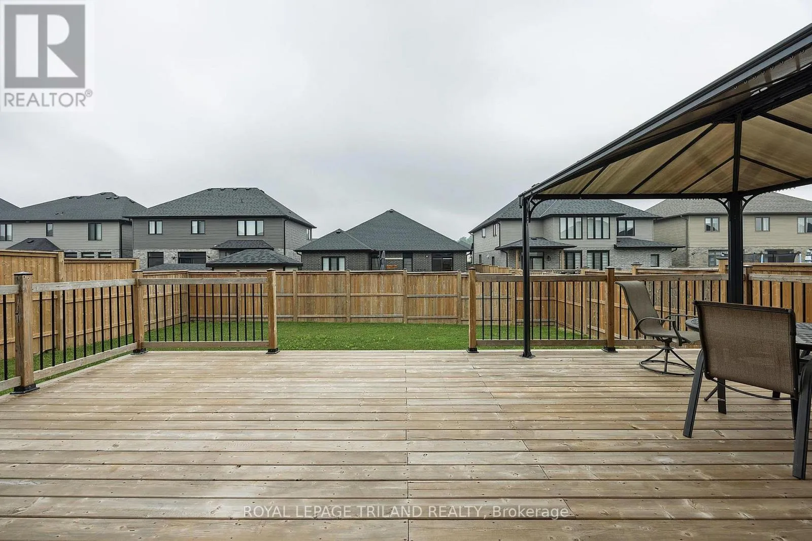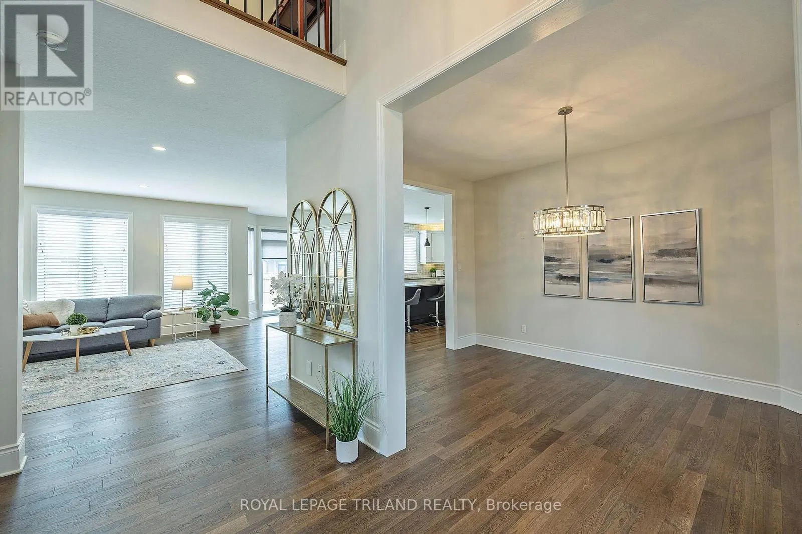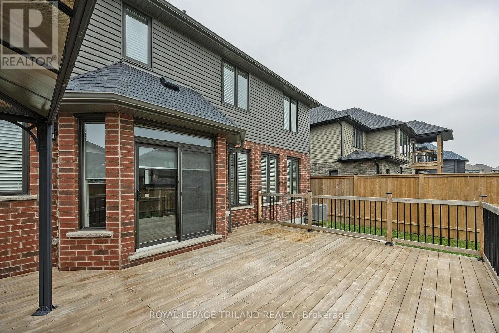 SUPERIOR DRIVE AND MADDEX WAY Elegant 4-Bedroom Home with Dual Primary Suites in Prime North London This beautifully appointed 4-bedroom, 5-bath home offers two spacious primary bedrooms with private ensuites. The home features classic red brick exterior, black-framed windows, tumbled stone driveway, and a covered front porch with great curb appeal. Inside, enjoy an open-concept main level with warm hardwood floors, high ceilings, and sun-filled spaces. The gourmet kitchen impresses with white and black cabinetry, ceiling-height subway tile, quartz countertops, gas stove, stainless appliances, dry bar with floating shelves, and a massive8-seat L-shaped island. A walk-in pantry adds extra function. The bright living room offers a gas fireplace, recessed lighting, panoramic backyard views, and walkout to a covered deck and fully fenced yard. A vaulted office, mudroom/laundry, and 2-piecebath complete the main floor. The primary suite boasts a tray ceiling, spa-like 5-piece ensuite with freestanding tub, double vanity, custom glass shower, and a huge walk-in closet. The second bedroom also includes a vaulted ceiling and private ensuite. Two additional bedrooms share a 4-piece bath. The unfinished basement with large windows and plumbing rough-in awaits your personal touch. Ideally located near YMCA, Masonville Mall, Weldon Park, Sunningdale Golf, UWO, and University Hospital. Welcome home (id:27476)