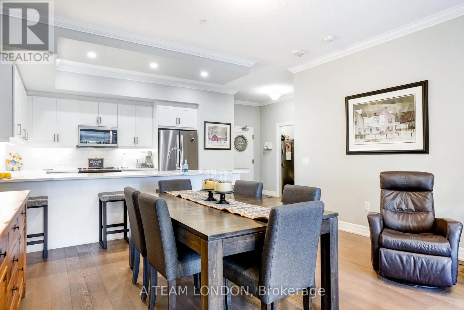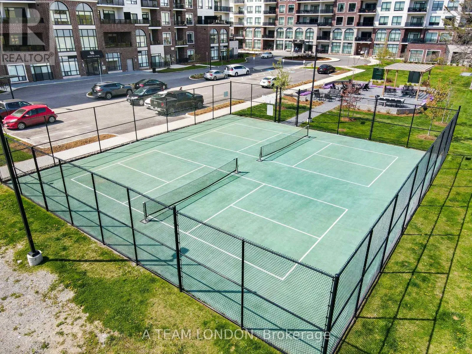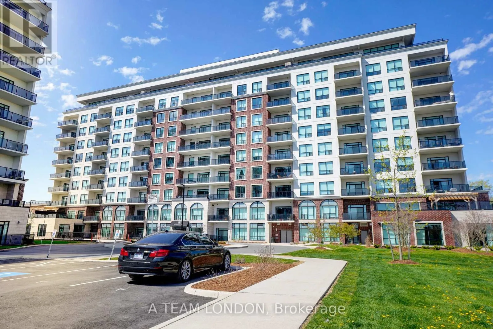Cross Streets: Off of Sunningdale. ** Directions: Off Sunningdale between Richmond and Wonderland. Experience elevated condo living in one of Londons most desirable communities NorthLink by TRICAR, perfectly located off Sunningdale and near the London Golf Club. This stunning accessible 2-bedroom, 2-bathroom condo is only three years young and move-in ready, offering modern elegance with thoughtful design throughout. Featuring lower light switches, wider doorways, and a barrier-free tub and shower, this home combines comfort, style, and accessibility. High ceilings, engineered hardwood floors, and sleek pot lights create a bright, contemporary feel. The open-concept living area boasts a stylish electric fireplace and a defined dining space, ideal for entertaining. The kitchen impresses with fine cabinetry, quartz countertops, a tile backsplash, and a convenient pantry. A floor-to-ceiling door fills the space with natural light and opens to a spacious balcony overlooking scenic trails the perfect place to unwind. Enjoy the convenience of in-suite laundry, stainless steel appliances, window coverings, two underground parking spots, and a storage locker. Building amenities include a fitness room, golf simulator, resident lounge, guest suite, and secure entry. Step outside to enjoy the exclusive sports court or outdoor patio overlooking Medway Valley. The building is pre-wired with fibre internet and CAT 5E data lines, and features energy-efficient heating and cooling with programmable thermostats. Condo fees include all utilities except hydro for added peace of mind. Conveniently located near Masonville Mall, University Hospital, and Western University, NorthLink offers the perfect balance of luxury, location, and lifestyle. Book your private showing today and discover the ease of accessible luxury living. (id:27476)