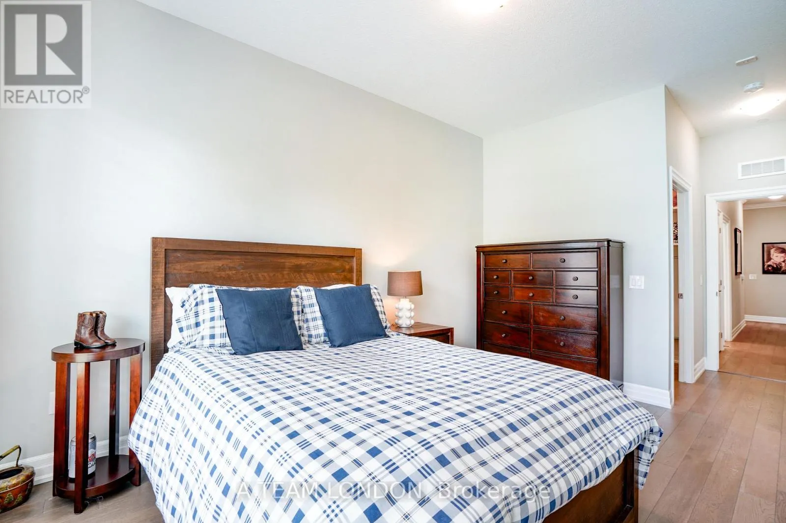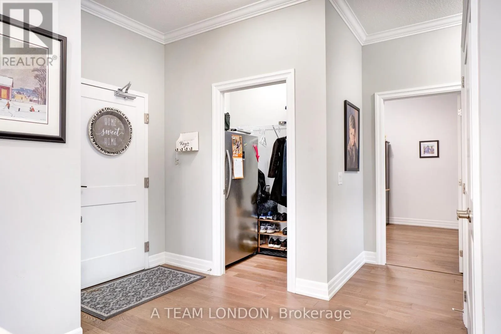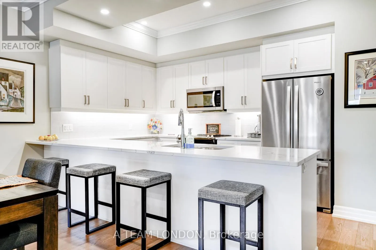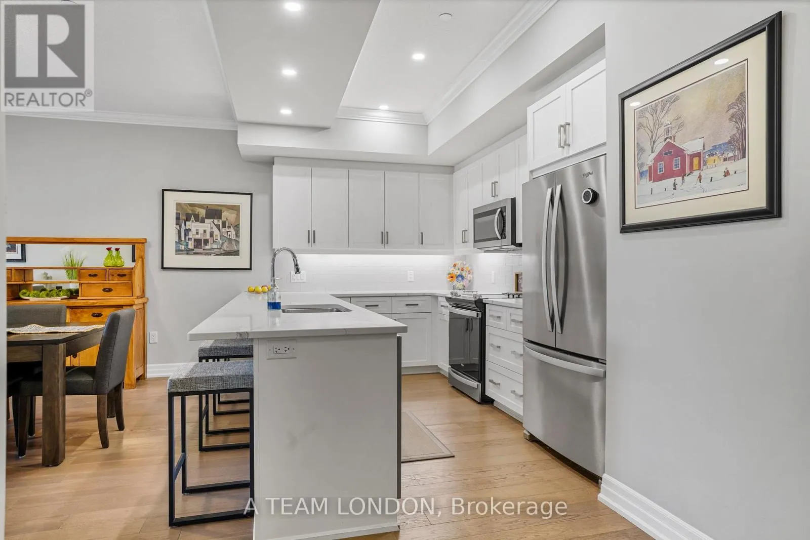 Cross Streets: Off of Sunningdale. ** Directions: Off Sunningdale between Richmond and Wonderland. Experience elevated condo living in one of Londons most desirable communities NorthLink by TRICAR, perfectly located off Sunningdale and near the London Golf Club. This stunning accessible 2-bedroom, 2-bathroom condo is only three years young and move-in ready, offering modern elegance with thoughtful design throughout. Featuring lower light switches, wider doorways, and a barrier-free tub and shower, this home combines comfort, style, and accessibility. High ceilings, engineered hardwood floors, and sleek pot lights create a bright, contemporary feel. The open-concept living area boasts a stylish electric fireplace and a defined dining space, ideal for entertaining. The kitchen impresses with fine cabinetry, quartz countertops, a tile backsplash, and a convenient pantry. A floor-to-ceiling door fills the space with natural light and opens to a spacious balcony overlooking scenic trails the perfect place to unwind. Enjoy the convenience of in-suite laundry, stainless steel appliances, window coverings, two underground parking spots, and a storage locker. Building amenities include a fitness room, golf simulator, resident lounge, guest suite, and secure entry. Step outside to enjoy the exclusive sports court or outdoor patio overlooking Medway Valley. The building is pre-wired with fibre internet and CAT 5E data lines, and features energy-efficient heating and cooling with programmable thermostats. Condo fees include all utilities except hydro for added peace of mind. Conveniently located near Masonville Mall, University Hospital, and Western University, NorthLink offers the perfect balance of luxury, location, and lifestyle. Book your private showing today and discover the ease of accessible luxury living. (id:27476)