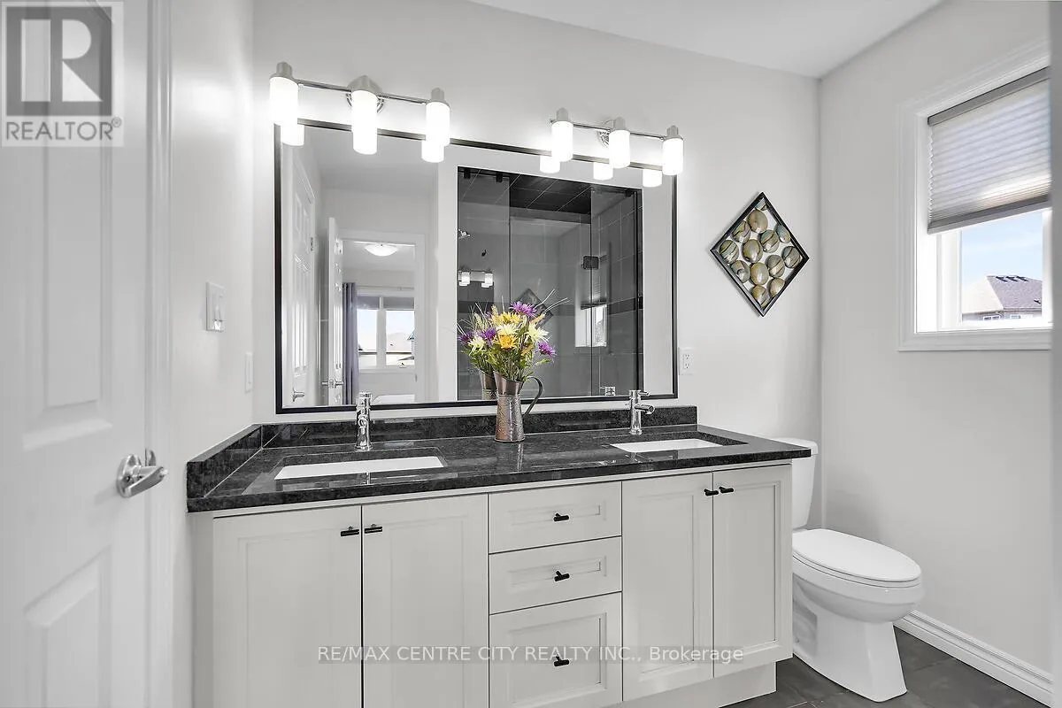 Cross Streets: Wateroak. ** Directions: Fanshawe Park road to Aldersbrook Gate follow circle 2nd exit to Wateroak. Turn left on 2nd street Foxbend link. Home is on bend directly ahead. IS A WELL BUILT HOME A THING OF THE PAST? Not at Foxfield Trail, everything you see will please you. Offering this Custom built, oversized Diamond built by Stonecrest Homes. Entering this home, you are greeted by the custom entrance with pillar, glass railing and brick wall enclosure. This beautiful property has been completely updated, offering a multitude of special features including a 15-foot x 12.5 ft. Living Room, a Custom 14 ft x 10 ft open concept Dining Area with custom vinyl flooring. This is adjacent to the 10 ft by 14 ft kitchen with breakfast bar, a gathering room that will host mealtimes to homework. Main floor also boasts a large walk-in closet for storage and coats by front door next to your 2-pc bath. Rising to the second floor you will really appreciate the privacy of your 17 ft x 11 ft master suite retreat with walk in closet and cheater ensuite with double sinks, promoting harmony in the bath large enough for 2 to begin the day. There are 2 additional nicely sized bedrooms on this level as well. A brand-new finished basement has been added with large recreation room and extra bedroom. There is also a framed rough in bath ready for your finishing. Just move in and live! This Diamond sits on a special premium lot. Stretching back 137.5 ft on one side, 112.8 ft on the other side while opening to 82.6 feet across the back, an exceptional yard! Walking distance to all major shopping and close to Western University. (id:27476)