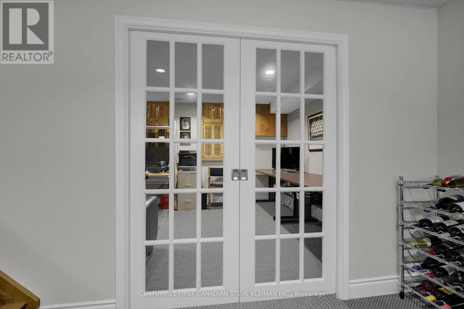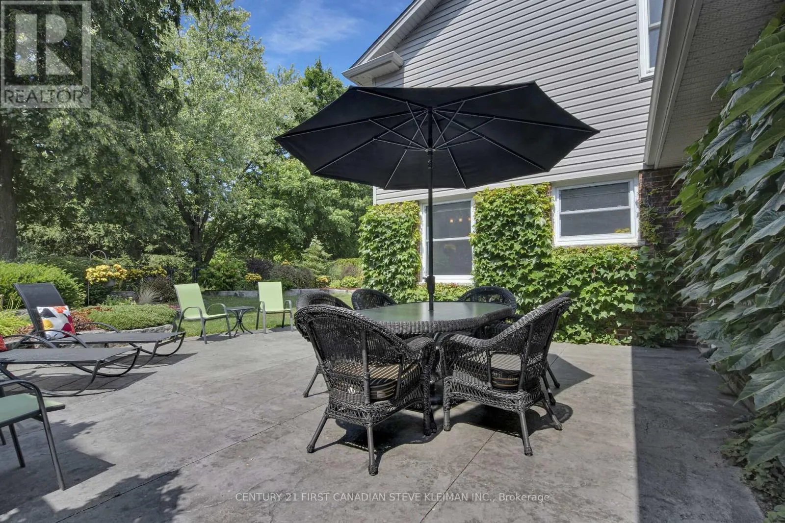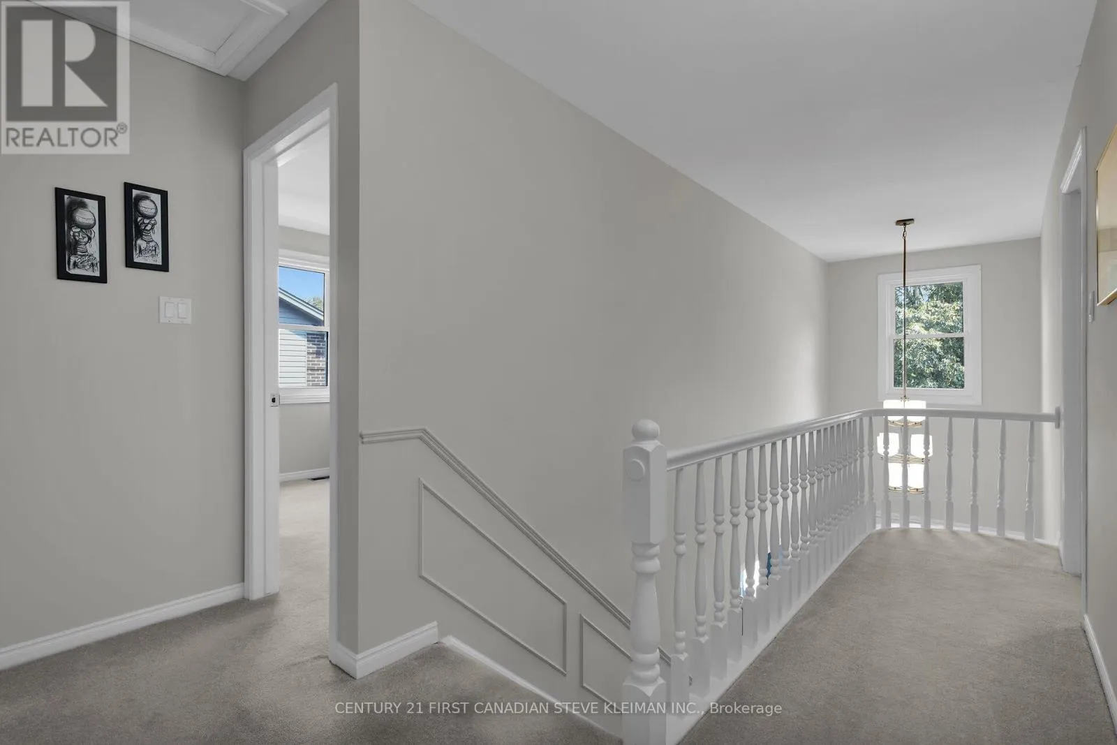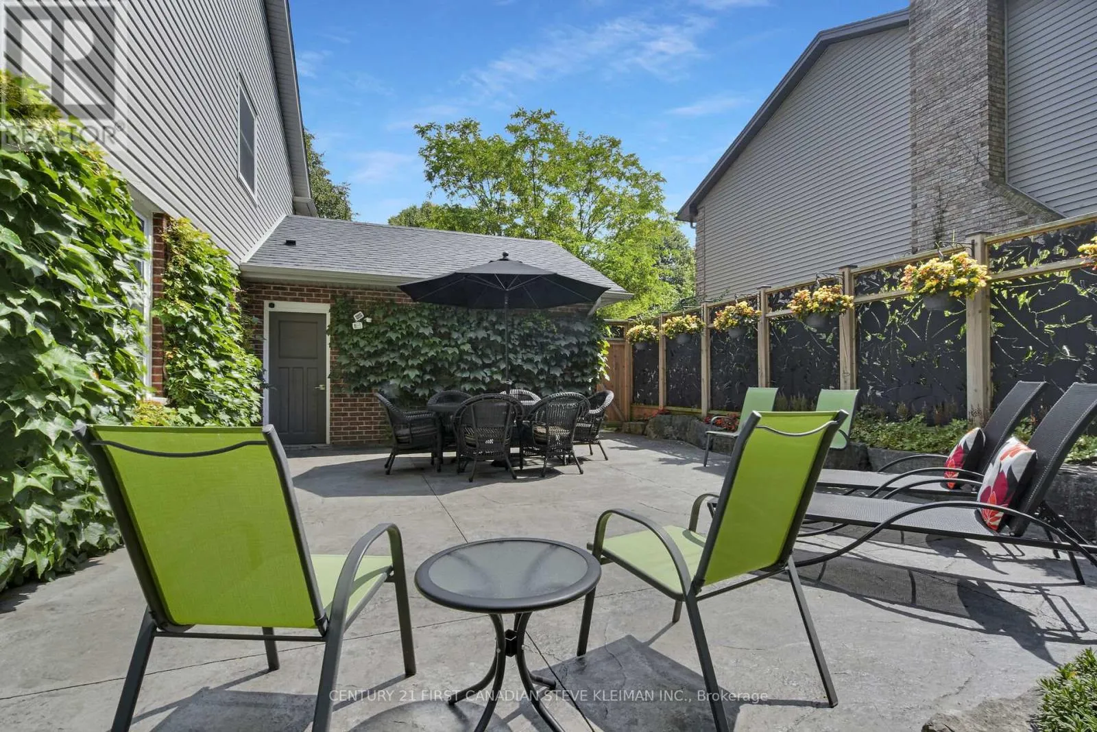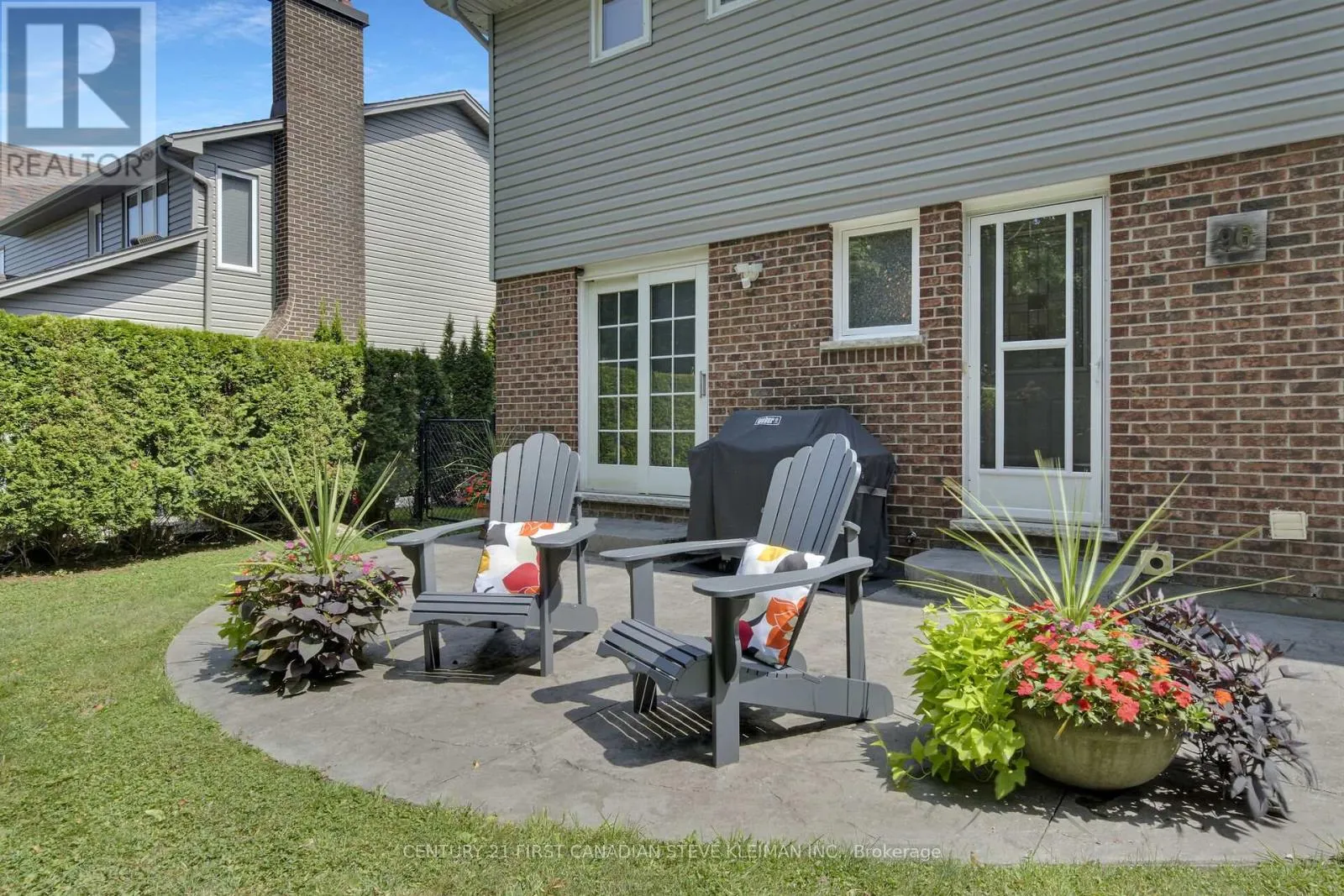 Stoneybrook Cres Meticulously maintained Stoneybrook home backing onto Hastings Park woods & trails. Two-storey foyer features wainscotting & sidelights flanking front door. California shutters on the bay windows. Juliette balcony staircase. Double French doors with beveled glass connecting the family & living rooms. The dining room offers chair rail & french door with beveled glass leading to bright kitchen designed for functionality & style. The kitchen boasts cabinetry with crown moulding, soft-close drawers & doors, a built-in spice rack, & a pantry cabinet with pull-out drawers. Granite countertops are paired with a ceramic backsplash & valance lighting, creating a welcoming space. Enjoy premium appliances including a Maytag french door fridge with filtered water & ice. Artika stainless double sink with built-in strainer & cutting board. Main floor laundry includes a stainless sink, cabinetry, & ceramic tile flooring, conveniently leading to the backyard. The home features a 4-piece main bath with ceramic tile surround & glass sliding door, plus a full ensuite with walk-through his/hers closets with built-ins, all enhanced with updated doors & brushed nickel hardware. Additional highlights include a Regency gas fireplace with ceramic tile surround in family room, central vacuum, solid oak staircase & handrail leading to lower level, where you'll find built-in seating with storage in the recreation room, double glass pocket doors to an office with built-ins, and a 2-piece lower bath & a work bench. The exterior boasts stamped concrete double driveway, walkway, & patio surrounding three sides of the house dozens of cap rocks for raised gardens. Newer insulated garage doors, and a wood fence installed in 2021 for privacy. Significant updates over the years include a 2018 kitchen reno, LVP flooring, Certa Pro Painters 2022, roof 2012, California shutters 2019, new vinyl windows & siding between 2012-2019, a Regency gas fireplace 2014, & front doors refreshed in 2014. Dream home! (id:27476)