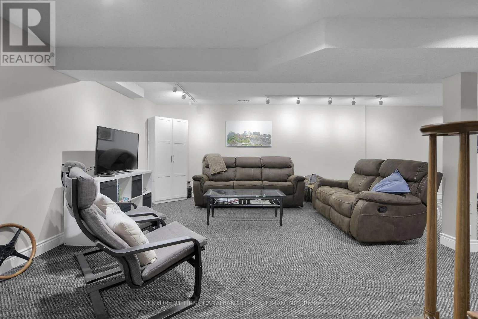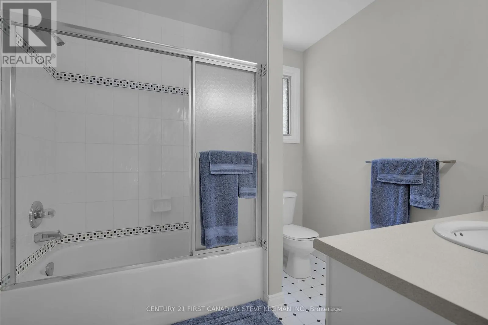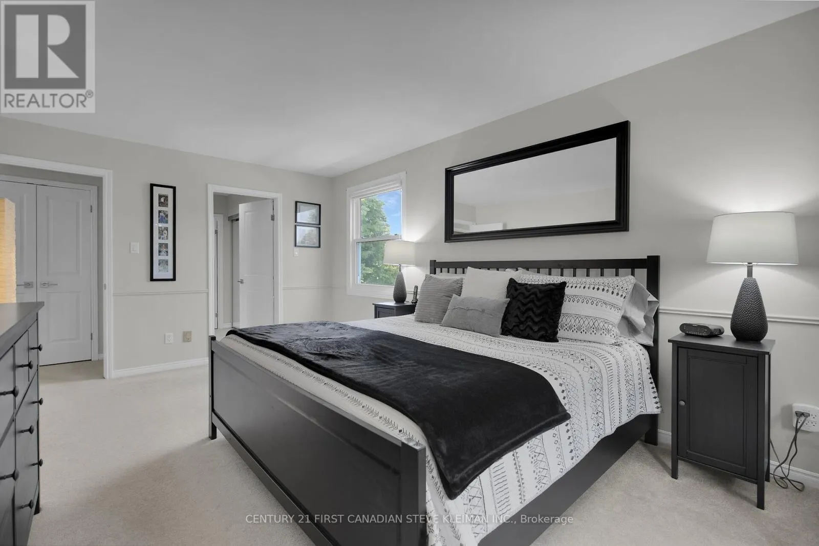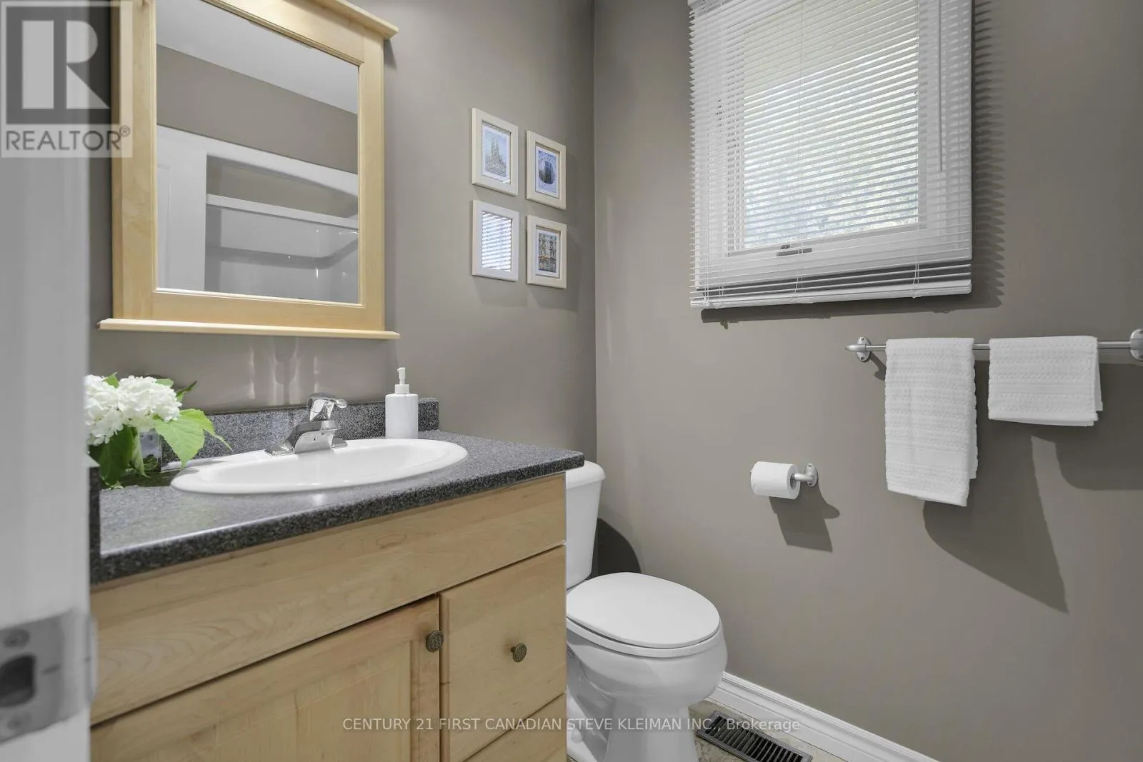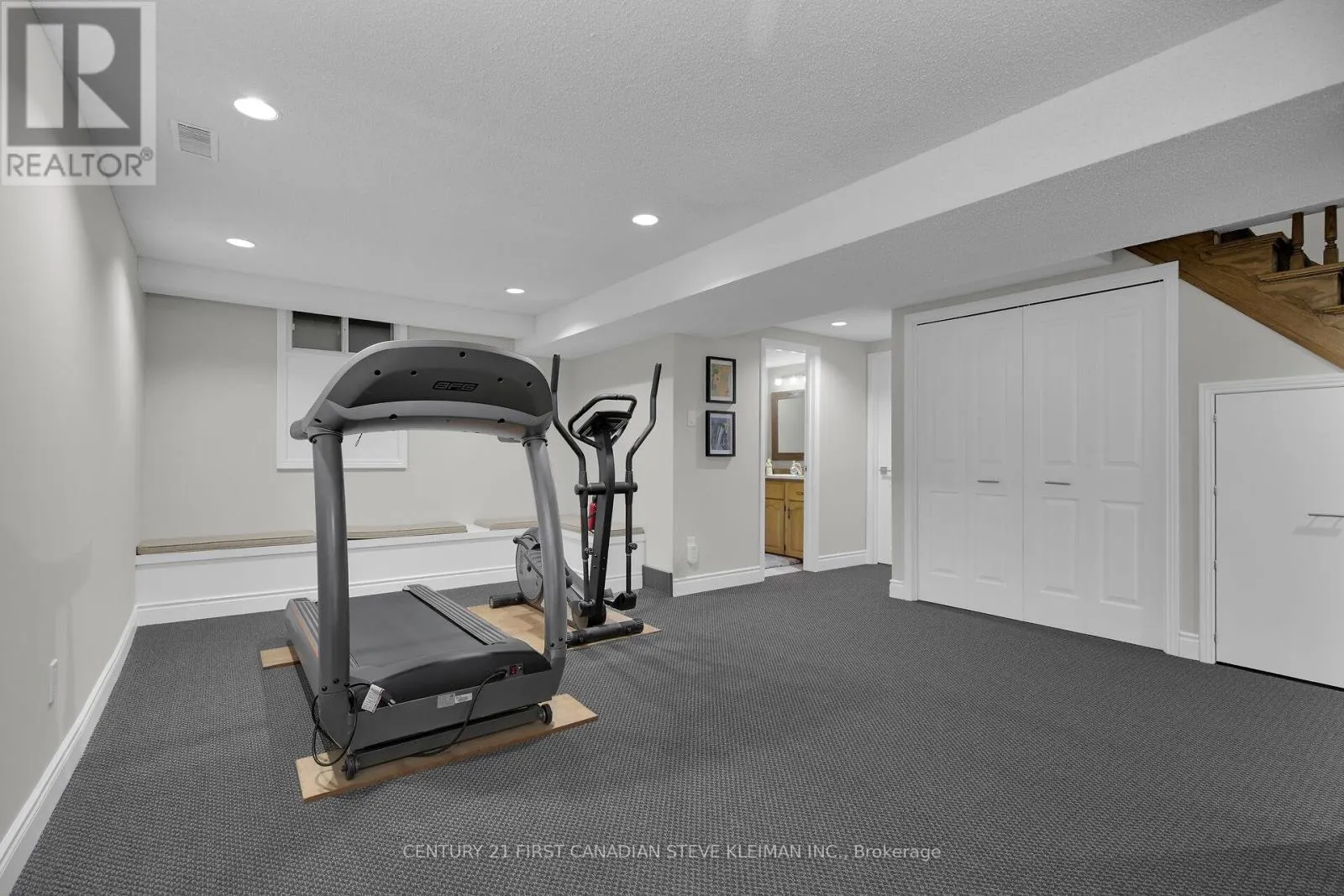Stoneybrook Cres Meticulously maintained Stoneybrook home backing onto Hastings Park woods & trails. Two-storey foyer features wainscotting & sidelights flanking front door. California shutters on the bay windows. Juliette balcony staircase. Double French doors with beveled glass connecting the family & living rooms. The dining room offers chair rail & french door with beveled glass leading to bright kitchen designed for functionality & style. The kitchen boasts cabinetry with crown moulding, soft-close drawers & doors, a built-in spice rack, & a pantry cabinet with pull-out drawers. Granite countertops are paired with a ceramic backsplash & valance lighting, creating a welcoming space. Enjoy premium appliances including a Maytag french door fridge with filtered water & ice. Artika stainless double sink with built-in strainer & cutting board. Main floor laundry includes a stainless sink, cabinetry, & ceramic tile flooring, conveniently leading to the backyard. The home features a 4-piece main bath with ceramic tile surround & glass sliding door, plus a full ensuite with walk-through his/hers closets with built-ins, all enhanced with updated doors & brushed nickel hardware. Additional highlights include a Regency gas fireplace with ceramic tile surround in family room, central vacuum, solid oak staircase & handrail leading to lower level, where you'll find built-in seating with storage in the recreation room, double glass pocket doors to an office with built-ins, and a 2-piece lower bath & a work bench. The exterior boasts stamped concrete double driveway, walkway, & patio surrounding three sides of the house dozens of cap rocks for raised gardens. Newer insulated garage doors, and a wood fence installed in 2021 for privacy. Significant updates over the years include a 2018 kitchen reno, LVP flooring, Certa Pro Painters 2022, roof 2012, California shutters 2019, new vinyl windows & siding between 2012-2019, a Regency gas fireplace 2014, & front doors refreshed in 2014. Dream home! (id:27476)