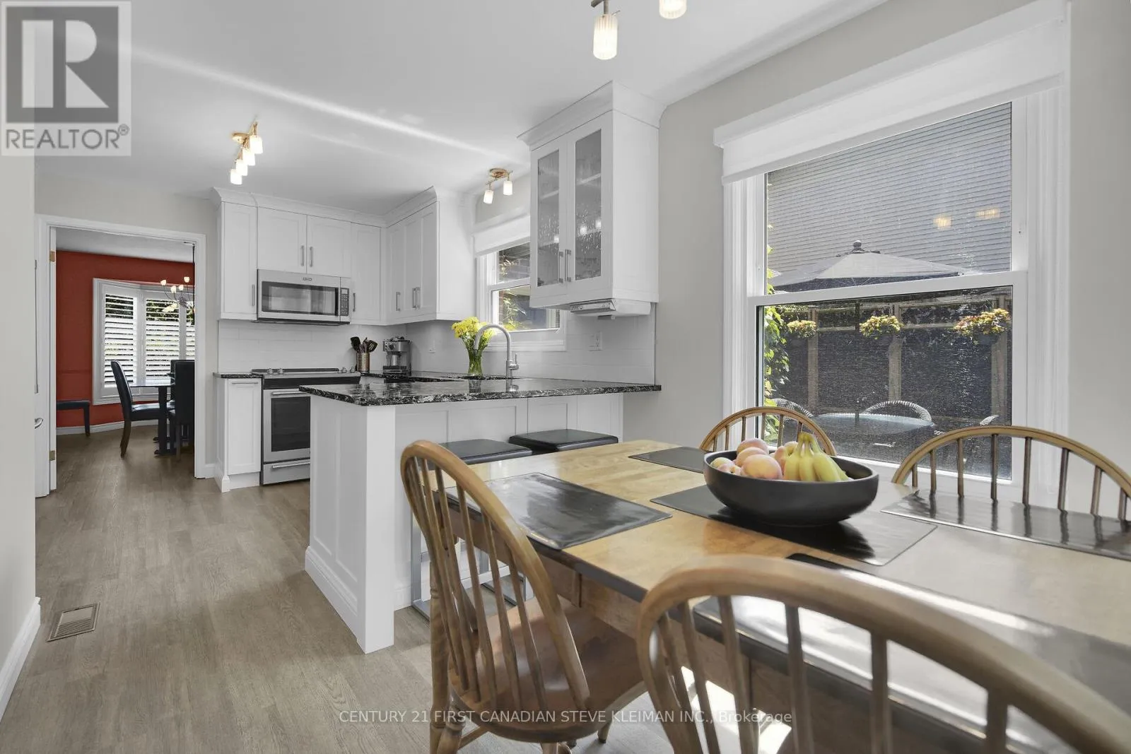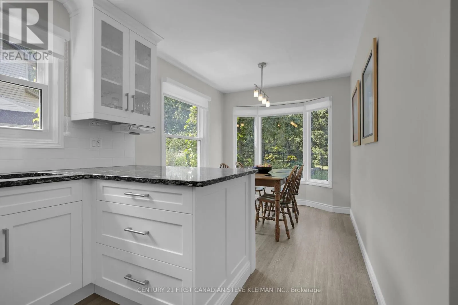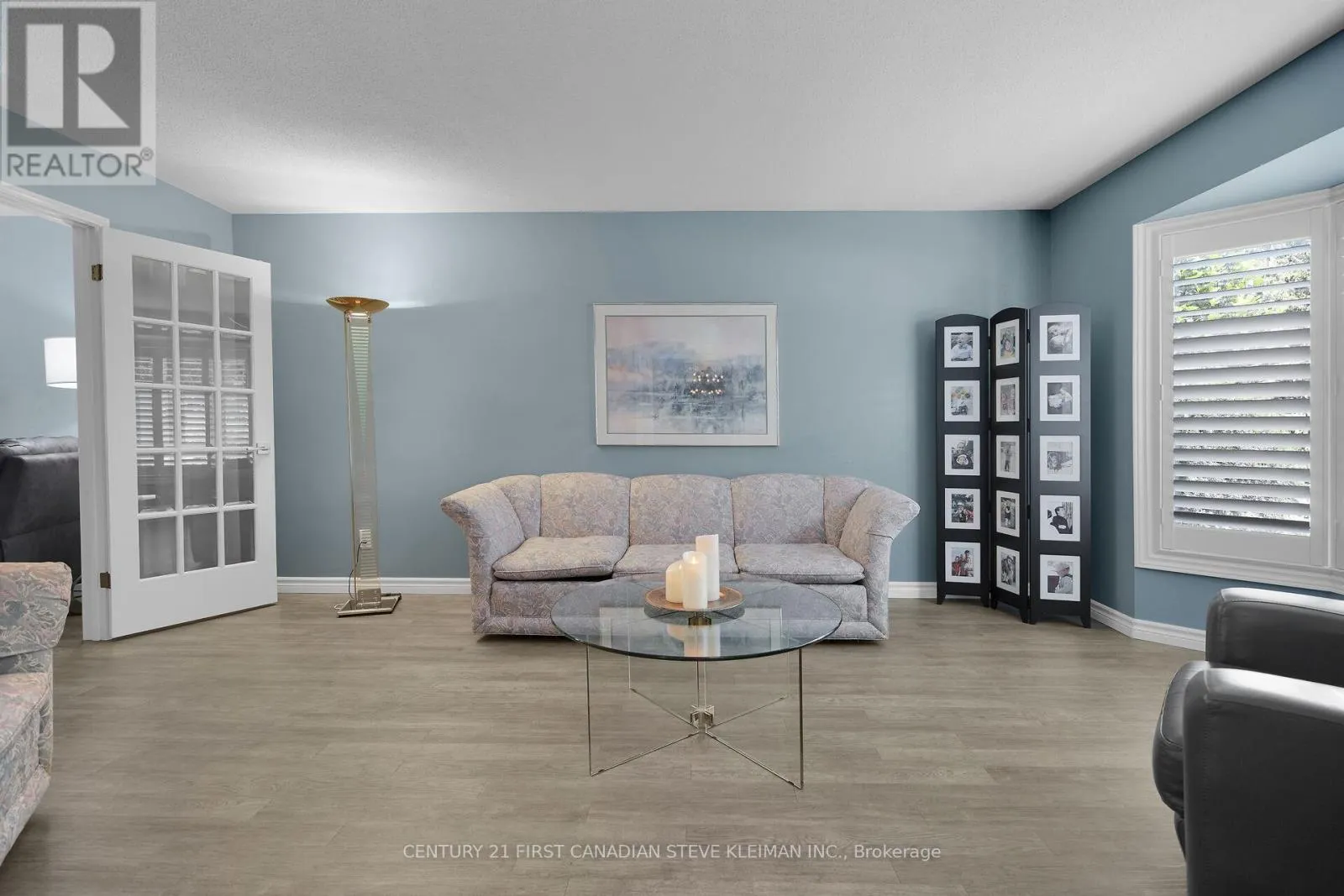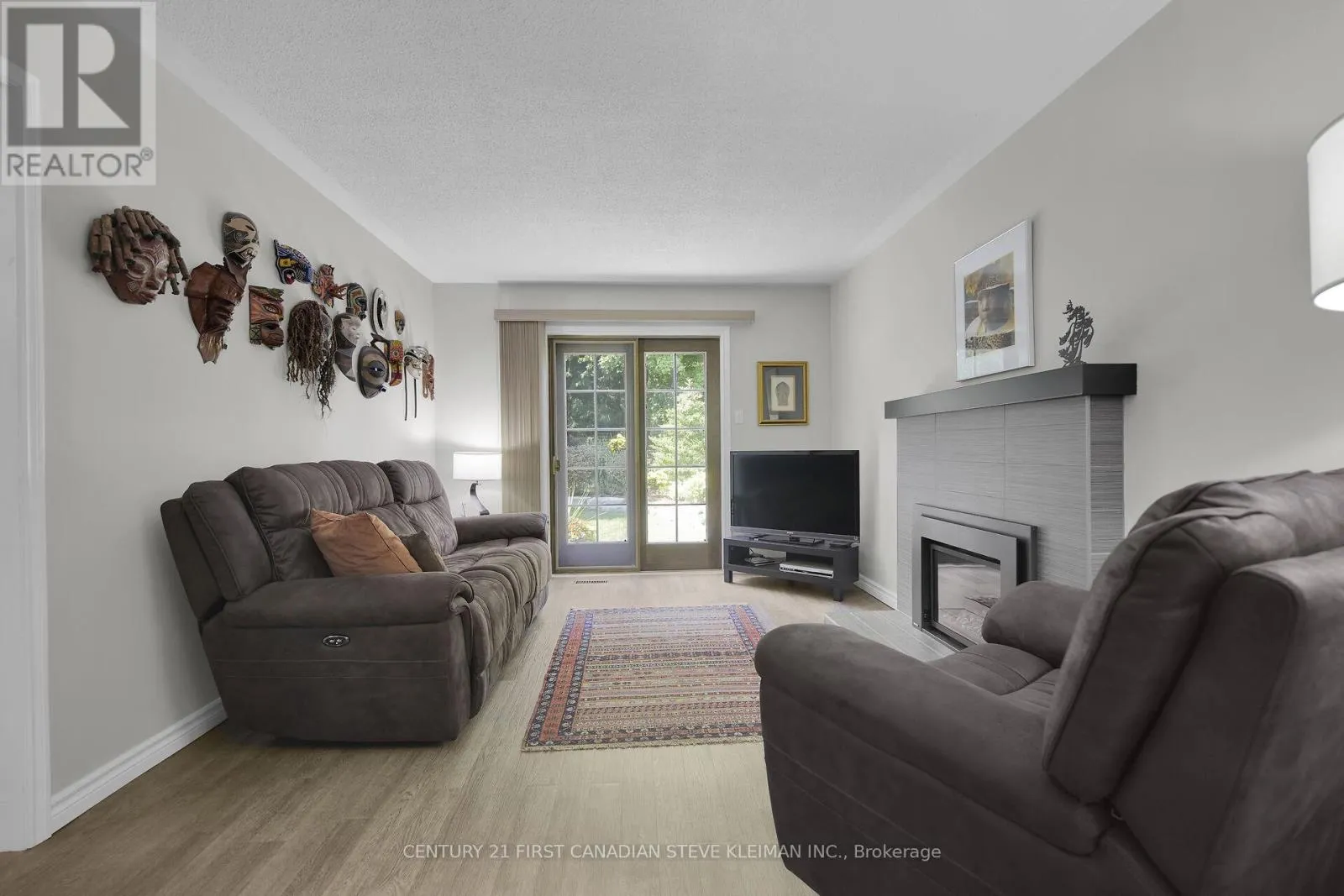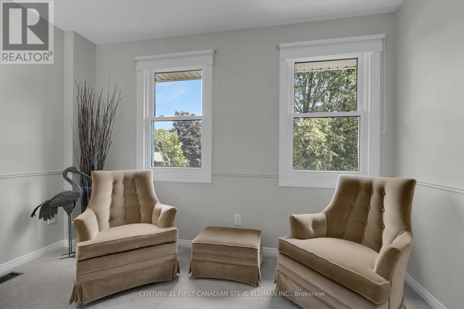 Stoneybrook Cres Meticulously maintained Stoneybrook home backing onto Hastings Park woods & trails. Two-storey foyer features wainscotting & sidelights flanking front door. California shutters on the bay windows. Juliette balcony staircase. Double French doors with beveled glass connecting the family & living rooms. The dining room offers chair rail & french door with beveled glass leading to bright kitchen designed for functionality & style. The kitchen boasts cabinetry with crown moulding, soft-close drawers & doors, a built-in spice rack, & a pantry cabinet with pull-out drawers. Granite countertops are paired with a ceramic backsplash & valance lighting, creating a welcoming space. Enjoy premium appliances including a Maytag french door fridge with filtered water & ice. Artika stainless double sink with built-in strainer & cutting board. Main floor laundry includes a stainless sink, cabinetry, & ceramic tile flooring, conveniently leading to the backyard. The home features a 4-piece main bath with ceramic tile surround & glass sliding door, plus a full ensuite with walk-through his/hers closets with built-ins, all enhanced with updated doors & brushed nickel hardware. Additional highlights include a Regency gas fireplace with ceramic tile surround in family room, central vacuum, solid oak staircase & handrail leading to lower level, where you'll find built-in seating with storage in the recreation room, double glass pocket doors to an office with built-ins, and a 2-piece lower bath & a work bench. The exterior boasts stamped concrete double driveway, walkway, & patio surrounding three sides of the house dozens of cap rocks for raised gardens. Newer insulated garage doors, and a wood fence installed in 2021 for privacy. Significant updates over the years include a 2018 kitchen reno, LVP flooring, Certa Pro Painters 2022, roof 2012, California shutters 2019, new vinyl windows & siding between 2012-2019, a Regency gas fireplace 2014, & front doors refreshed in 2014. Dream home! (id:27476)