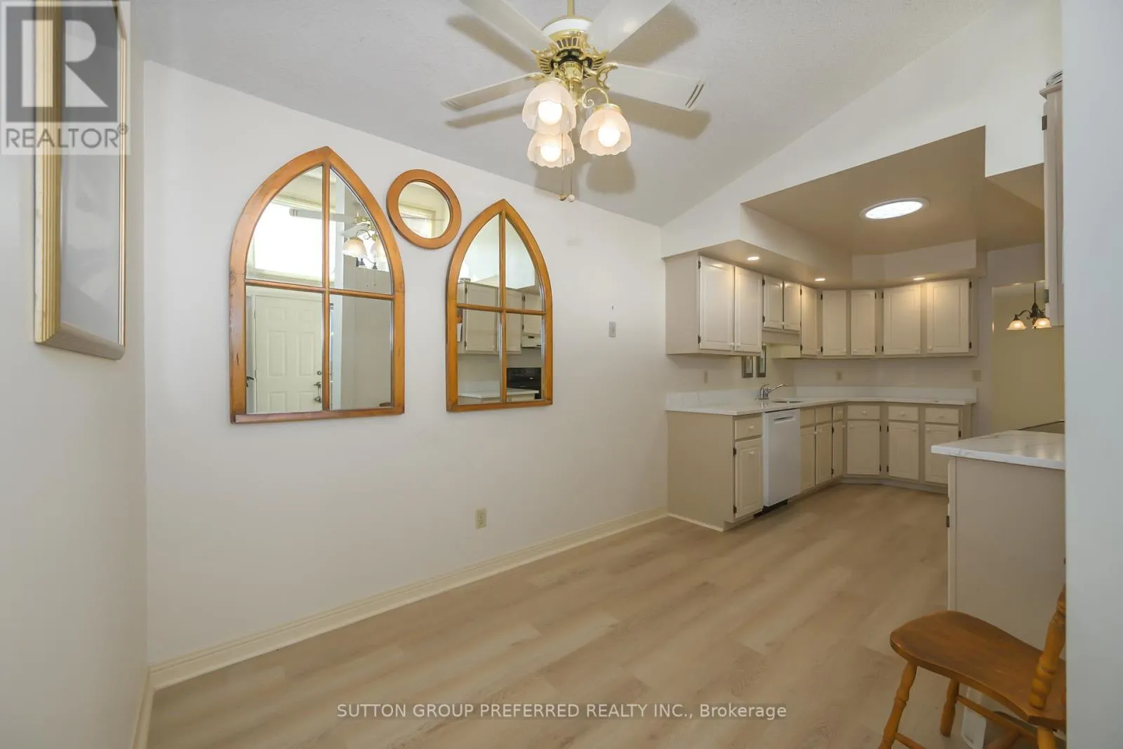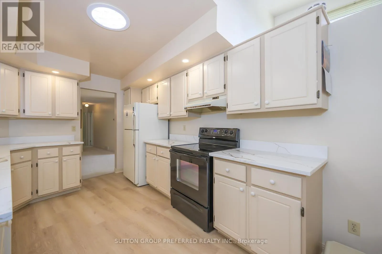 Cross Streets: Corner of Hyde Park Road and Valetta. ** Directions: Hyde Park Road and east on Valetta - property on the left. OAKRIDGE !! Fiddler's Green condo. Unique location - at the corner of Hyde Park Road and Valetta - first driveway on the left off Valetta - just east of Hyde Park Road. The largest floor plan in the complex- approx 1640 Sq Ft. Generous sized rooms. Good sized 2 car garage with inside entry and lots of parking out front. Private park like setting with walled private courtyard. Large bright living room with gas fireplace. Separate dining area. Eat in kitchen with quartz countertops - also includes refrigerator, stove and dishwasher. Main level den/family room - could be a third bedroom. Large master bedroom with 3 piece ensuite and walk-in closet. - bright with large windows. 4 solar tubes for added brightness. Good sized second bedroom. 2 1/2 baths. Lower level offers large rec room with wet bar. Lots of storage. Well kept and sought after complex with outdoor pool, walking distance to Remark and Sifton Bog walking trails. Close to shopping, schools and more. Updates include: New AC in 2022, updated kitchen with quartz countertop, 2024. updated ensuite - new toilets in main floor bathrooms. Re-laid brick courtyard, 2025. All appliances included except microwave. Also includes large freezer downstairs. Quick possession available. Flooring replacement allowance will be considered by the Seller on any offers. (id:27476)