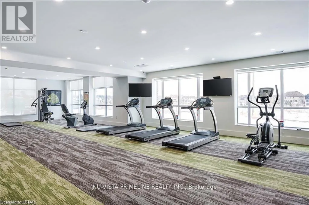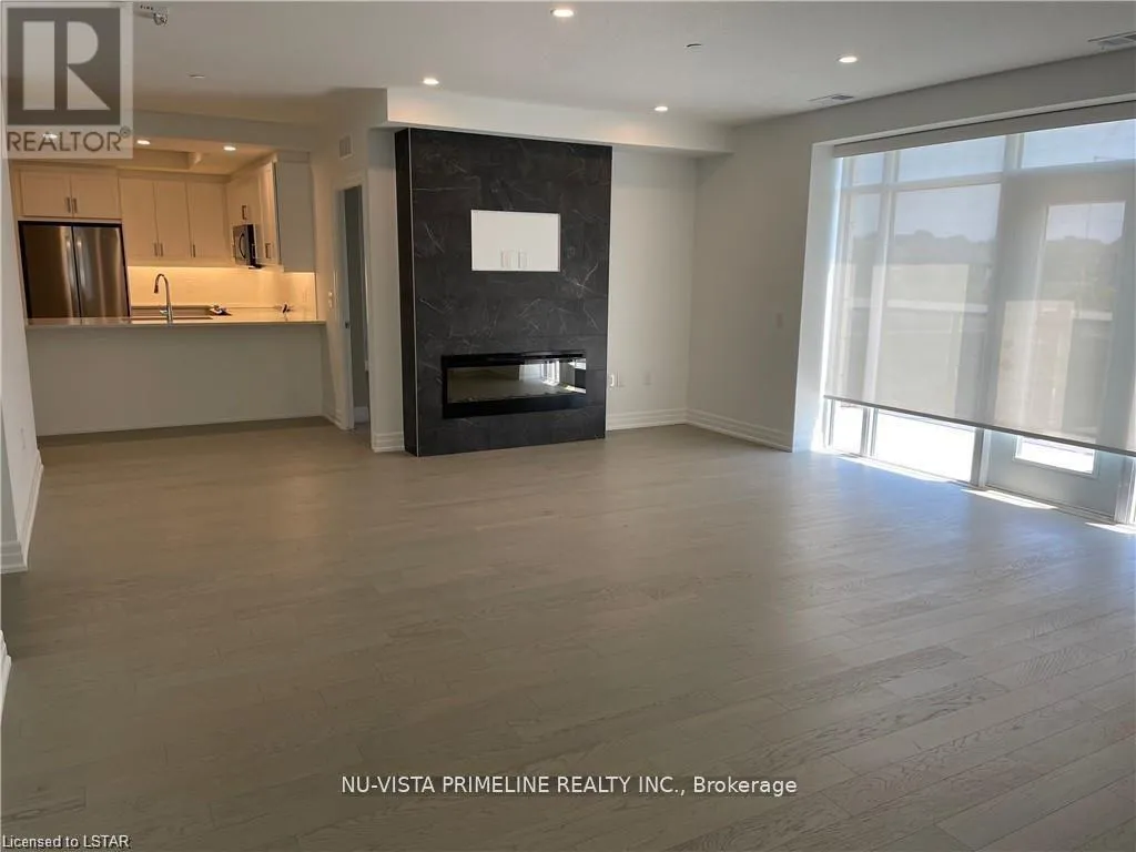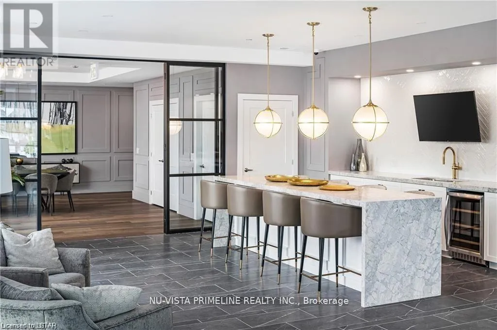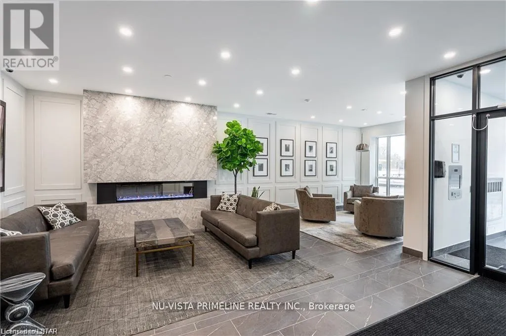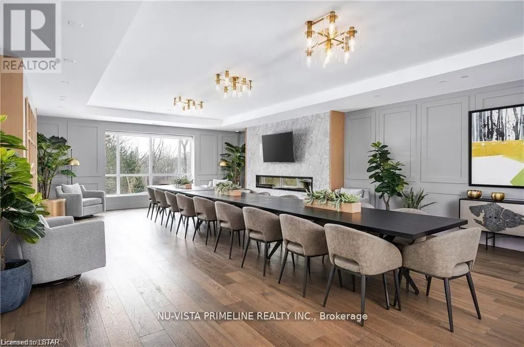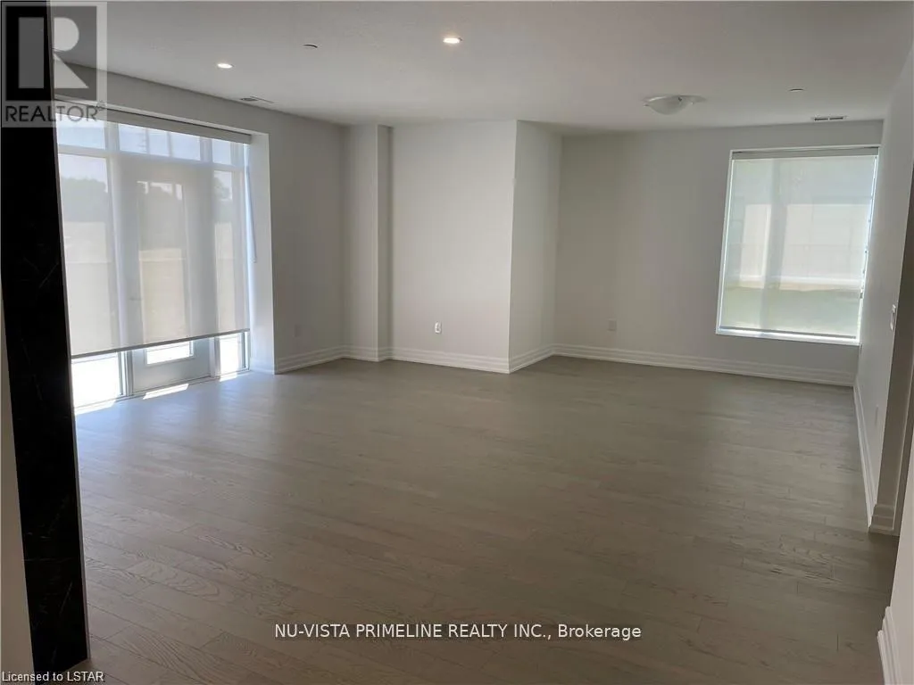 in Between Richmond and Wonderland on North side. This South facing, Main Floor Northlink 2 Condo offers 1535 sq/ft of living space, plus 240 sq ft of balcony, plus 2 parking spots. This 2 BEDROOMS + DEN, 2 bathrooms, and features one of the best layouts_ being wheelchair accessible_ while boasting views on Sunningdale Golf and Country club and ravine across the street. As you enter, the upgrades are evident from the onset, with stunning flooring run throughout the main living areas. An upgraded kitchen with Quartz Counters, White Cabinetry, Walk-in Pantry, Stainless Steel Appliances, and a large peninsula provides a great space to eat/entertain while open to a large great room. A large dining space comfortably sits a table for 6 people. 2 large bedrooms and a dedicated den or 3rd bedroom/ nursery. This unit also has a true walk-in laundry room with storage. Enjoy the state -of-the-art amenities on the main floor including fitness room, residential lounge, dining room, golf simulator, outdoor sport court and guest suite. Prime location! (id:27476)