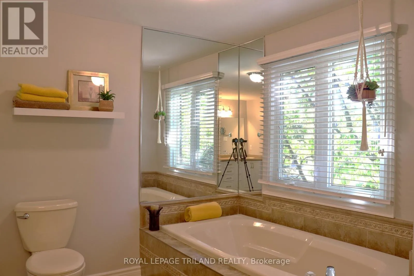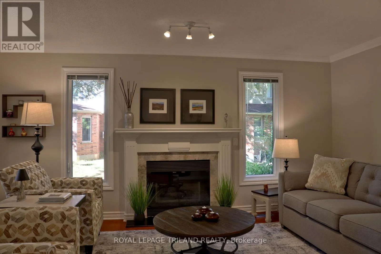 Cross Streets: SUNNYSIDE AND NORTH CENTRE. ** Directions: COMPLEX LOCATED AT THE CORNER OF NORTH CENTRE AND SUNNYSIDE. ENTRANCE OFF SUNNYSIDE. You will love this attractive two story end unit townhouse in the Masonville area. It has a spacious, yet cozy layout with a bright south and east facing eat-in kitchen. Updated kitchen. Hardwoods on the main floor with a lovely oak stairway to the second level. The living room and dining room space is bright with a gas fireplace. Main floor office. The large master bedroom suite upstairs has a five piece en-suite with soaker tub, separate shower and his and hers sinks, and a large walk in closet. One of the secondary bedrooms has a nook space that could be used as an office or hobby area. The two car garage is staggered, meaning that one side of the drive is double length -- great for loading and unloading the trailer. Close to everything. Units like this one don't come up every day. (id:27476)