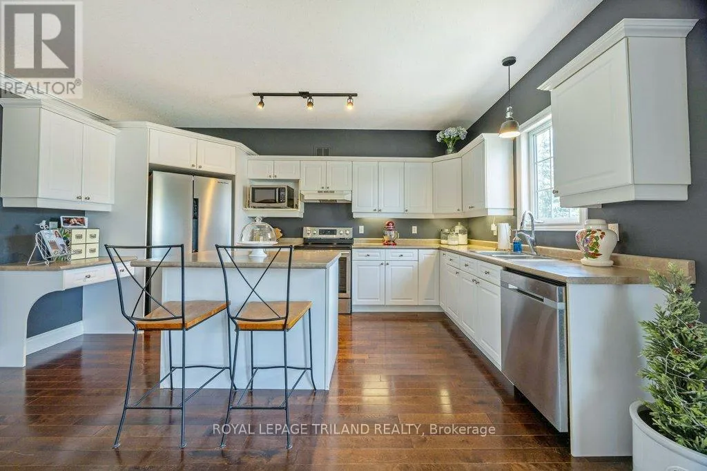 Cross Streets: Ambleside Drive/Fanshawe Park Road. ** Directions: Fanshawe Park Road W to Derwent Road. Derwent Road to Ambleside Drive. Ambleside Drive to Whitehaven Crescent. Location. Location. Prime Masonville/Ambleside custom built raised ranch perfect for multigenerational living. Original owners. The pride of ownership is evident. Bright open foyer greets you on entry. Main floor has everything you need on it. Oversized great room/family room, perfect for movies and family game night. Black and white kitchen with massive open, attached eating area/dining room. Stainless appliances. Hardwood, porcelain and ceramic tile floors. Patio doors lead to deck and backyard. Three bedrooms are spacious with hardwood floors. Primary is oversize with ensuite and double closets. Window seat in bedroom #2. Additional main five piece bath. Lower level walkout has high ceilings and would be perfect for in law suite or teen retreat. Family room and gym combo. Vinyl plank flooring (2023/2025) Bedroom. Full three piece bath. Laundry. Furnace and AC 2020. Shingles 2016. Lower has access to garage and walk out to yard. Fridge 2025. Lots of storage. Masonville PS is highly ranked on Fraser Institute School ranking. (id:27476)