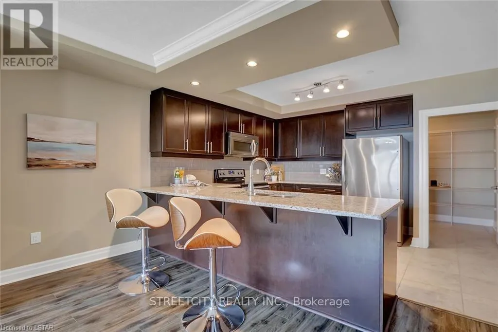 Cross Streets: RICHMOND ST NORTH,WEST ON TO SUNNINGDALE, SOUTH ON TO VILLAGEWALK. ** Directions: Richmond St North, West on to Sunningdale, South on to Villagewalk. Welcome to this stunning condo located in Prime North London. Vacant - Move in Ready ! Freshly Painted !! Over 1500square feet of living space with views to the North and beautiful sunsets to the West. This Unit has 2 Bedrooms plus a Den ( Den can be used as a 3rd Bed ) plus 2 full Baths. Huge Kitchen with breakfast bar, granite counter tops and stainless-steel appliances. Walk-in pantry, Separate laundry room. Open concept Living and Dining room overlooking balcony. Hardwood floors and ceramic flooring throughout. Primary bedroom includes 3-piece ensuite as well as huge walk-in closet. Spacious and Bright Bedrooms. 2 Underground Parking spaces come with the unit. The Amenities in this building are incredible! Indoor Pool, Golf Simulation Room, Billiards room, Theatre Room, Guest Suite available (for fee) and an incredible gym! Condo Fee Includes everything except Hydro. (id:27476)