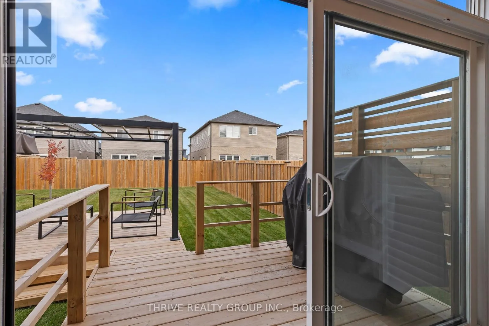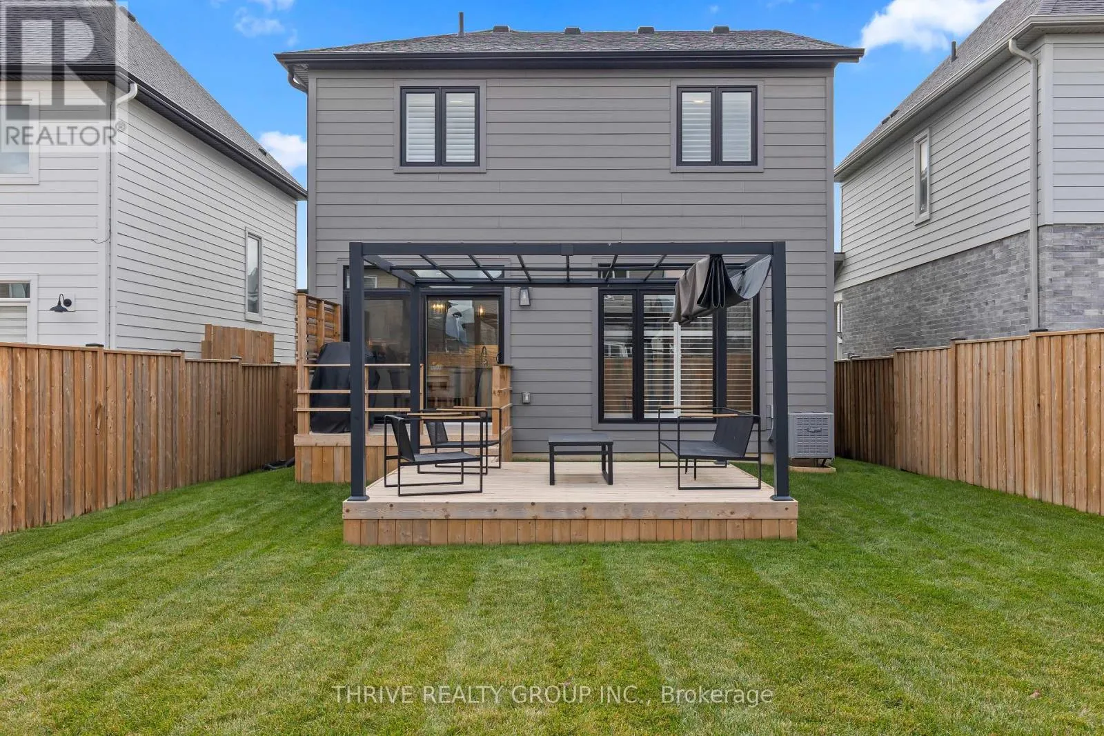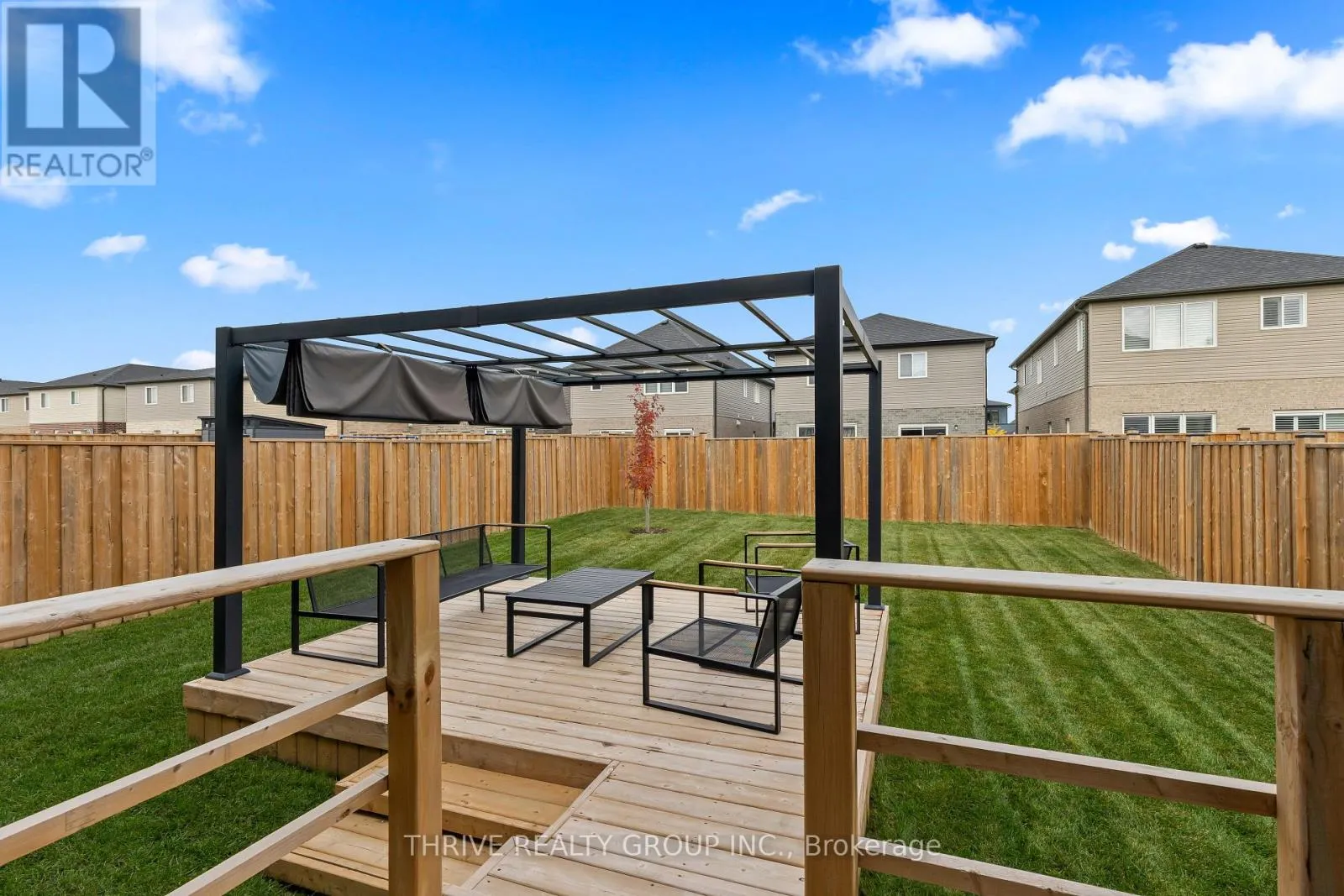 Cross Streets: Applerock and Heardcreek. ** Directions: Buroak to Applerock Ave to Heardcreek Trail. Welcome to 3057 Heardcreek Trail - an impeccable, move-in-ready home where quality craftsmanship meets modern comfort. This Brookville model by Rockmount Homes stands out with its custom details and refined finishes, setting it apart from others in desirable Northwest London. From the moment you arrive, the home's curb appeal sets the tone with its contemporary exterior. Inside, you'll find a bright, airy layout enhanced by natural light, Large windows with transoms and California Shutters, hardwood flooring on the main level, and a thoughtful open-concept design ideal for modern living. The kitchen is the true heart of the home, featuring a large center island, quartz countertops, full-height cabinetry, backsplash, and open shelving accented by premium fixtures - perfect for both everyday living and entertaining. The kitchen flows seamlessly into the dining area and living room, where an electric fireplace create a warm and inviting atmosphere. Step outside to a private, fully fenced backyard with an oversized deck - perfect for relaxing or hosting gatherings. Upstairs, the primary suite is a true retreat, offering vaulted ceilings, a oversized walk-in closet, and a spa-inspired ensuite. Two additional spacious bedrooms, a stylish 4-piece bathroom, and a convenient upper-level laundry closet complete this floor - ideal for families. The unspoiled lower level provides endless possibilities for customization, with two egress windows ready for a future recreation room, home gym, or additional bedroom. Perfectly situated in Northwest London, this home offers the best of quiet suburban living with easy access to parks, trails, new schools, shopping, and major roadways. With its thoughtful design, high-end finishes, and unbeatable location, 3057 Heardcreek Trail isn't just a house - Its ready to be your HOME. (id:27476)