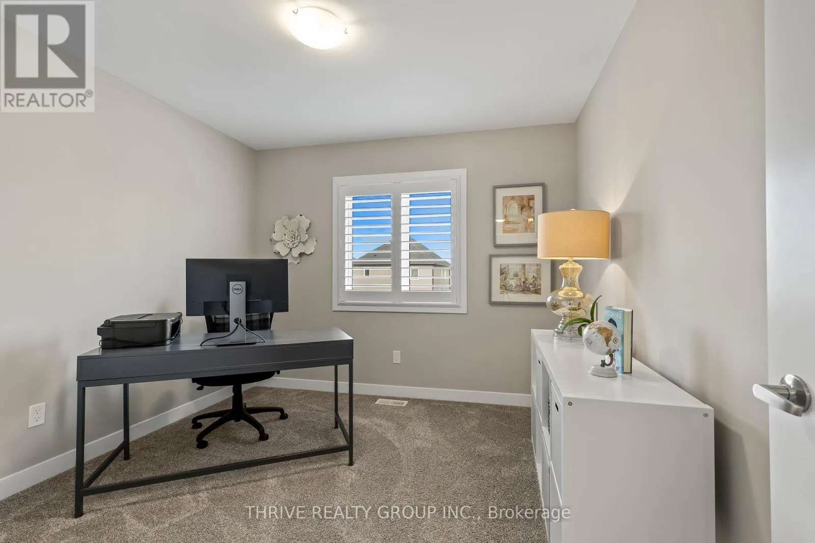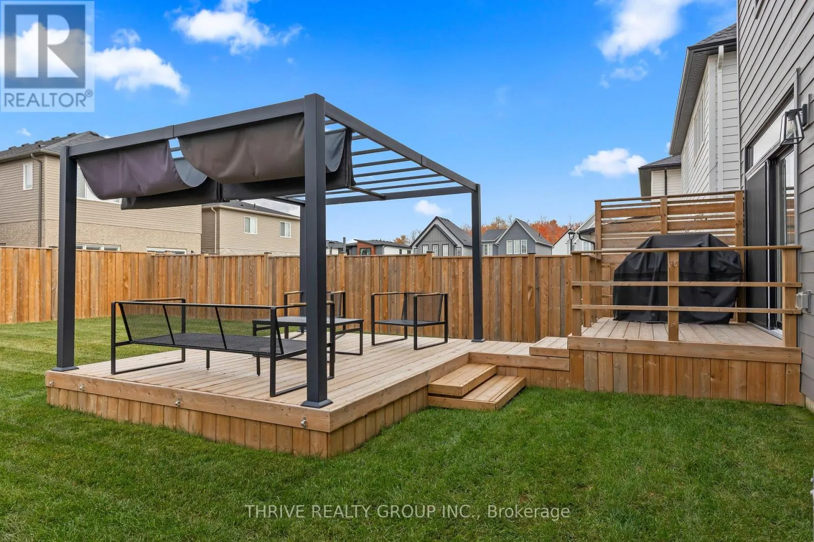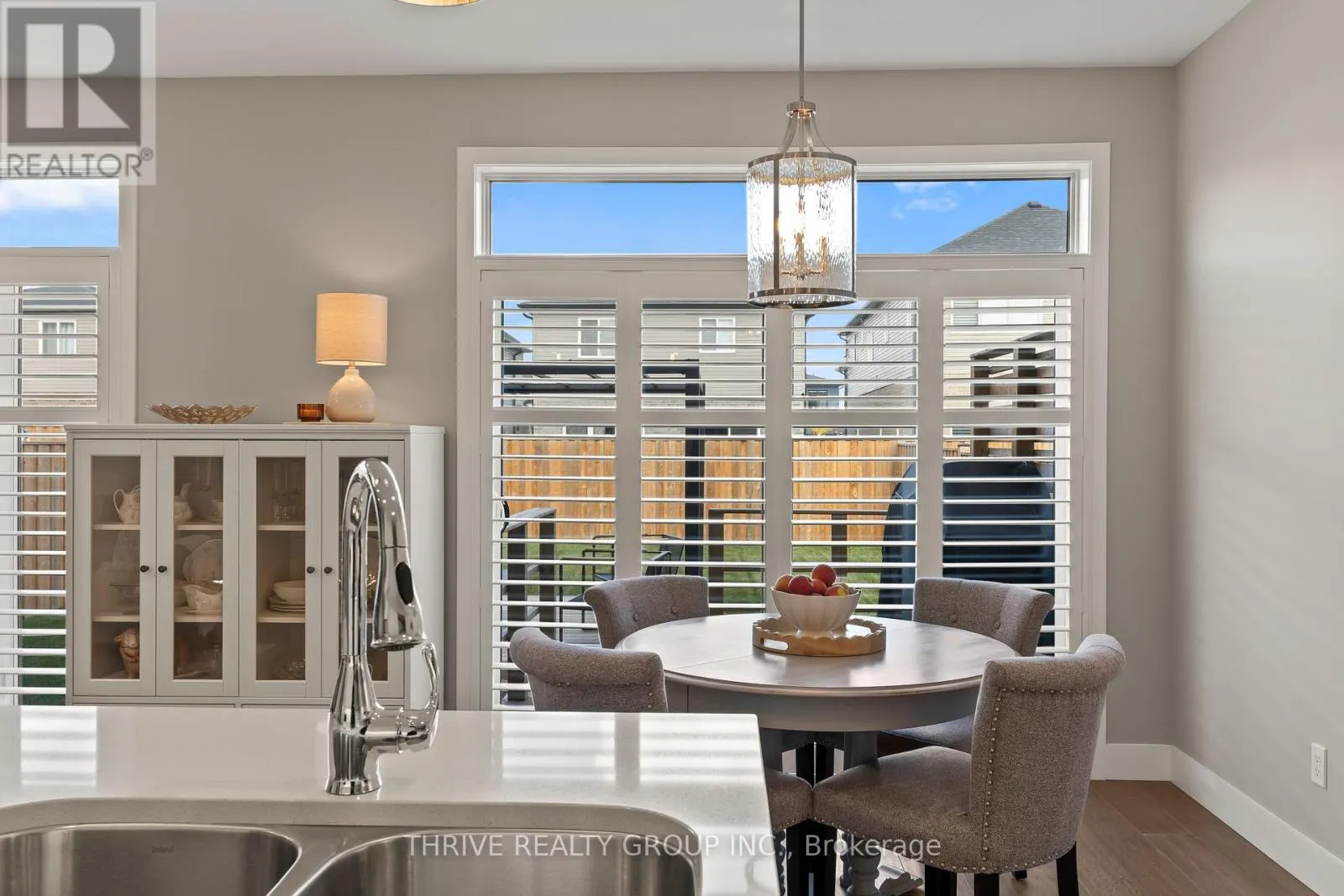 Cross Streets: Applerock and Heardcreek. ** Directions: Buroak to Applerock Ave to Heardcreek Trail. Welcome to 3057 Heardcreek Trail - an impeccable, move-in-ready home where quality craftsmanship meets modern comfort. This Brookville model by Rockmount Homes stands out with its custom details and refined finishes, setting it apart from others in desirable Northwest London. From the moment you arrive, the home's curb appeal sets the tone with its contemporary exterior. Inside, you'll find a bright, airy layout enhanced by natural light, Large windows with transoms and California Shutters, hardwood flooring on the main level, and a thoughtful open-concept design ideal for modern living. The kitchen is the true heart of the home, featuring a large center island, quartz countertops, full-height cabinetry, backsplash, and open shelving accented by premium fixtures - perfect for both everyday living and entertaining. The kitchen flows seamlessly into the dining area and living room, where an electric fireplace create a warm and inviting atmosphere. Step outside to a private, fully fenced backyard with an oversized deck - perfect for relaxing or hosting gatherings. Upstairs, the primary suite is a true retreat, offering vaulted ceilings, a oversized walk-in closet, and a spa-inspired ensuite. Two additional spacious bedrooms, a stylish 4-piece bathroom, and a convenient upper-level laundry closet complete this floor - ideal for families. The unspoiled lower level provides endless possibilities for customization, with two egress windows ready for a future recreation room, home gym, or additional bedroom. Perfectly situated in Northwest London, this home offers the best of quiet suburban living with easy access to parks, trails, new schools, shopping, and major roadways. With its thoughtful design, high-end finishes, and unbeatable location, 3057 Heardcreek Trail isn't just a house - Its ready to be your HOME. (id:27476)