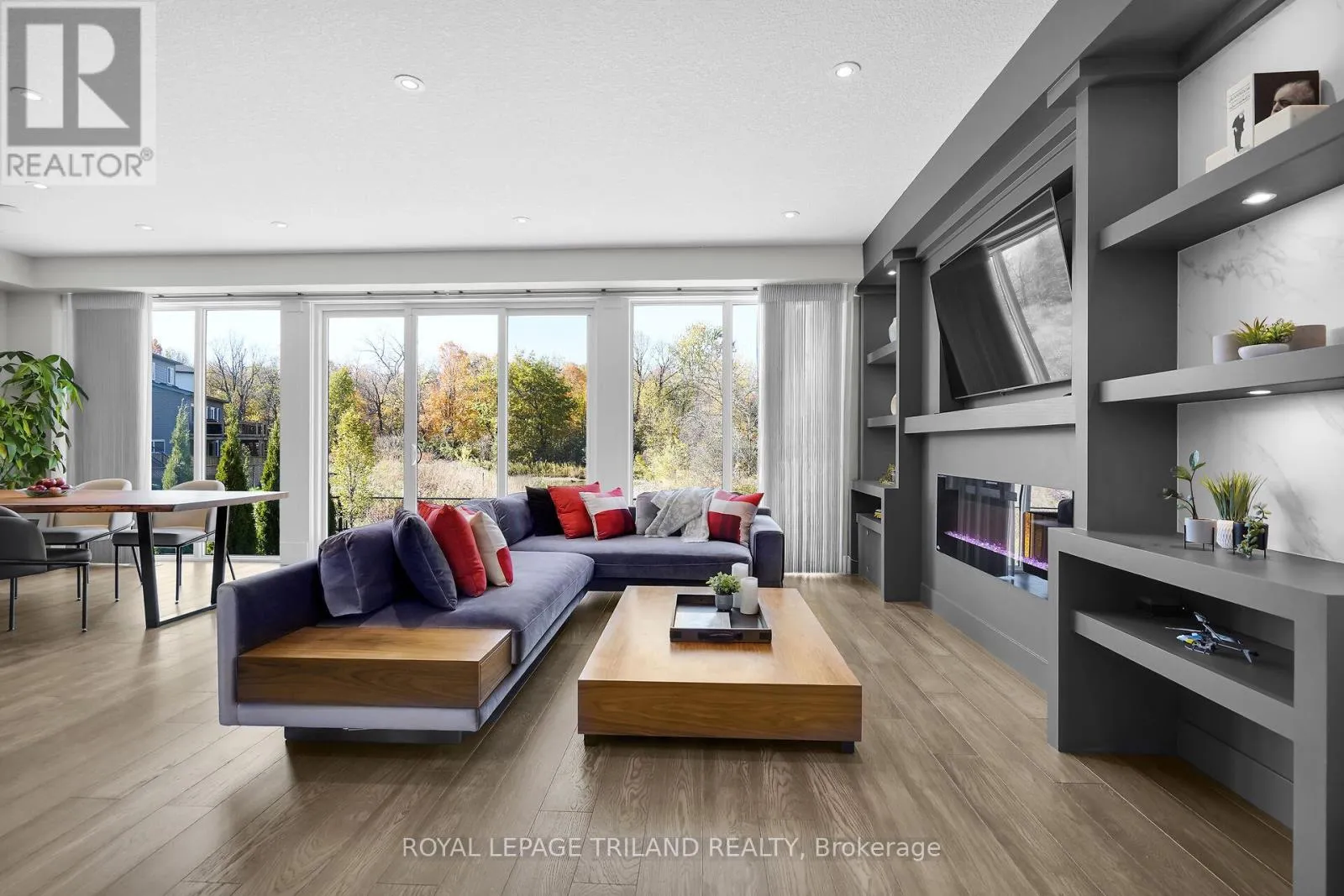 Cross Streets: Coronation Drive. ** Directions: West of Aldersbrook Road, at Elson Road, South of Coronation Drive. Nestled in an upscale enclave at the northwest end of Lawson Road, this custom executive home in Maple Grove Park area offers the perfect blend of elegance, comfort, and modern innovation. Backing onto a pond and treed area, the property provides a peaceful and private retreat while still being close to all city conveniences. From the moment you arrive, the home's quality craftsmanship is evident - from the concrete double driveway and stylish exterior to the transom windows that flood the main floor with natural light, soaring 9-foot ceilings, an open-concept layout, and a seamless flow that creates a spacious, welcoming atmosphere. Every detail has been thoughtfully designed, from the stone countertops and built-in stainless steel appliances to the tasteful décor and premium finishes throughout. The main living space opens to a serene backyard oasis - a low-maintenance yet tranquil setting ideal for relaxing with a good book, entertaining friends, or enjoying an evening glass of wine as the sun sets over the pond. Upstairs, the family room impresses with vaulted ceilings and a cozy fireplace; easily converted to an additional bedroom if desired. The primary bedroom is a true retreat, featuring a luxurious ensuite, walk-in closet, and stylish design touches that elevate the space. Convenience continues with a spacious mudroom off the garage and second-floor laundry. This home is as smart as it is beautiful. The upgraded kitchen includes a walk-in pantry, pasta tap, water treatment system, and custom Hunter Douglas automated blinds with remote and lifetime warranty - all integrated with Siri and Google Assistant. The premium Lutron lighting system, enhanced with Philips Hue technology, offers customizable ambience throughout. A Wi-Fi-enabled security system and smart thermostat provide peace of mind and energy efficiency. Immaculate, innovative, and move-in ready - this home perfectly captures luxury living in a natural setting. (id:27476)