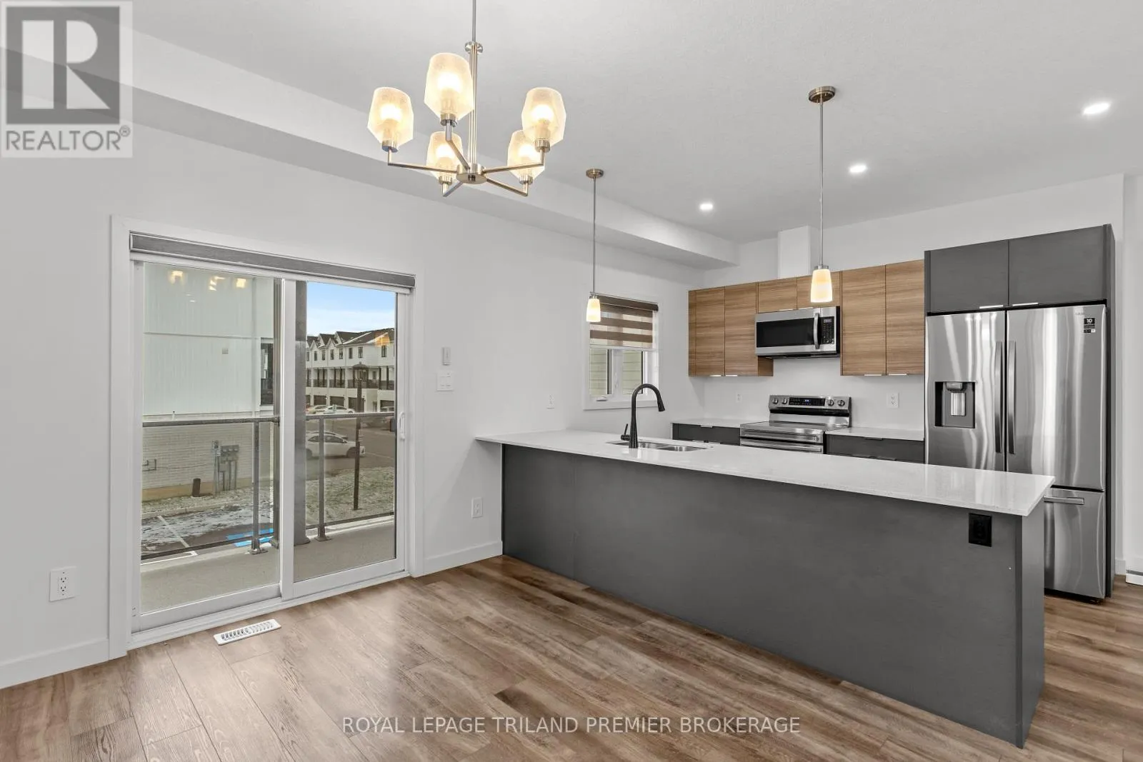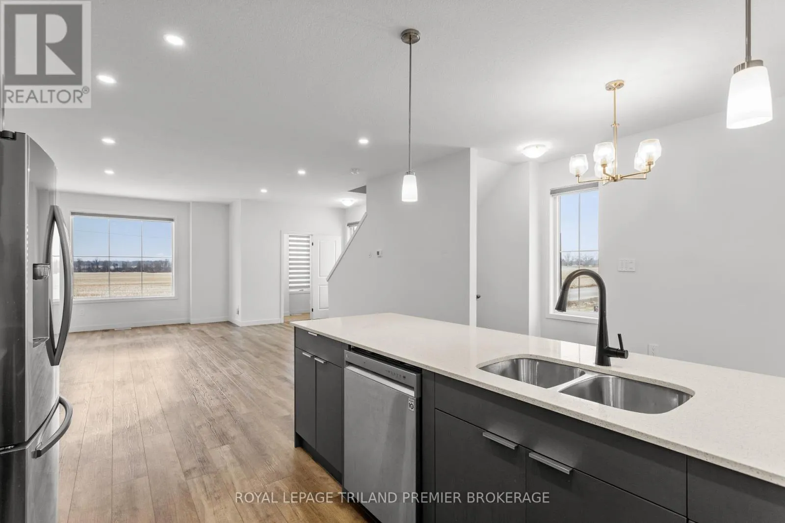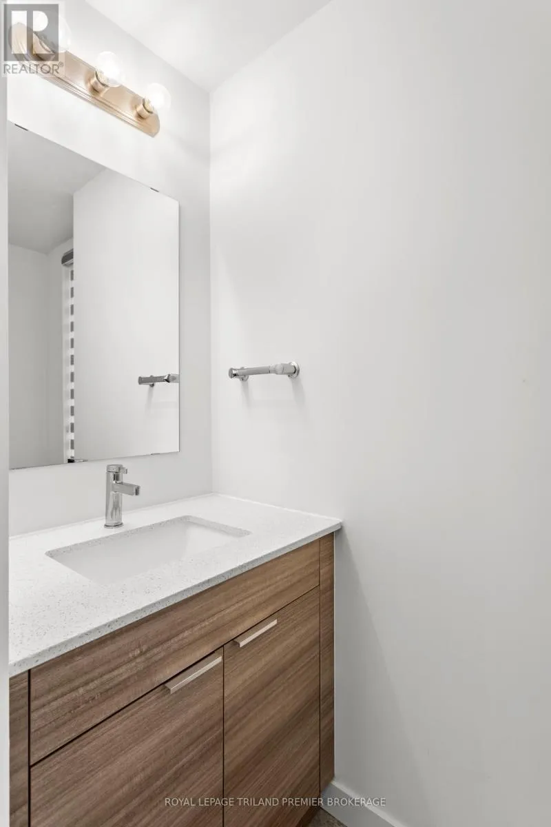 HEADING NORTH ON HYDE PARK FROM FANSHAWE PARK, TURN RIGHT ONTO TWILITE, RIGHT ONTO TOKALA, RIGHT ONTO HENRICA LIKE NEW! Gorgeous 3 storey end unit in desirable northwest London. Enter through the front door into the bright lower level featuring spacious foyer; direct access to the garage; full 4- piece bathroom; and bedroom which is perfect for a private guest suite or work from home office. The main level is open concept with large windows and laminate flooring; generous family room; kitchen with stainless steel appliances, quartz countertops; under cabinet lighting; lots of storage and peninsula with breakfast bar; generous dinette with private balcony access; and convenient 2 piece powder room. The upper level boasts 4- piece main bathroom and 3 spacious bedrooms including master suite with walk in closet, 3-piece ensuite and balcony which is the perfect place to have your morning coffee. Bonus garage for storage or parking with garage door opener. Corner lot with lots of green space to enjoy. Fabulous location close to public transit, parks, trails, schools, golf, shopping, restaurants, UWO, University Hospital and more. 2 parking spaces (one driveway, one garage). $2750 is plus utilities. Must be able to provide credit check, letter of employment, references,3 months consecutive bank statements and deposit. No smoking, pets allowed but restricted, maintenance free with lawn and snow removal covered by condo corp, visitor parking available, tenant to provide proof of tenants insurance. (id:27476)