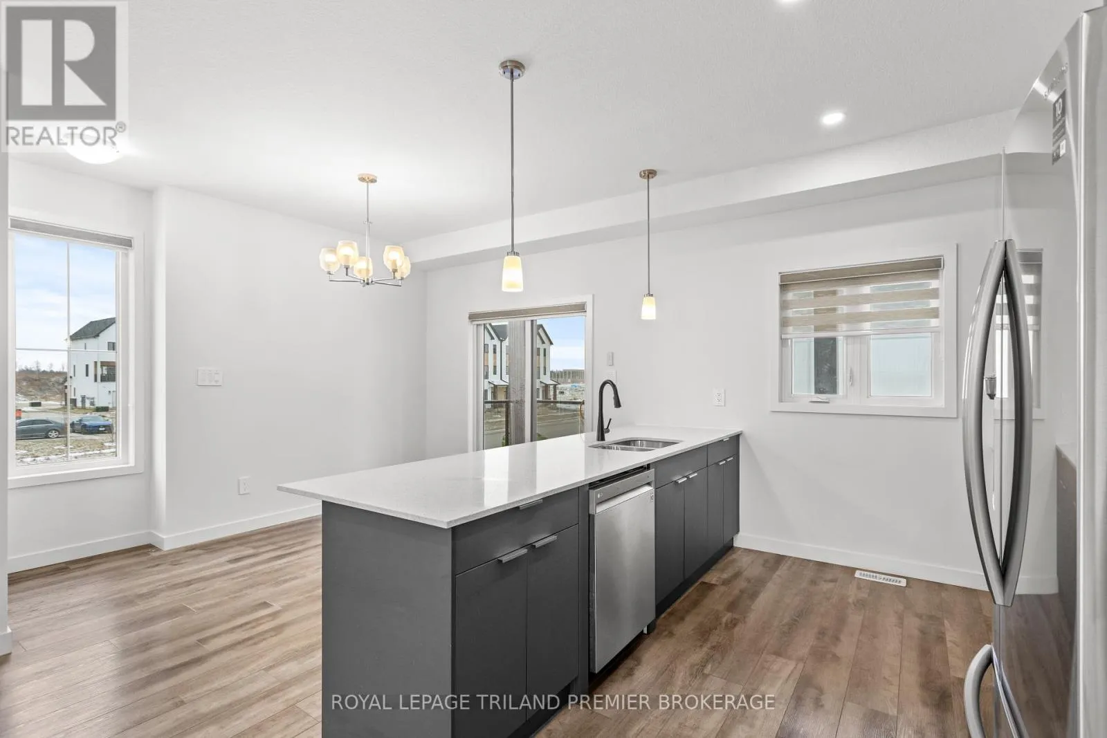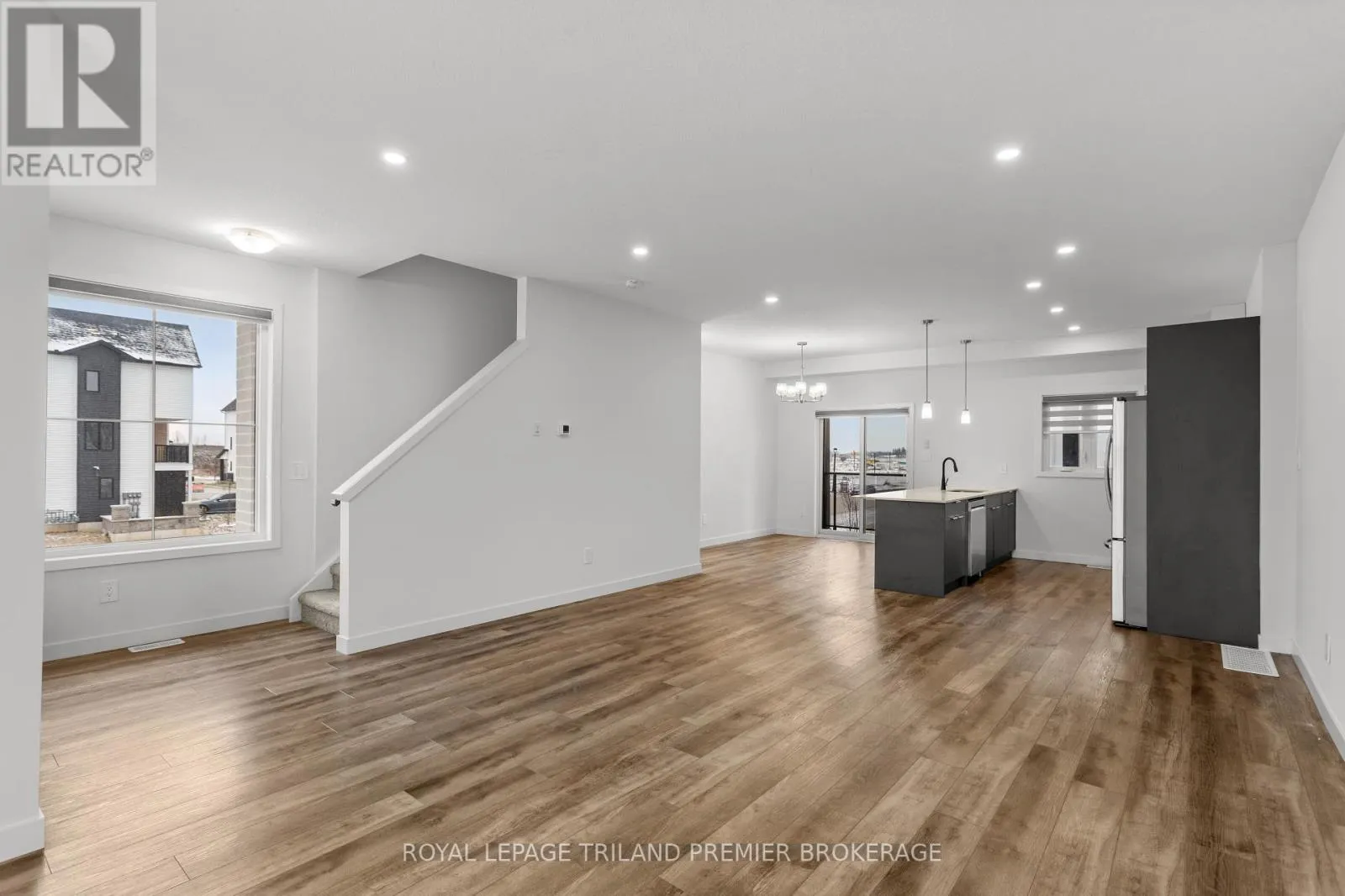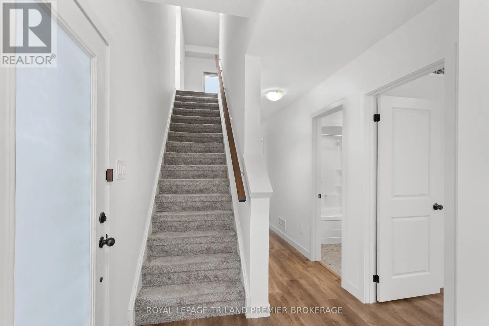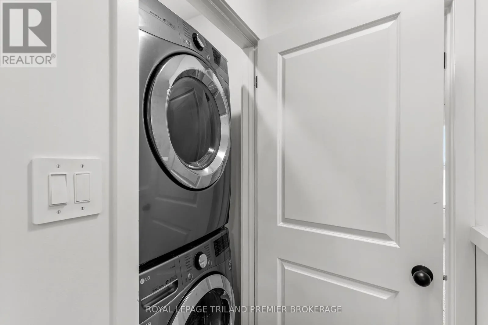 HEADING NORTH ON HYDE PARK FROM FANSHAWE PARK, TURN RIGHT ONTO TWILITE, RIGHT ONTO TOKALA, RIGHT ONTO HENRICA LIKE NEW! Gorgeous 3 storey end unit in desirable northwest London. Enter through the front door into the bright lower level featuring spacious foyer; direct access to the garage; full 4- piece bathroom; and bedroom which is perfect for a private guest suite or work from home office. The main level is open concept with large windows and laminate flooring; generous family room; kitchen with stainless steel appliances, quartz countertops; under cabinet lighting; lots of storage and peninsula with breakfast bar; generous dinette with private balcony access; and convenient 2 piece powder room. The upper level boasts 4- piece main bathroom and 3 spacious bedrooms including master suite with walk in closet, 3-piece ensuite and balcony which is the perfect place to have your morning coffee. Bonus garage for storage or parking with garage door opener. Corner lot with lots of green space to enjoy. Fabulous location close to public transit, parks, trails, schools, golf, shopping, restaurants, UWO, University Hospital and more. 2 parking spaces (one driveway, one garage). $2750 is plus utilities. Must be able to provide credit check, letter of employment, references,3 months consecutive bank statements and deposit. No smoking, pets allowed but restricted, maintenance free with lawn and snow removal covered by condo corp, visitor parking available, tenant to provide proof of tenants insurance. (id:27476)