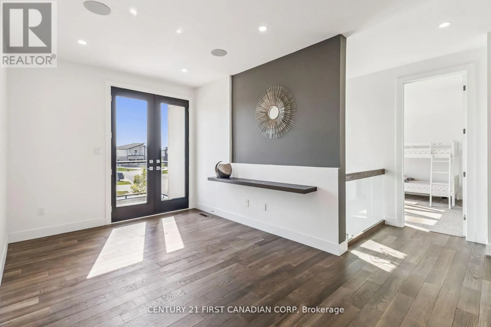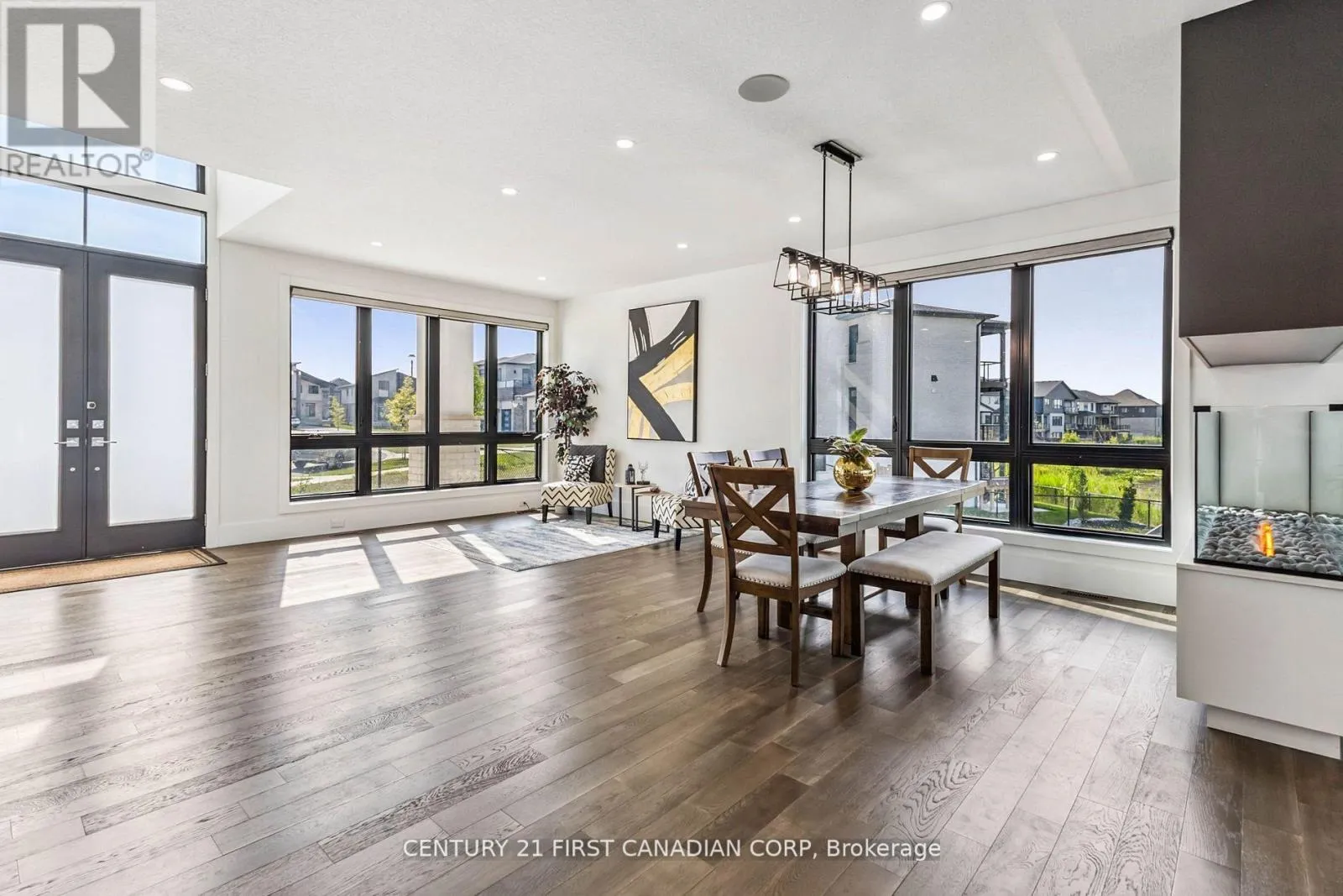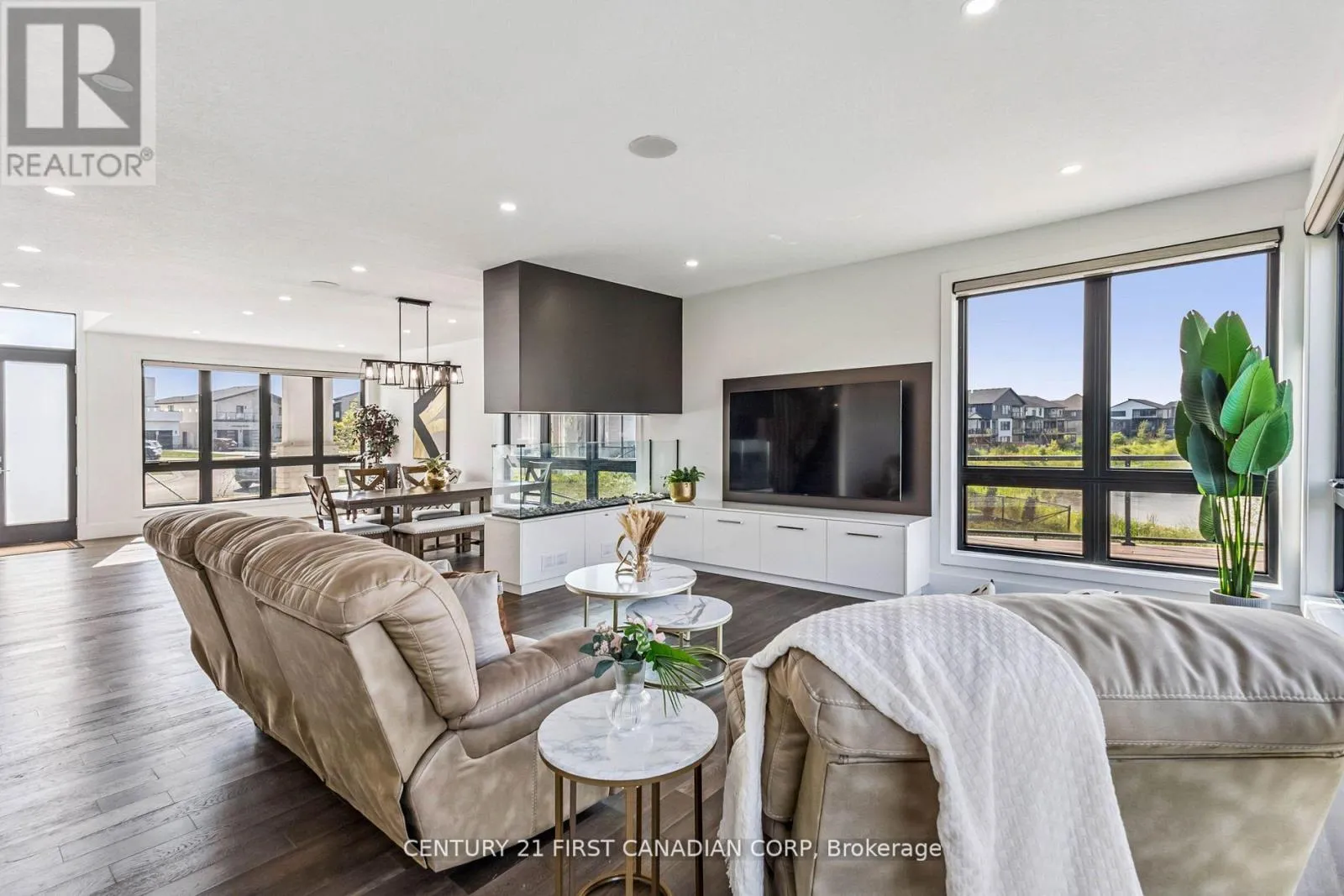 Cross Streets: MEDWAY PARK Drive. ** Directions: Start on Fanshawe Park Rd W.Turn north onto Wonderland Rd N.Drive approx. 1.2 km, then turn right onto Medway Park Dr. Continue down Medway Park Dr 1429 will be on your left-hand side. Welcome to 1429 Medway Park Drive a rare opportunity to own a custom-built luxury residence in the highly sought-after Creekview community of Northwest London. Situated on a premium pie-shaped walkout lot, this home offers unobstructed pond and serene ravine views, with no neighbouring house on one side, providing both privacy and scenic beauty. This designer home boasts approximately 3,800 sq ft of exquisite living space, finished with many upgrades that blend elegance and functionality. As you enter the grand 18-foot foyer, you are greeted by refined details like smart blinds throughout, LED stair lighting, and a statement 80-inch Dimplex steam fireplace in the open-concept living room. The heart of the home is the gourmet kitchen, featuring ceiling-height modern cabinetry, granite countertops, under-cabinet lighting, a stylish backsplash, and an oversized pantry all opening onto a spacious living area with rich engineered hardwood floors and floor-to-ceiling windows overlooking the picturesque pond. From here, step out onto the wraparound deck with glass railings a perfect outdoor sanctuary for morning coffee or sunset entertaining. Upstairs, you will find four spacious bedrooms, including a luxurious primary retreat with breathtaking pond views, custom built-ins in the walk-in closet, and a spa-inspired ensuite with in-floor heating, a double vanity, tiled shower, and soaking tub. A junior suite with private ensuite, additional full bath, and a sunny home office/lounge with balcony access complete the upper level.The fully finished walkout basement extends the homes versatility, offering a fifth bedroom, large recreation space, cold bar, full bath, oversized cold room, and private access for potential in-law or income suite flexibility. This home is ideally located close to Western University, University Hospital, shopping, and top-rated schools, making it the perfect blend of luxury, lifestyle, and location. (id:27476)