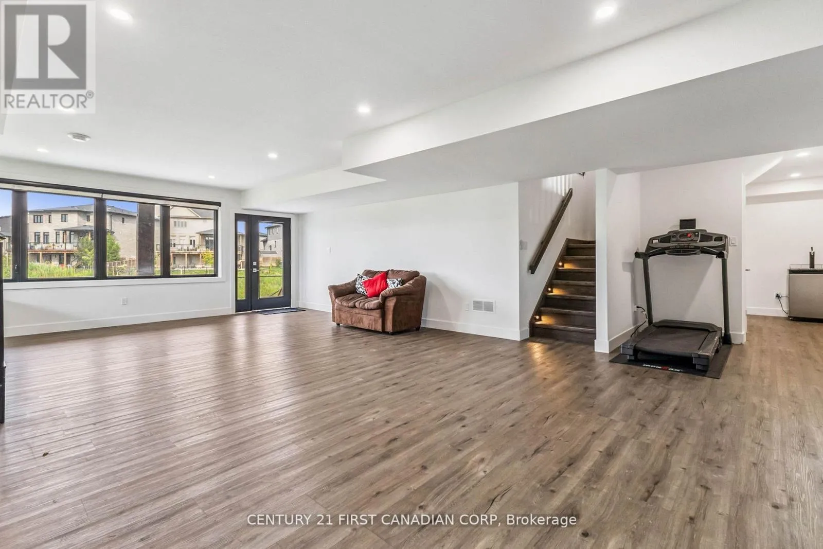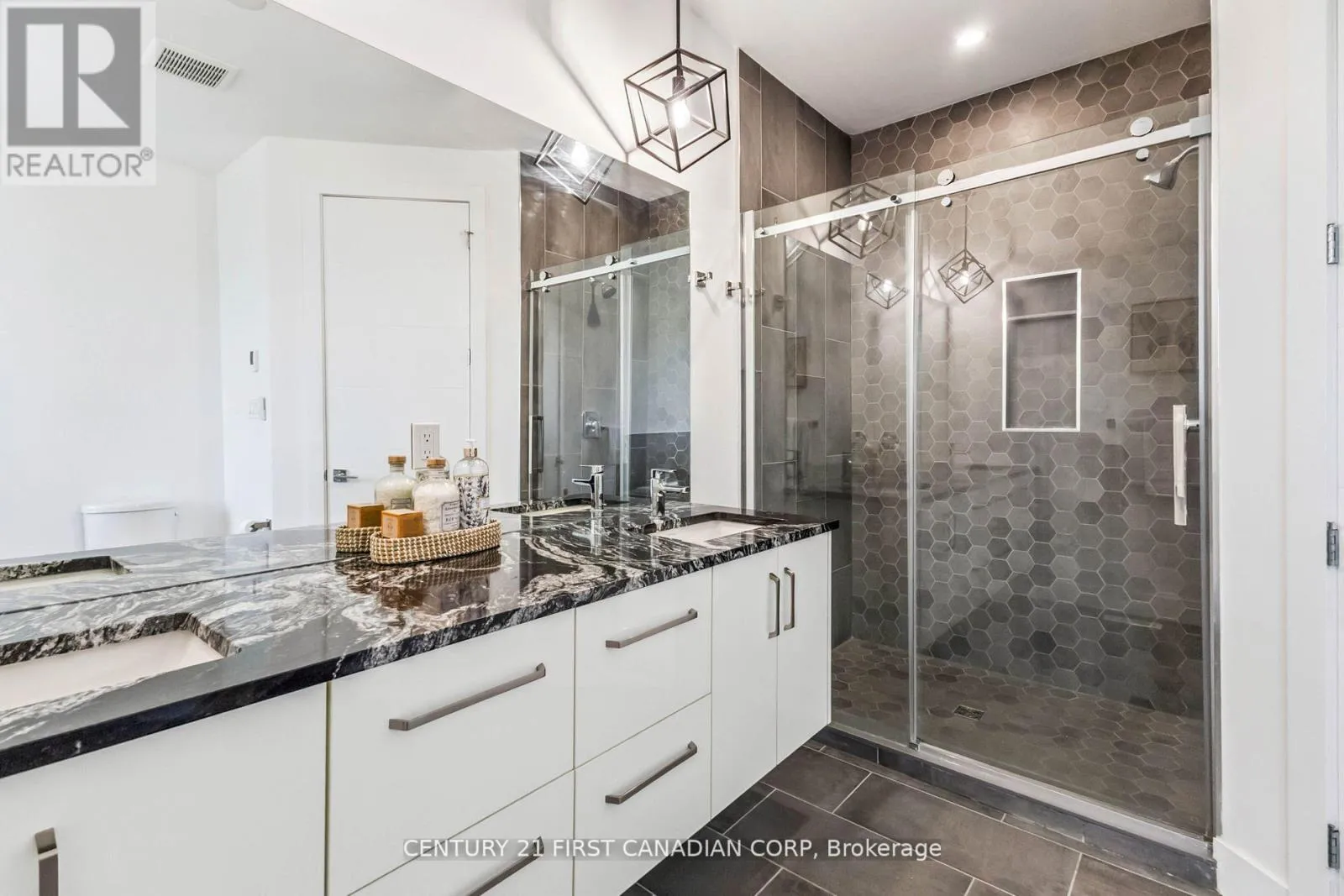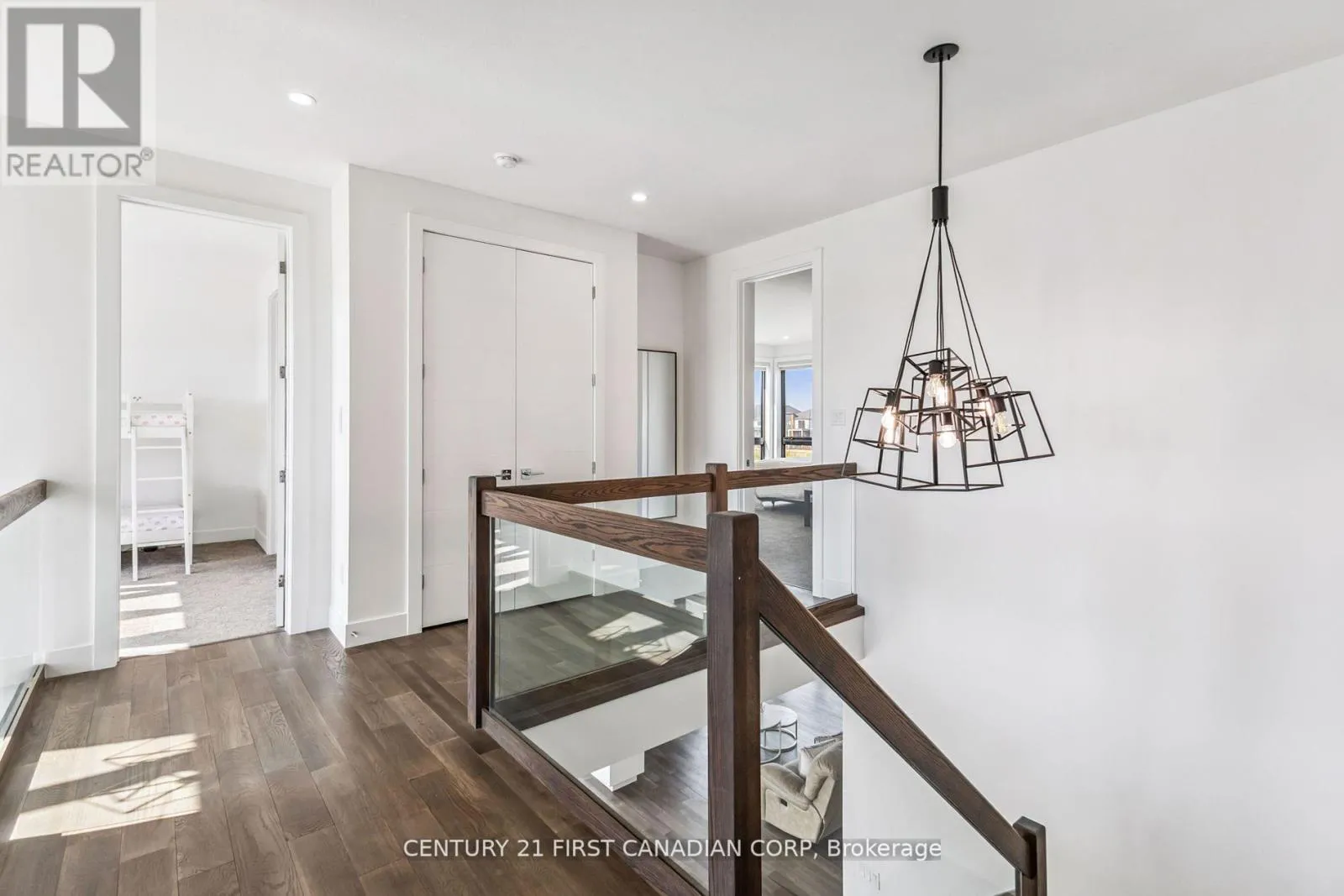 Cross Streets: MEDWAY PARK Drive. ** Directions: Start on Fanshawe Park Rd W.Turn north onto Wonderland Rd N.Drive approx. 1.2 km, then turn right onto Medway Park Dr. Continue down Medway Park Dr 1429 will be on your left-hand side. Welcome to 1429 Medway Park Drive a rare opportunity to own a custom-built luxury residence in the highly sought-after Creekview community of Northwest London. Situated on a premium pie-shaped walkout lot, this home offers unobstructed pond and serene ravine views, with no neighbouring house on one side, providing both privacy and scenic beauty. This designer home boasts approximately 3,800 sq ft of exquisite living space, finished with many upgrades that blend elegance and functionality. As you enter the grand 18-foot foyer, you are greeted by refined details like smart blinds throughout, LED stair lighting, and a statement 80-inch Dimplex steam fireplace in the open-concept living room. The heart of the home is the gourmet kitchen, featuring ceiling-height modern cabinetry, granite countertops, under-cabinet lighting, a stylish backsplash, and an oversized pantry all opening onto a spacious living area with rich engineered hardwood floors and floor-to-ceiling windows overlooking the picturesque pond. From here, step out onto the wraparound deck with glass railings a perfect outdoor sanctuary for morning coffee or sunset entertaining. Upstairs, you will find four spacious bedrooms, including a luxurious primary retreat with breathtaking pond views, custom built-ins in the walk-in closet, and a spa-inspired ensuite with in-floor heating, a double vanity, tiled shower, and soaking tub. A junior suite with private ensuite, additional full bath, and a sunny home office/lounge with balcony access complete the upper level.The fully finished walkout basement extends the homes versatility, offering a fifth bedroom, large recreation space, cold bar, full bath, oversized cold room, and private access for potential in-law or income suite flexibility. This home is ideally located close to Western University, University Hospital, shopping, and top-rated schools, making it the perfect blend of luxury, lifestyle, and location. (id:27476)