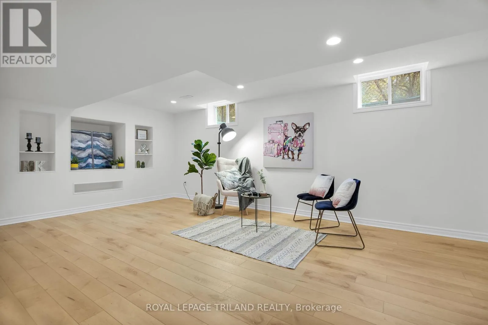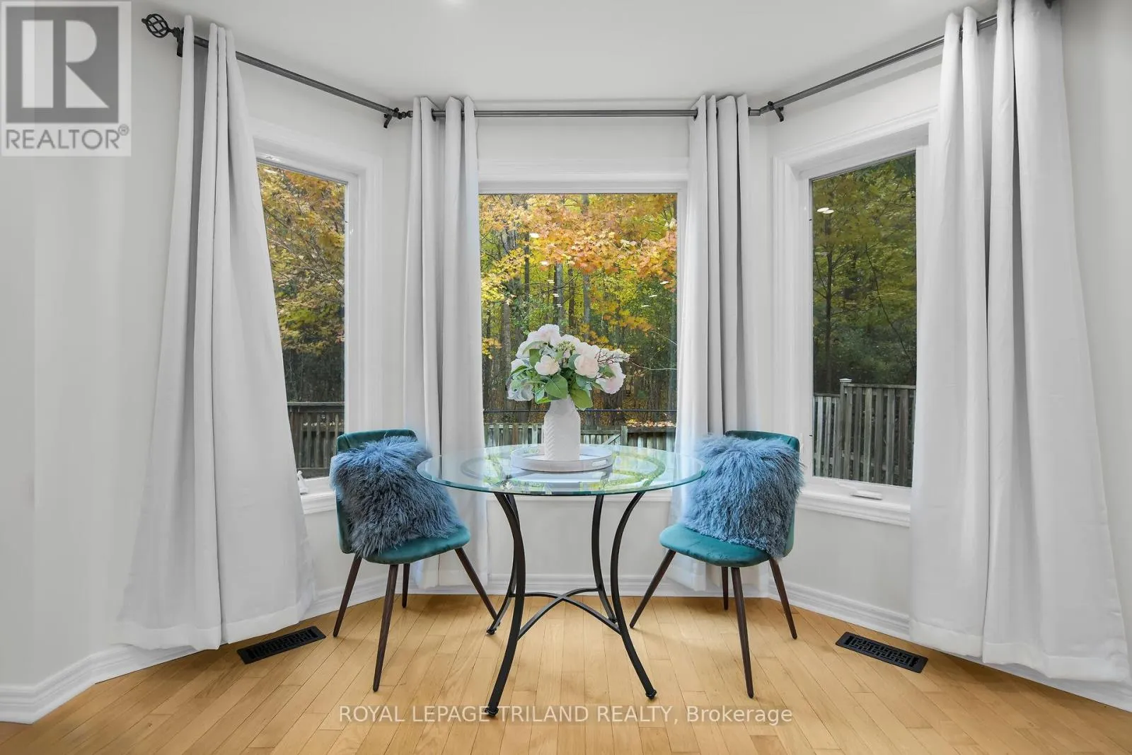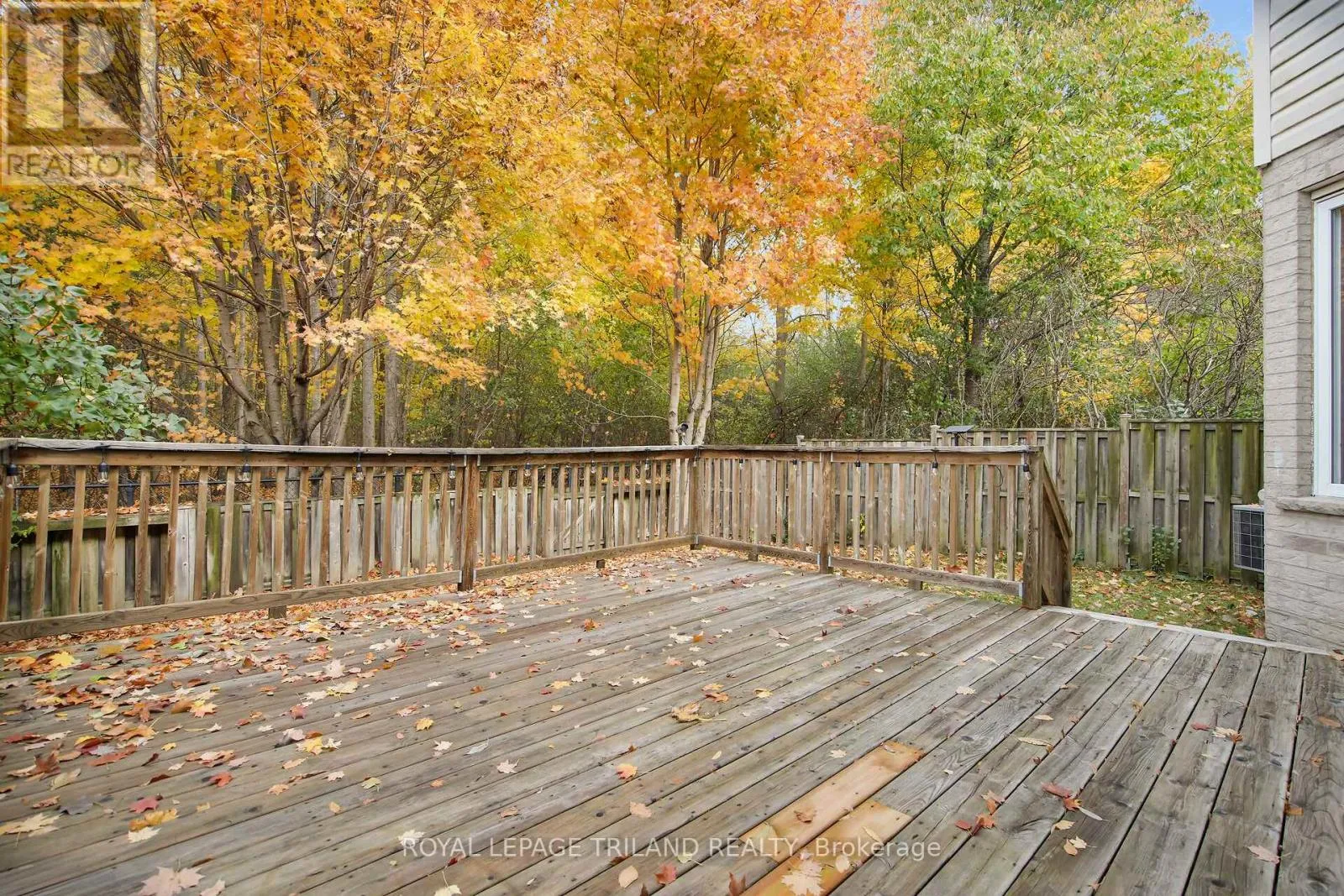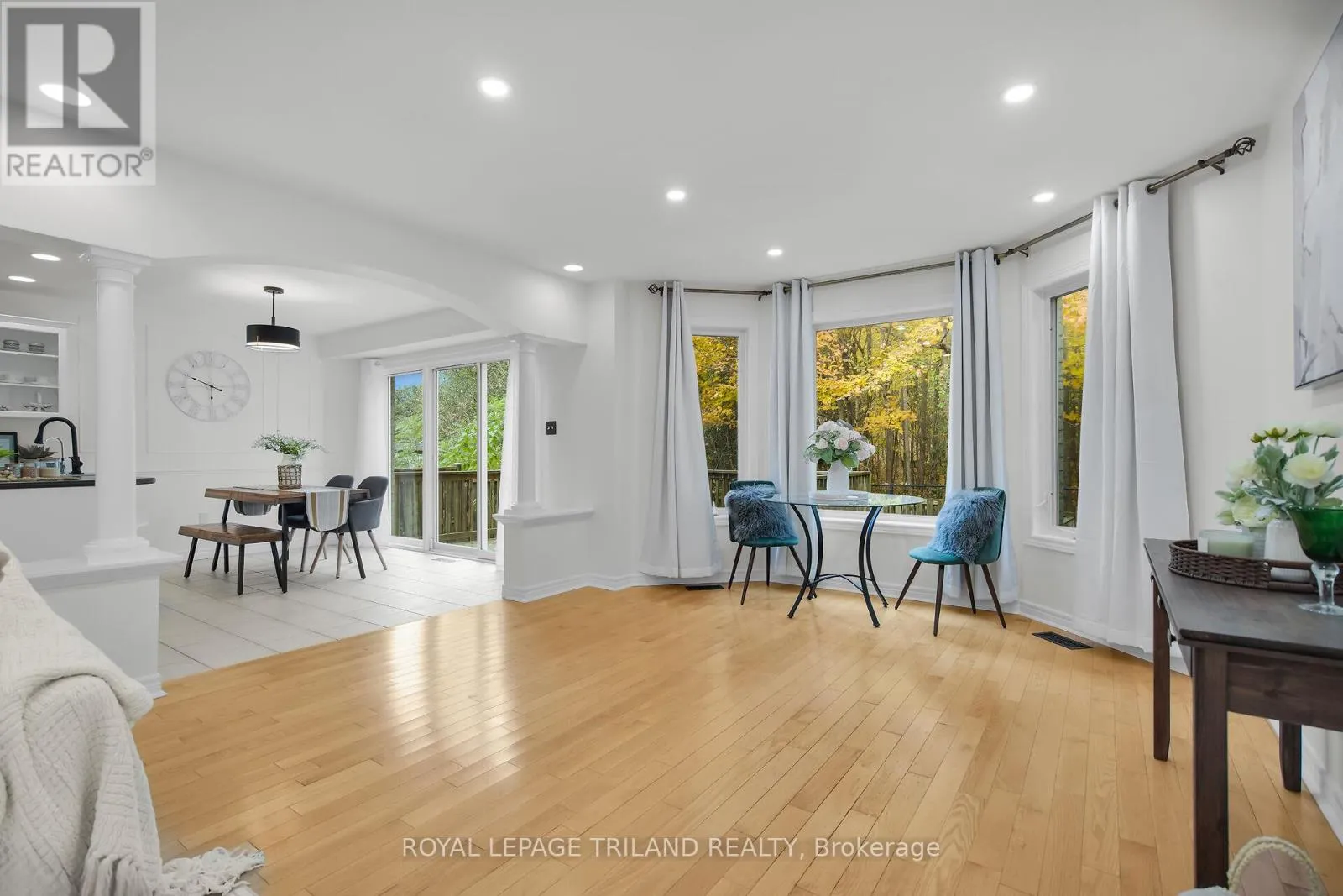 Cross Streets: Wonderland Road. ** Directions: From Wonderland southbound, turn right. Beautiful 2 storey home features 4 spacious bedrooms, 4 bathrooms. The backyard backs onto a lush forest, offering not only great privacy but also stunning views year-round. You can enjoy the beauty of all four seasons right from your home. Perfectly situated in one of the most vibrant and convenient areas, yet surrounded by nature, this property offers the best of both worlds. Fabulous kitchen and open concept layout with large windows offer wonderful forest views from patio doors in the dining area, bay window in the living room and principal rooms. Bright main floor den features hardwood & French doors. Laundry room in conveniently located on 2nd floor. The rooms are generously sized and thoughtfully designed, providing exceptional comfort and space for the whole family. Main floor hardwood and ceramics. Finished lower great room with convenient 2 pc bathroom provides a spacious extra living space and versatile area that can be used for a variety of purposes. It's large enough to set up a table tennis or a pool table, making it a perfect space for entertaining. The basement also features kitchen cabinets and a refrigerator, allowing it to function as a convenient kitchenette. Roof was replaced in 2016. Appliance replaced in 2021-2022, Furnace and AC (Lennox) replaced in 202. Update : New painting throughout the whole house and Garage, Garage door, new refrigerator, faucets & pop up drains, toilets, light fixtures, door handles, shower set (2nd bathroom),bathroom sink bowls, Sump pump back up battery system. This home is perfect for those longing for a taste of nature within the city. Convenient location close to Western University, University Hospital, Costco, Restaurants, Pharmacy, banks, Aquatic Centre, and other amenities. Public transportation to University campus and University hospital. (id:27476)