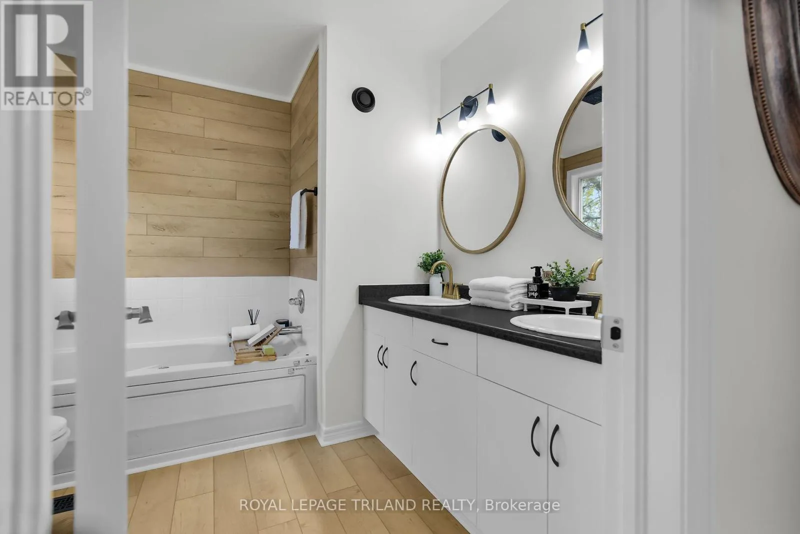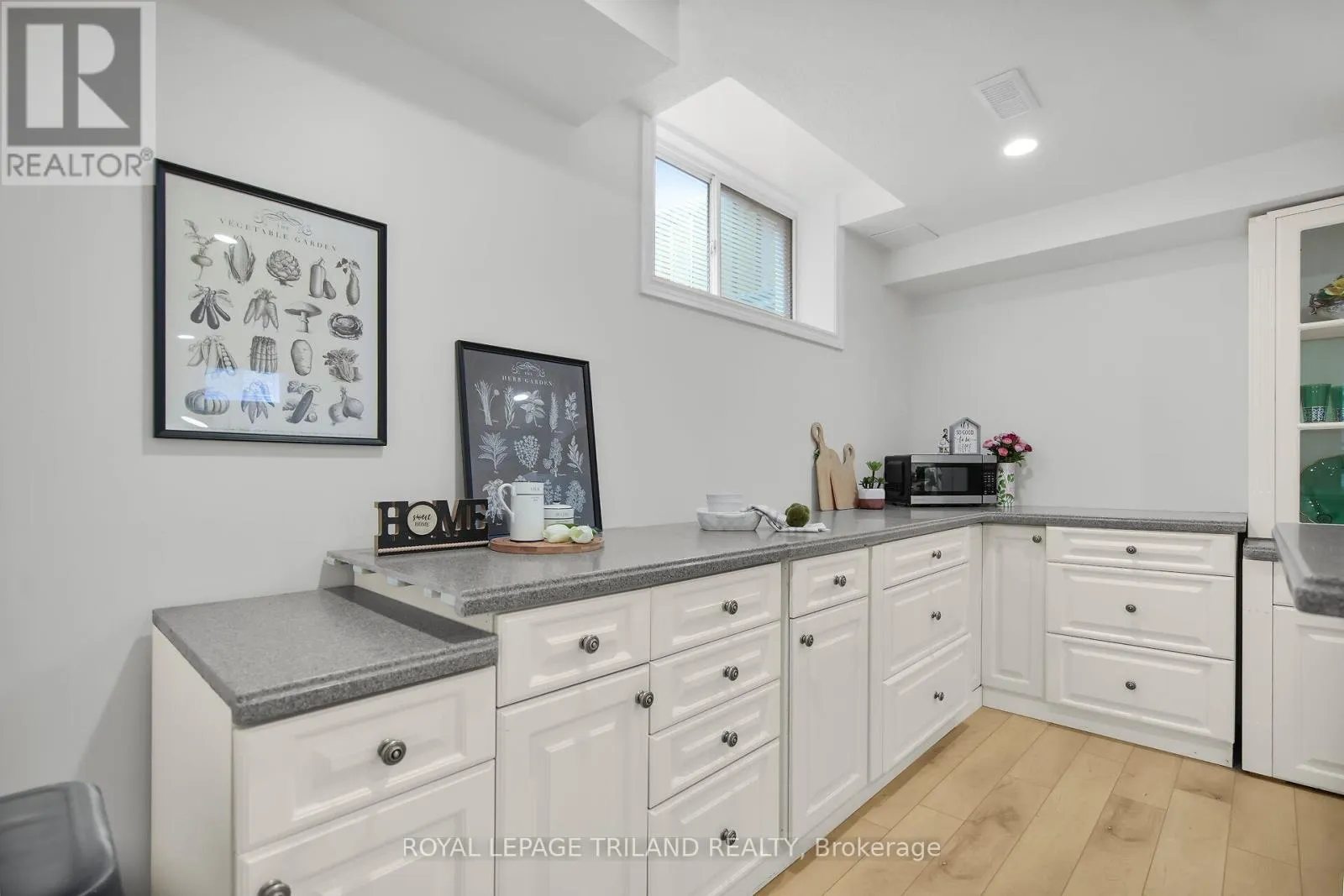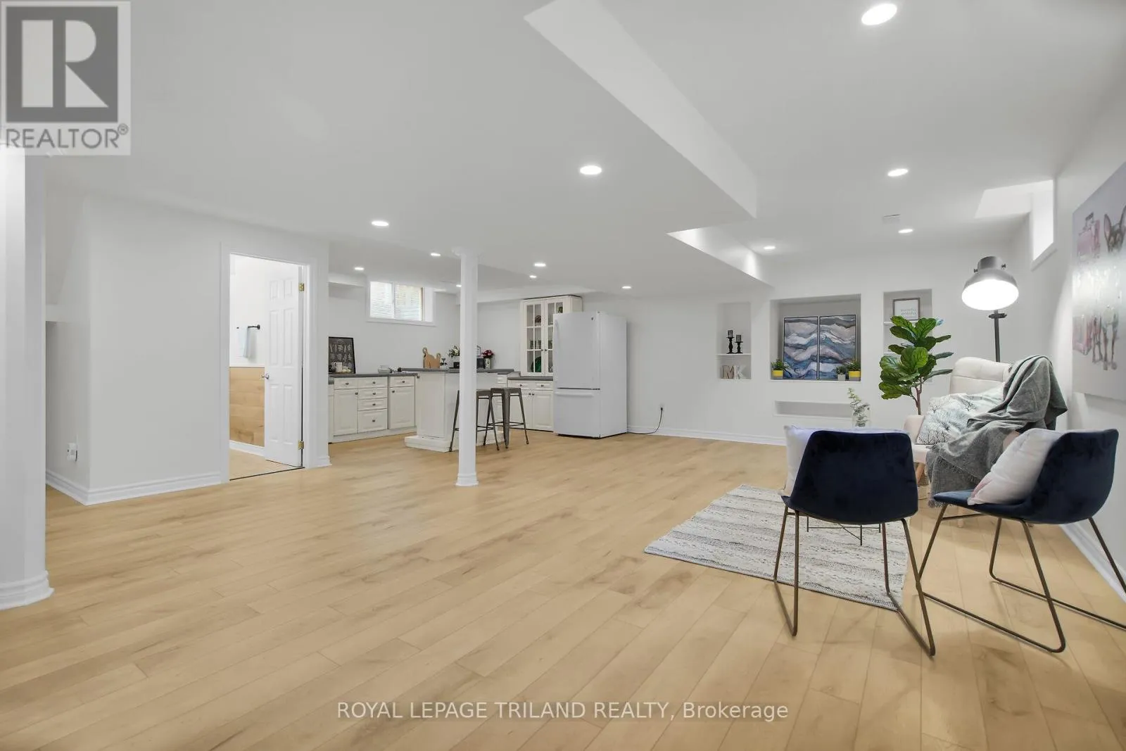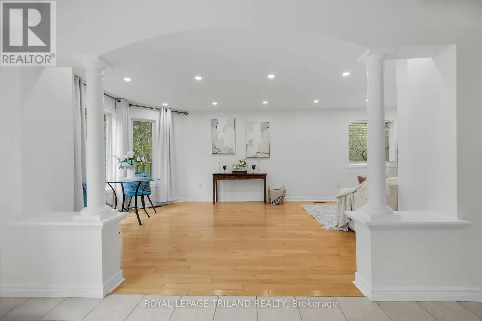 Cross Streets: Wonderland Road. ** Directions: From Wonderland southbound, turn right. Beautiful 2 storey home features 4 spacious bedrooms, 4 bathrooms. The backyard backs onto a lush forest, offering not only great privacy but also stunning views year-round. You can enjoy the beauty of all four seasons right from your home. Perfectly situated in one of the most vibrant and convenient areas, yet surrounded by nature, this property offers the best of both worlds. Fabulous kitchen and open concept layout with large windows offer wonderful forest views from patio doors in the dining area, bay window in the living room and principal rooms. Bright main floor den features hardwood & French doors. Laundry room in conveniently located on 2nd floor. The rooms are generously sized and thoughtfully designed, providing exceptional comfort and space for the whole family. Main floor hardwood and ceramics. Finished lower great room with convenient 2 pc bathroom provides a spacious extra living space and versatile area that can be used for a variety of purposes. It's large enough to set up a table tennis or a pool table, making it a perfect space for entertaining. The basement also features kitchen cabinets and a refrigerator, allowing it to function as a convenient kitchenette. Roof was replaced in 2016. Appliance replaced in 2021-2022, Furnace and AC (Lennox) replaced in 202. Update : New painting throughout the whole house and Garage, Garage door, new refrigerator, faucets & pop up drains, toilets, light fixtures, door handles, shower set (2nd bathroom),bathroom sink bowls, Sump pump back up battery system. This home is perfect for those longing for a taste of nature within the city. Convenient location close to Western University, University Hospital, Costco, Restaurants, Pharmacy, banks, Aquatic Centre, and other amenities. Public transportation to University campus and University hospital. (id:27476)