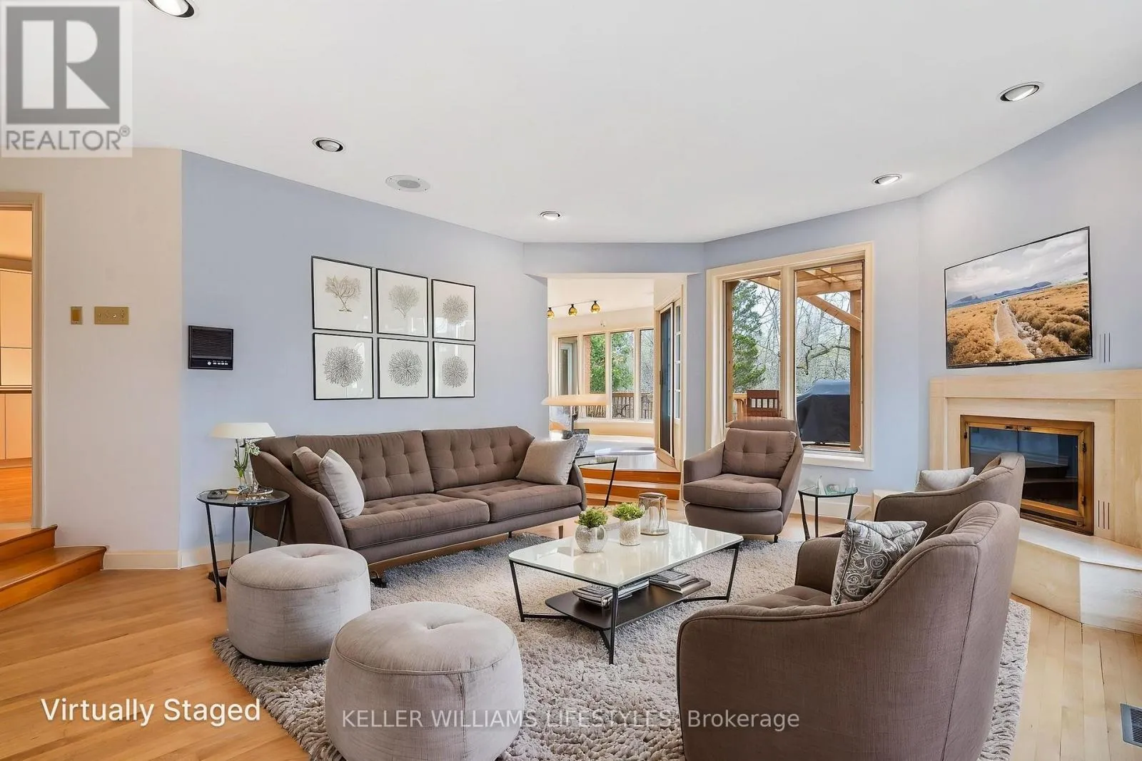 Cross Streets: Adelaide St. & Fanshawe Park Rd. ** Directions: From Fanshawe Pk Rd: South on Adelaide, Right on Willowdale Ave, Left on Sprucedale Ave. House is on left. From Adelaide St: West on Willowdale Ave, Left on Sprucedale Ave. House is on left. Step into refined living at 1330 Sprucedale Avenue, an architect-designed executive home in North London's prestigious Stoney Creek Meadows. Backing onto a peaceful forest and surrounded by natural beauty, this impressive 4,824 sq. ft. residence (above grade) offers a rare blend of grand scale, sophisticated finishes, and room to grow.The moment you enter, you're greeted by a striking brass-and-glass staircase that sets the tone for what's to come. The main floor features oversized principal rooms, a dedicated home office, and a designer kitchen and bar by Bielmann Kitchens, complete with statement gold accent tiles, rich cabinetry, and a seamless flow into a breakfast room and sunroom that overlook the trees. Three fireplaces create warmth and character throughout.Upstairs, the expansive primary retreat boasts tranquil views of the woods, a spa-worthy 6-piece ensuite, and walk-in closets. Each additional bedroom offers comfort and functionality, with two featuring ensuite or semi-ensuite access.But the real magic happens downstairs. Entertain like never before in a full party lounge complete with hardwood flooring, a stage, mirrored wall, disco lighting, fireplace, and a dedicated dance floor. Theres also a cedar sauna with shower, a private billiards/pool room, guest suite, and bath, ideal for hosting, relaxing, or multi-generational living.The backyard delivers peaceful privacy with a raised deck, patio, and uninterrupted forest views. Minutes to top schools, parks, shopping, and nature trails, this home offers flexible possession and unforgettable first impressions. (id:27476)