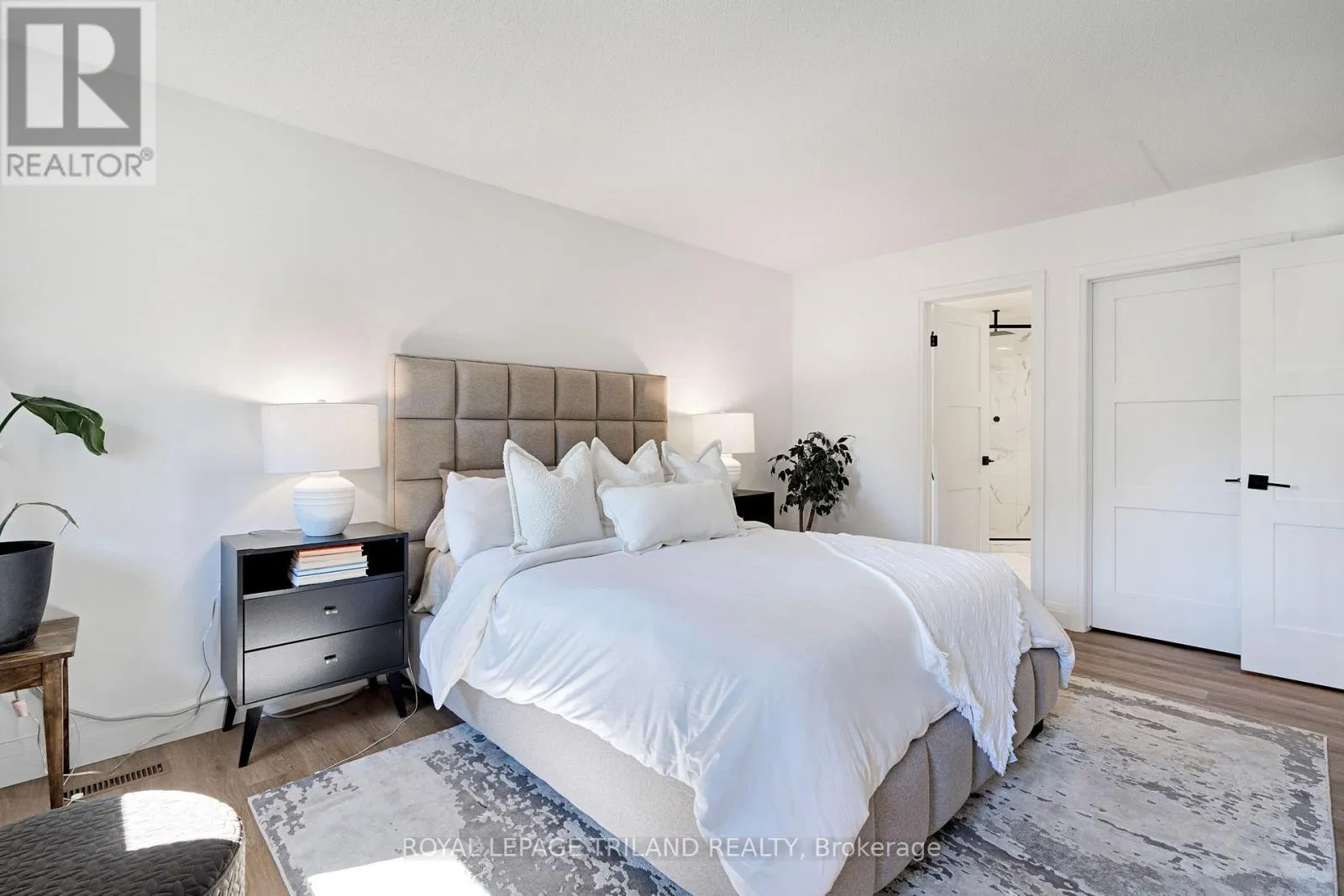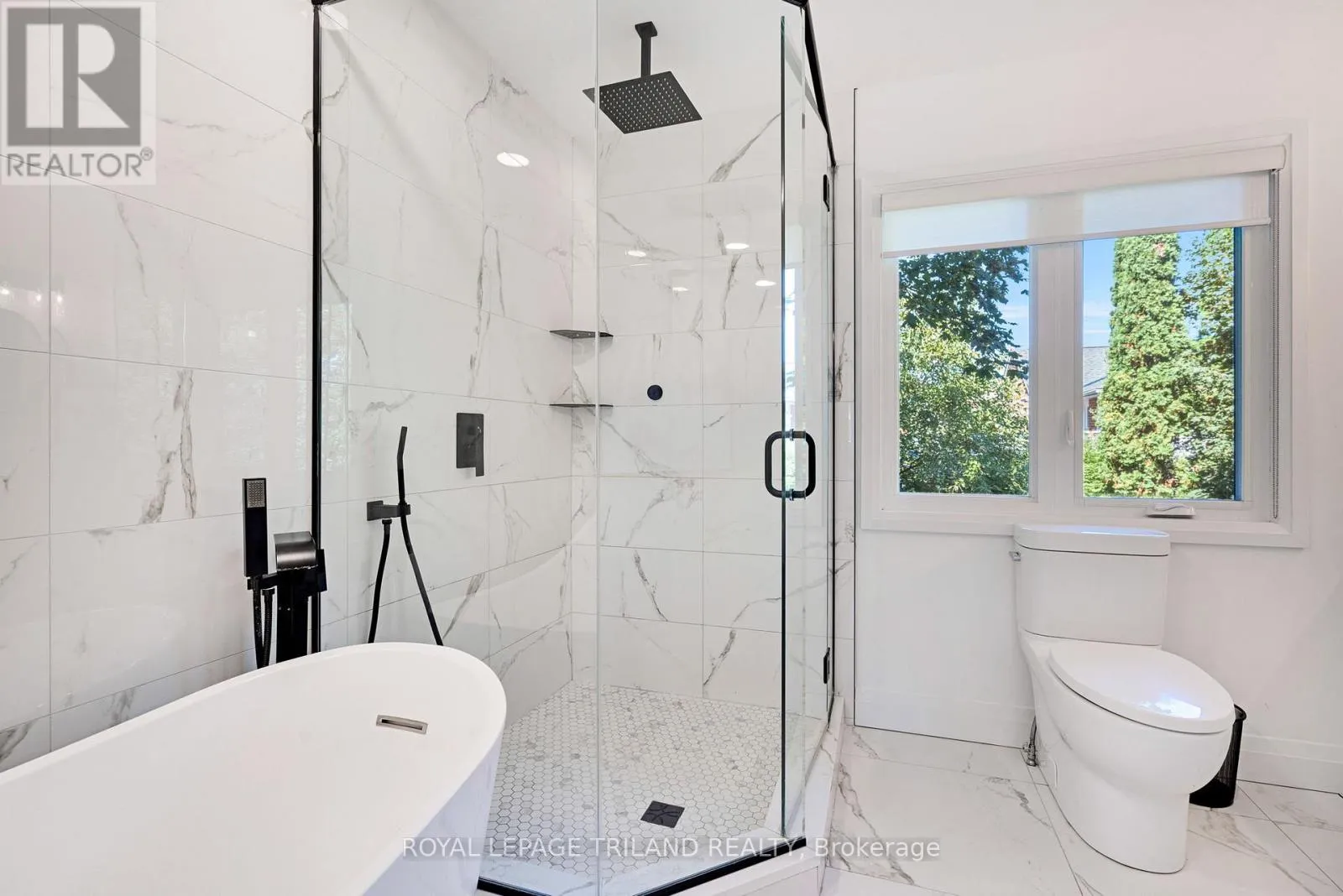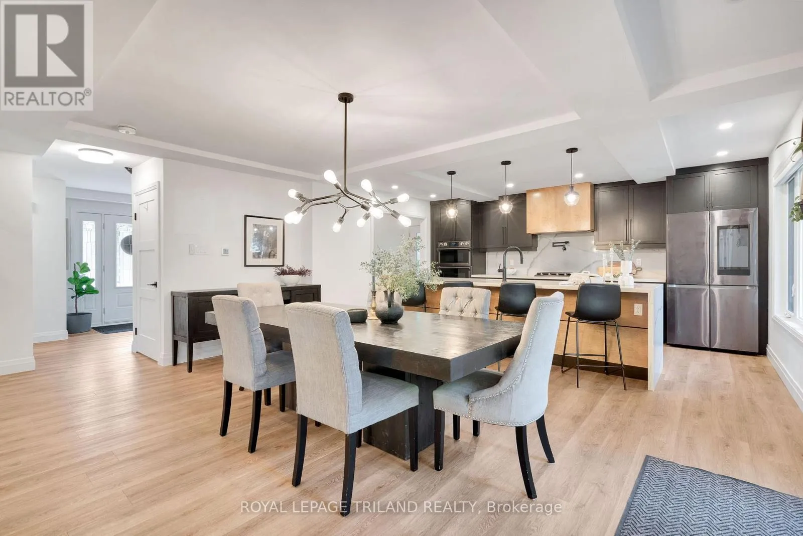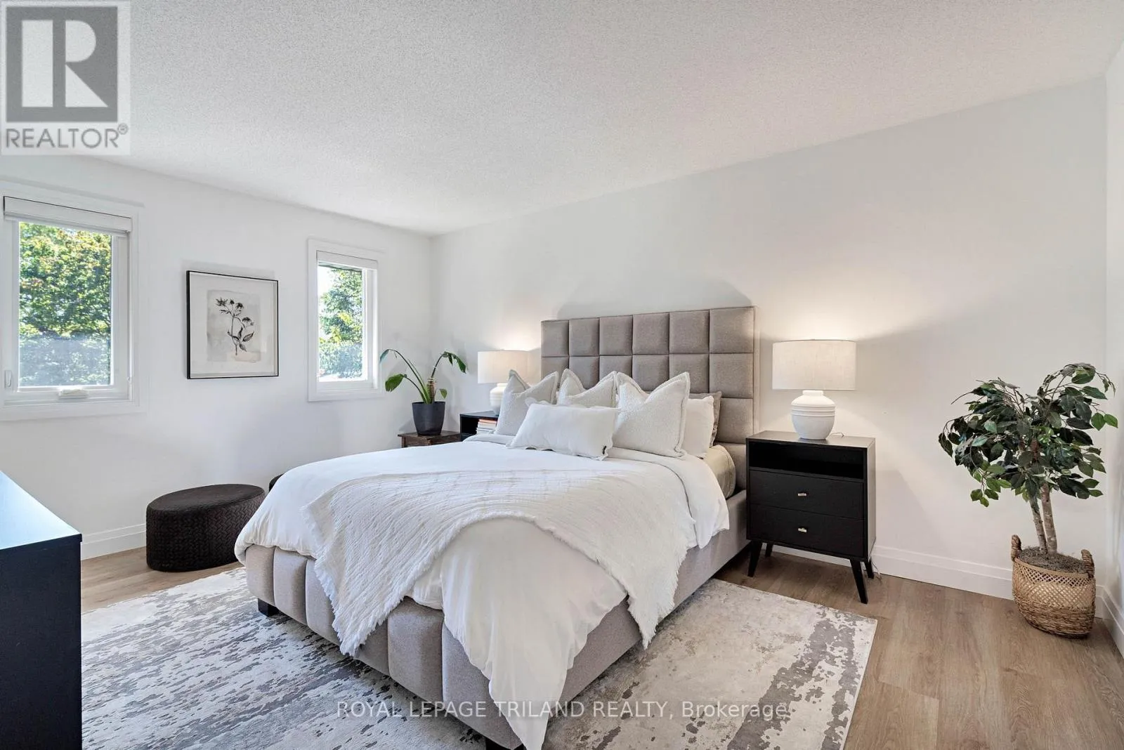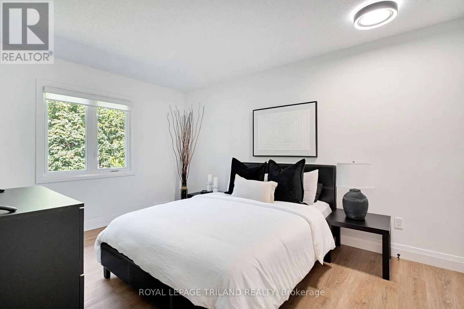 Cross Streets: Hastings Drive. ** Directions: Fanshawe Park Road East, North onto Hastings Drive, West onto Wendy Crescent. Welcome to 22 Wendy Crescent, a truly one-of-a-kind home located on a mature, quiet street in one of London's most coveted family neighbourhoods. This stunning 4-bedroom, 4-bathroom two-story home has been extensively renovated from top to bottom, including a spacious 800 sq. ft. addition that expands the homes already generous floor plan. The interior has been thoughtfully remodeled, with a redesigned main floor that's both bright and modern. At the heart of the home is a show-stopping kitchen, complete with an oversized island and sleek, contemporary finishes. The main level also includes a dedicated home office, offering a quiet and productive space for remote work or study. Upstairs, the primary bedroom features a large walk-in closet and a beautifully appointed en-suite bathroom. The fully finished basement adds even more living space, offering brand-new carpet, a potential 5th bedroom, a 3-piece washroom, a wet bar, and a built-in sauna - perfect for entertaining, hosting guests, or enjoying a private retreat. Significant exterior upgrades have also been completed, including updated windows, garage doors, and a concrete patio in the backyard - ideal for outdoor dining or relaxing in your own outdoor space. Located within walking distance to top-rated schools, nearby parks, and scenic walking trails and just minutes from Masonville Mall and all north-end amenities - this home combines modern luxury with the charm of a well-established, family-friendly neighbourhood. ** This is a linked property.** (id:27476)