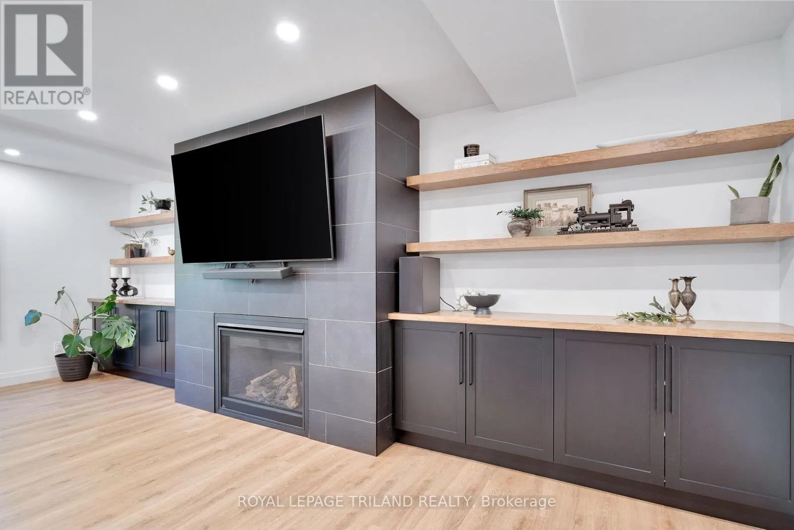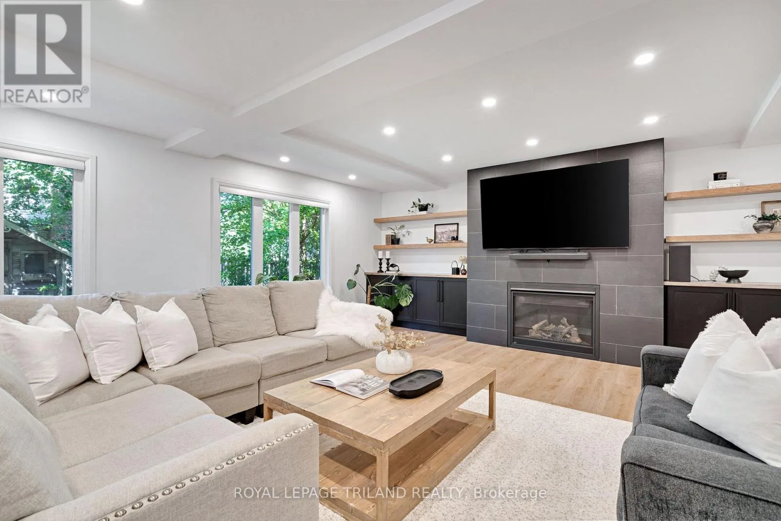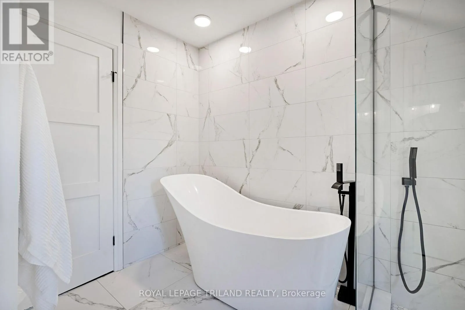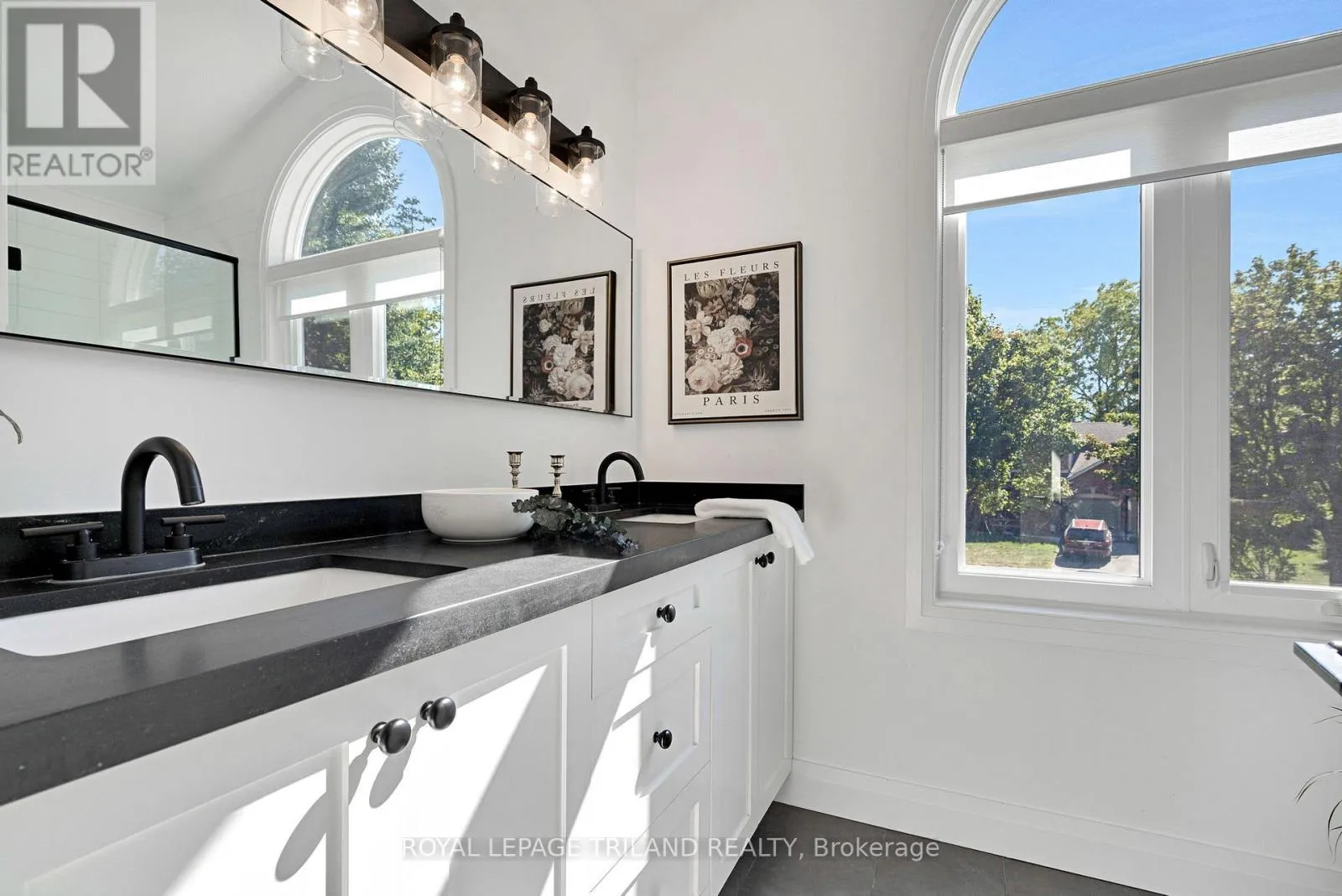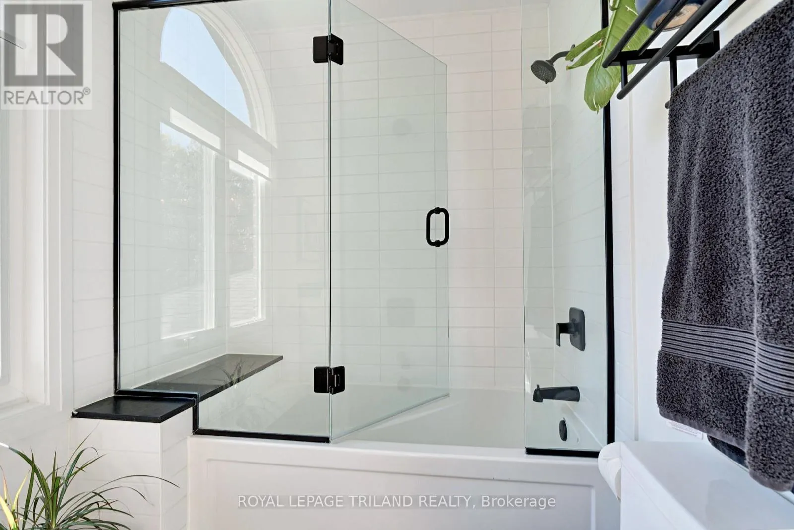 Cross Streets: Hastings Drive. ** Directions: Fanshawe Park Road East, North onto Hastings Drive, West onto Wendy Crescent. Welcome to 22 Wendy Crescent, a truly one-of-a-kind home located on a mature, quiet street in one of London's most coveted family neighbourhoods. This stunning 4-bedroom, 4-bathroom two-story home has been extensively renovated from top to bottom, including a spacious 800 sq. ft. addition that expands the homes already generous floor plan. The interior has been thoughtfully remodeled, with a redesigned main floor that's both bright and modern. At the heart of the home is a show-stopping kitchen, complete with an oversized island and sleek, contemporary finishes. The main level also includes a dedicated home office, offering a quiet and productive space for remote work or study. Upstairs, the primary bedroom features a large walk-in closet and a beautifully appointed en-suite bathroom. The fully finished basement adds even more living space, offering brand-new carpet, a potential 5th bedroom, a 3-piece washroom, a wet bar, and a built-in sauna - perfect for entertaining, hosting guests, or enjoying a private retreat. Significant exterior upgrades have also been completed, including updated windows, garage doors, and a concrete patio in the backyard - ideal for outdoor dining or relaxing in your own outdoor space. Located within walking distance to top-rated schools, nearby parks, and scenic walking trails and just minutes from Masonville Mall and all north-end amenities - this home combines modern luxury with the charm of a well-established, family-friendly neighbourhood. ** This is a linked property.** (id:27476)