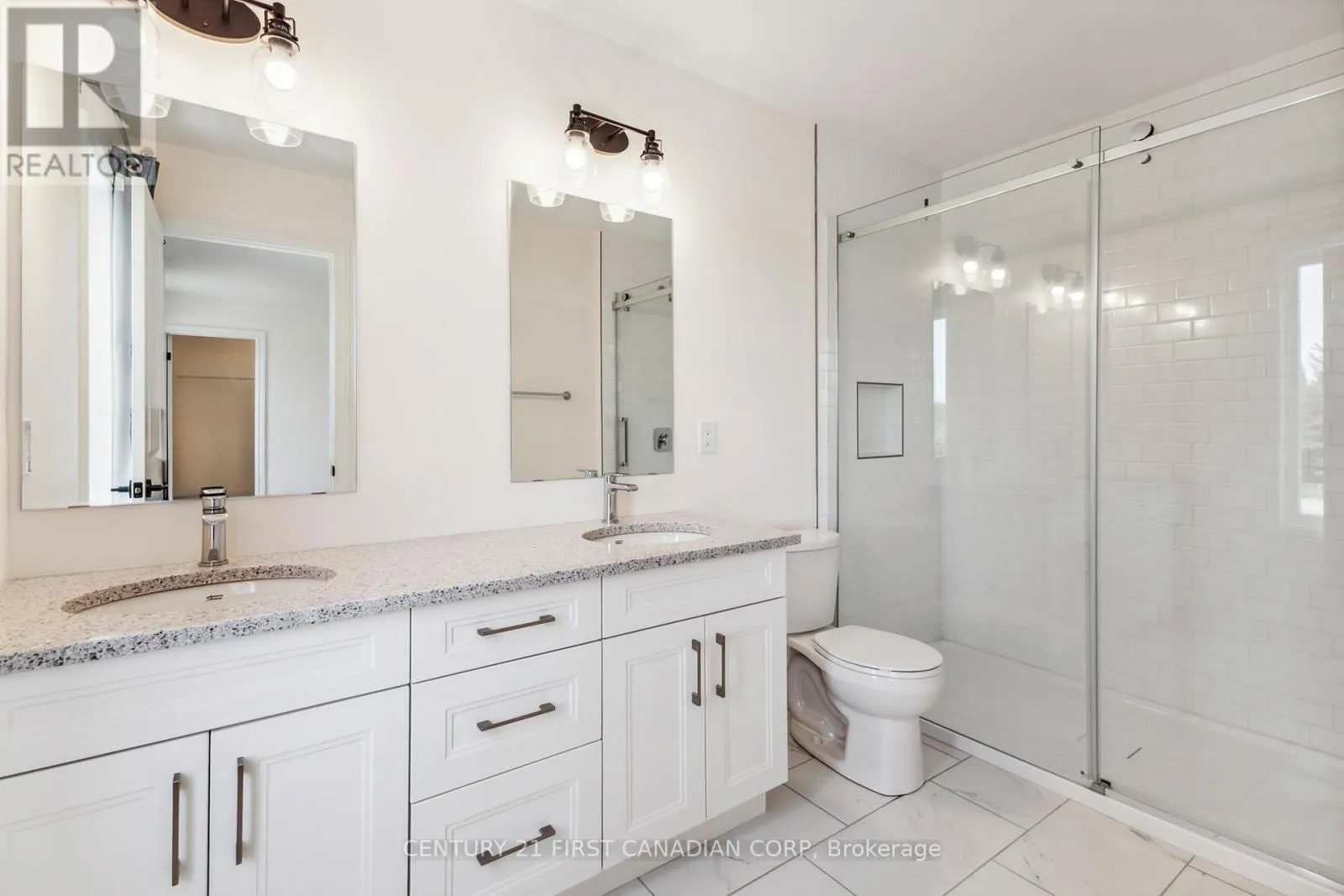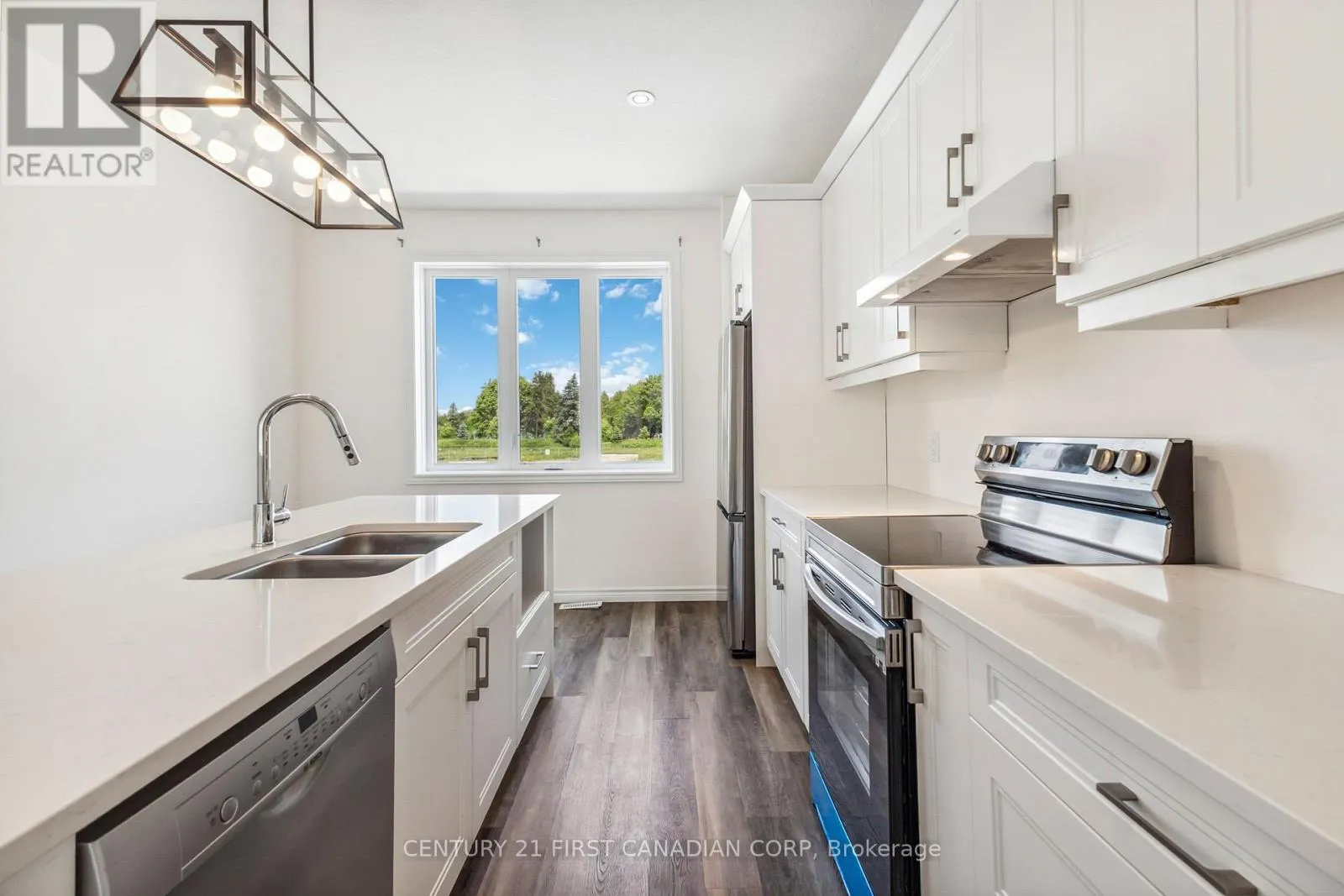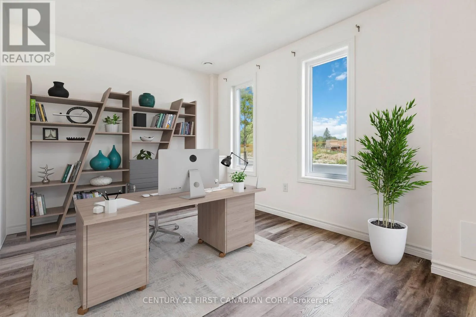 Cross Streets: Sunningdale and Richmond. ** Directions: North on Richmond, left on Sunningdale, right on Meadowlands, left on Callaway. Corner unit 2103 sqft Brindelle model. This French-Inspired Townhome in Sought-After Sunningdale - Montage. Discover this gorgeous, 3-storey townhome with a double car garage in North London's prestigious Sunningdale community. Perfectly located just minutes from parks, hospitals, Western University, shopping, and serene nature trails. This home combines convenience and charm. Key Features--Main Level: A finished entry-level space featuring direct access to the garage, bedroom/home office with a 2 piece bathroom(ensuite), ideal for a home office, gym, or guest space. Second Level: Spacious and bright open-concept kitchen and living area with plenty of natural light, perfect for entertaining and relaxing. Third Level: Includes 3 generous sized bedrooms and 2 full bathrooms, offering comfort and privacy for the entire family. This stunning home is designed to provide style, function, and an ideal location for modern living. Come and see this property today. (id:27476)