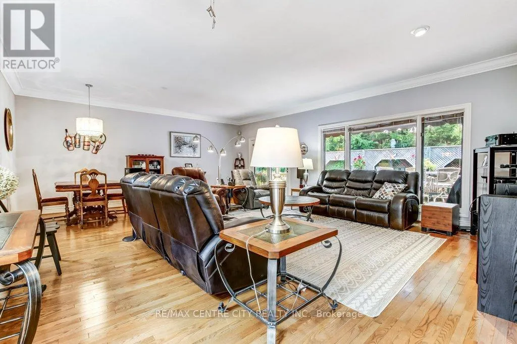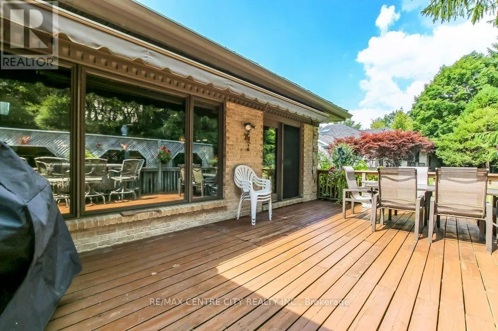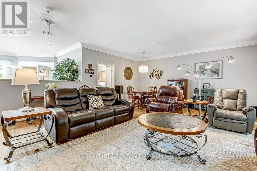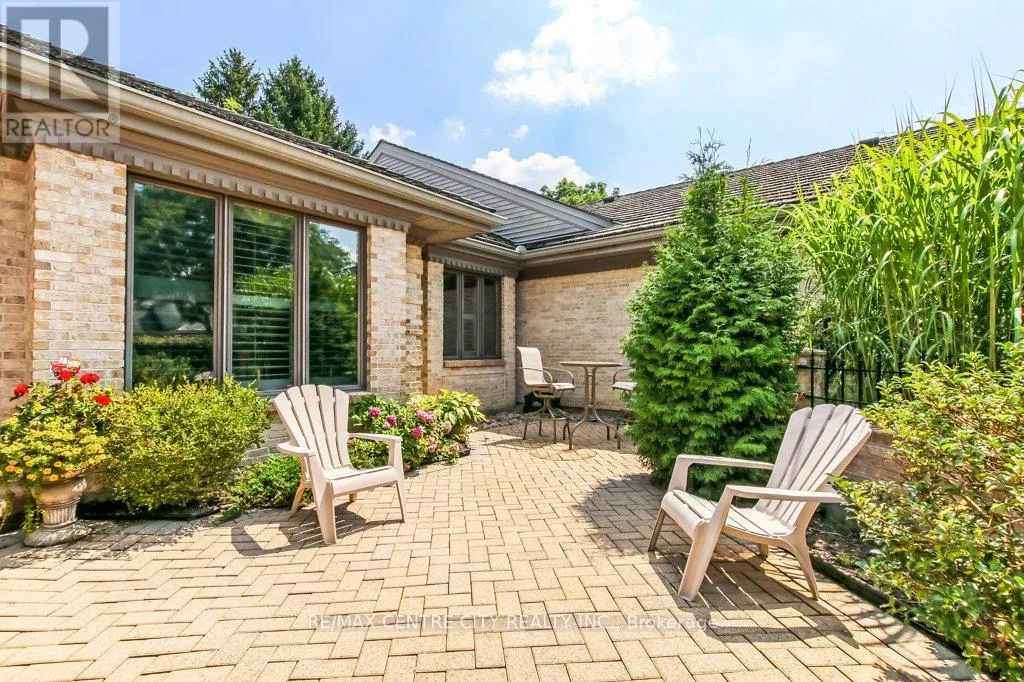 Cross Streets: RIVERSIDE. ** Directions: WONDERLAND TO RIVERSIDE DRIVE. Located in desirable Hazelden Ridge, one of the most sought after luxury condo communities in London. This is a Paul Skinner designed unit. This premium end unit backs onto manicured gardens. This property is one of the larger units in the complex. The 9ft ceilings give this unit ma much larger feeling. All rooms on the main level are hard surfaced hardwoods, tile and luxury vinyl for ease of movement. The formal front entry is open and bright with an inviting sky light and gleaming tile floor. The working kitchen has a cooktop in the island and wall oven is just off the dining room that is incorporated in the open concept great room that has a wall of windows that overlook the private patio with a retractable awning that shades this relaxing area that is ideal for cocktails or BBQ get togethers and great social gatherings. Adjacent to the great room is a family room with a gas fireplace. The primary suite is large enough for a king sized bed and accessories. A 5 piece ensuite with a walk-in shower, soaker tub and 2 sinks. There is also a good sized second bedroom. The huge lower level features a family room, games room, a third large bedrooms, and plenty of storage area. The central air unit is only months old. This is the ideal home to relax or for entertaining. (id:27476)