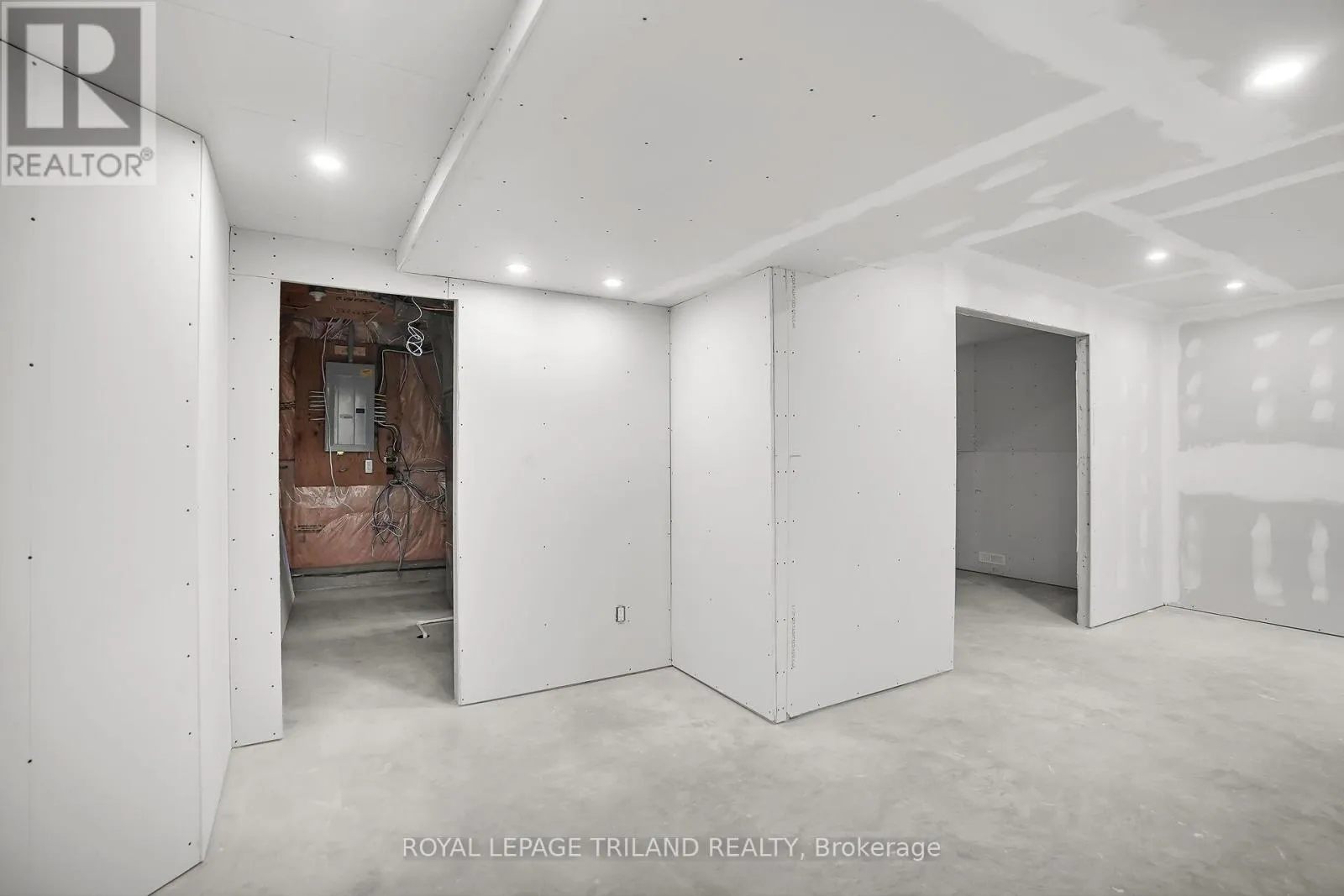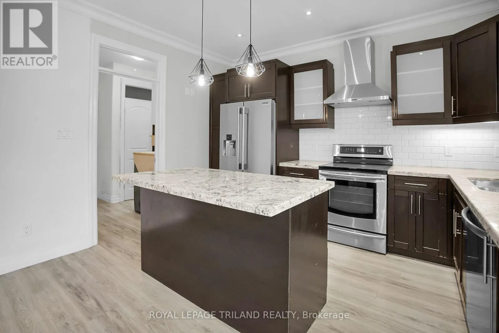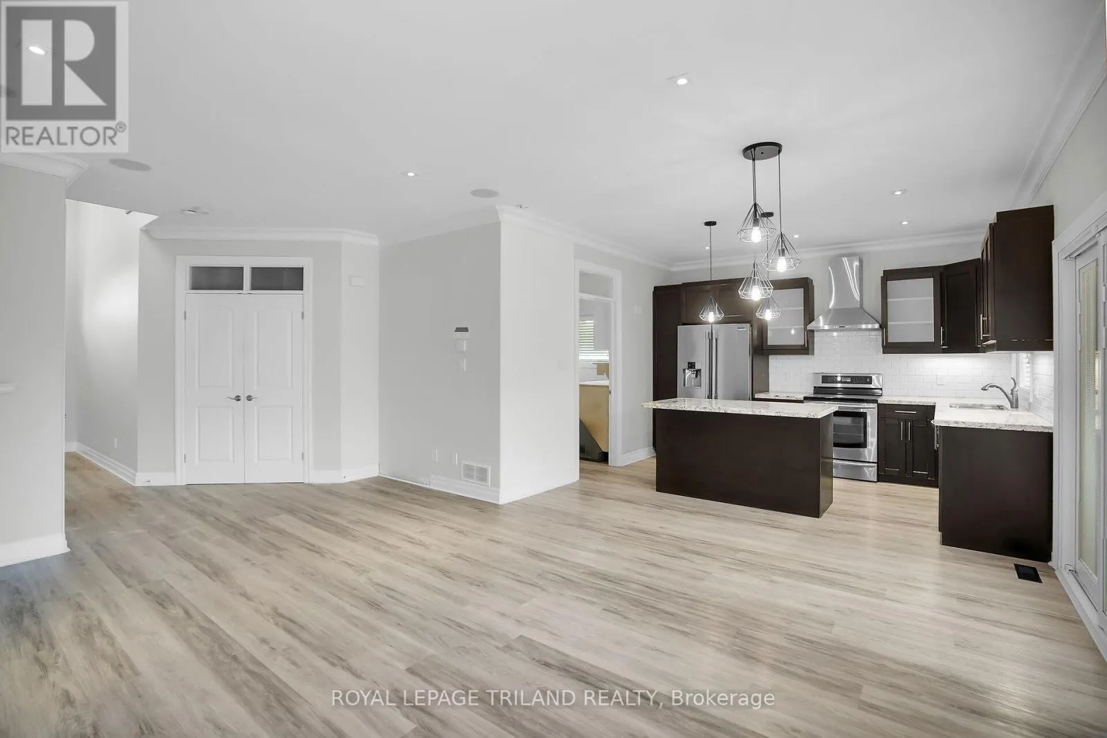 Cross Streets: SARNIA RD. ** Directions: SARNIA RD JUST EAST OF HYDE PARK RD. Welcome to this 2-storey home situated on a large reverse pie shaped lot in a desirable neighbourhood just a 10-minute drive to Western University and University Hospital. This property offers great curb appeal and convenience, with shopping nearby for everyday needs. Inside, you'll find an inviting open concept kitchen that flows seamlessly into the living room, where a cozy gas fireplace adds warmth and charm. Patio doors lead to a fully fenced backyard featuring a spacious 2 tiered deck, perfect for entertaining or relaxing outdoors. The primary bedroom includes a luxurious 5 piece ensuite bathroom, and the lower level has been drywalled and is ready for your personal finishing touches. A double car garage with inside entry adds extra comfort and functionality to this home. With some interior touch ups you can transform this home into a real gem, perfect for the handyman. (id:27476)