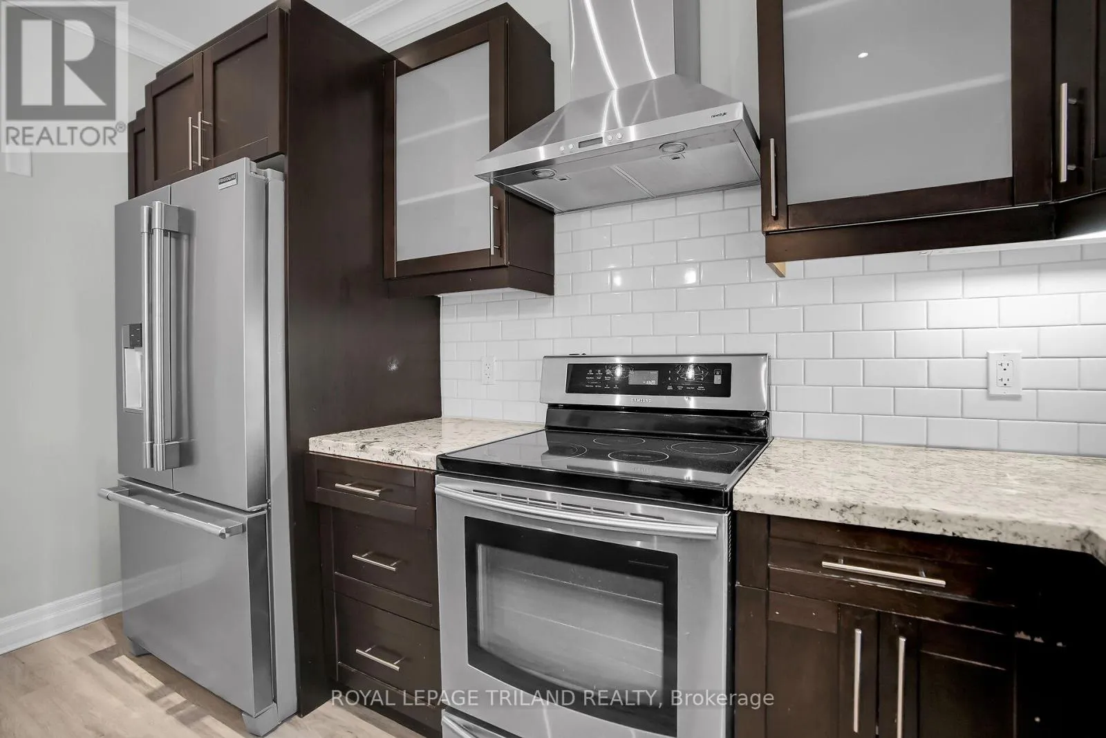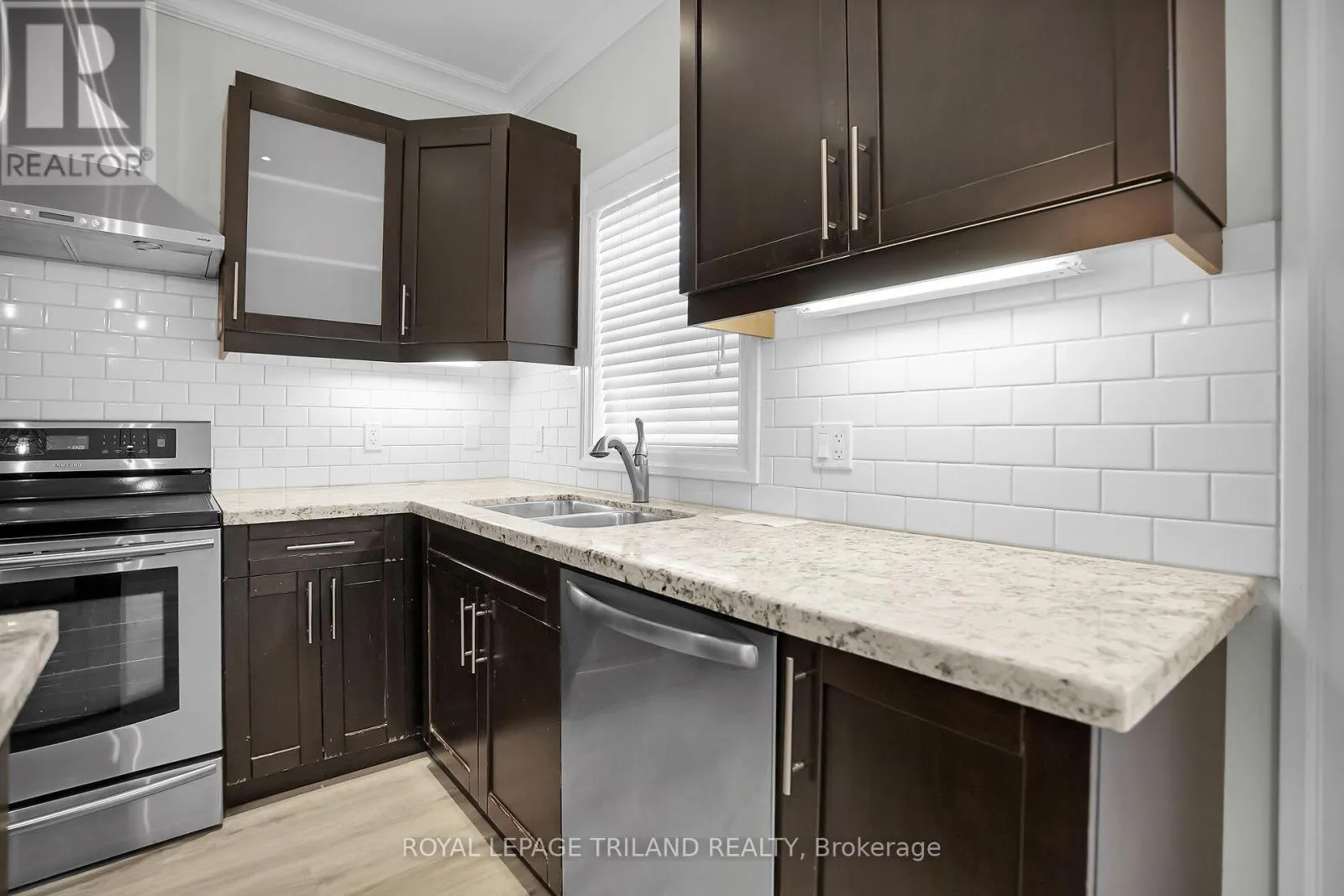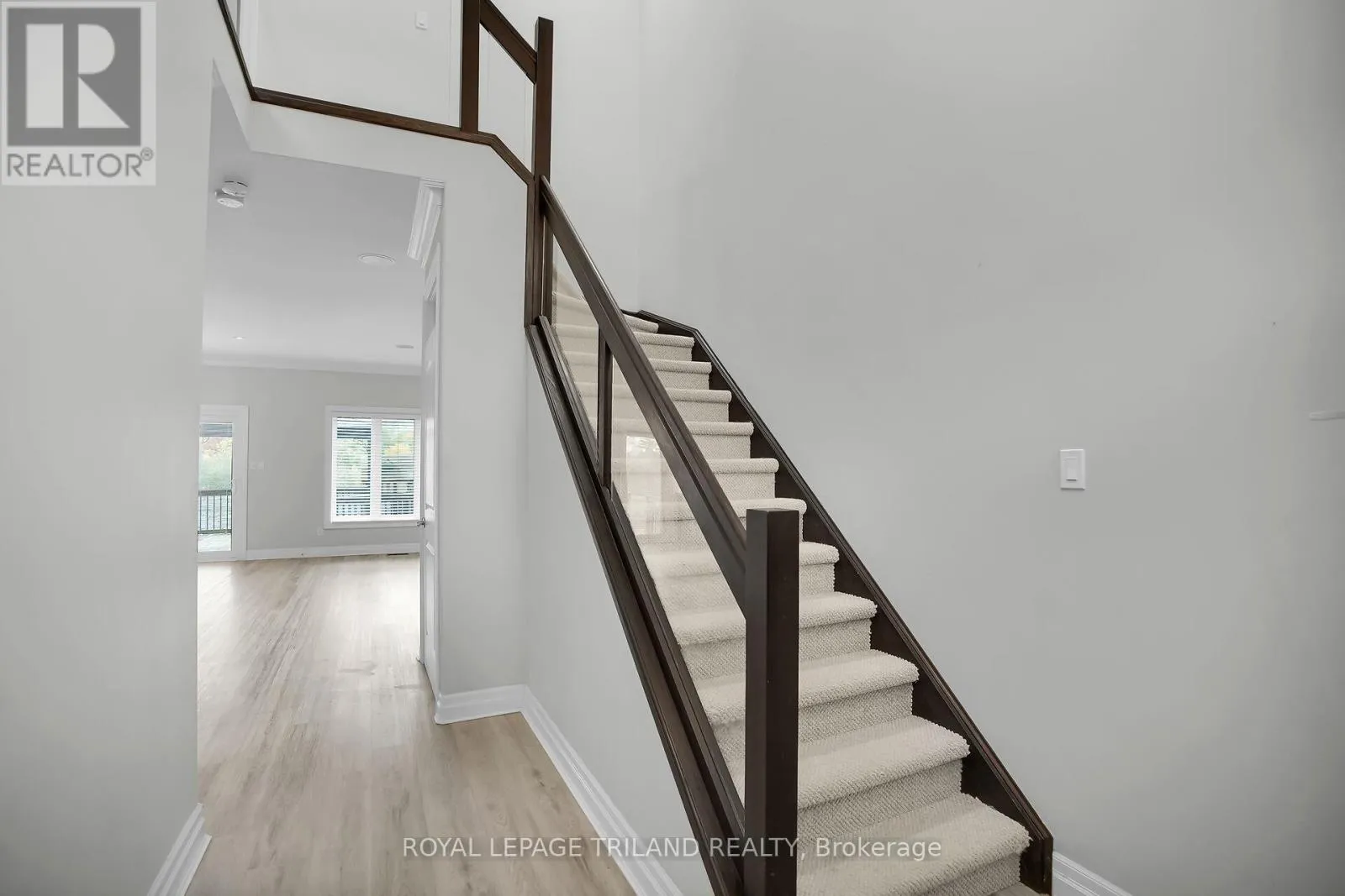 Cross Streets: SARNIA RD. ** Directions: SARNIA RD JUST EAST OF HYDE PARK RD. Welcome to this 2-storey home situated on a large reverse pie shaped lot in a desirable neighbourhood just a 10-minute drive to Western University and University Hospital. This property offers great curb appeal and convenience, with shopping nearby for everyday needs. Inside, you'll find an inviting open concept kitchen that flows seamlessly into the living room, where a cozy gas fireplace adds warmth and charm. Patio doors lead to a fully fenced backyard featuring a spacious 2 tiered deck, perfect for entertaining or relaxing outdoors. The primary bedroom includes a luxurious 5 piece ensuite bathroom, and the lower level has been drywalled and is ready for your personal finishing touches. A double car garage with inside entry adds extra comfort and functionality to this home. With some interior touch ups you can transform this home into a real gem, perfect for the handyman. (id:27476)