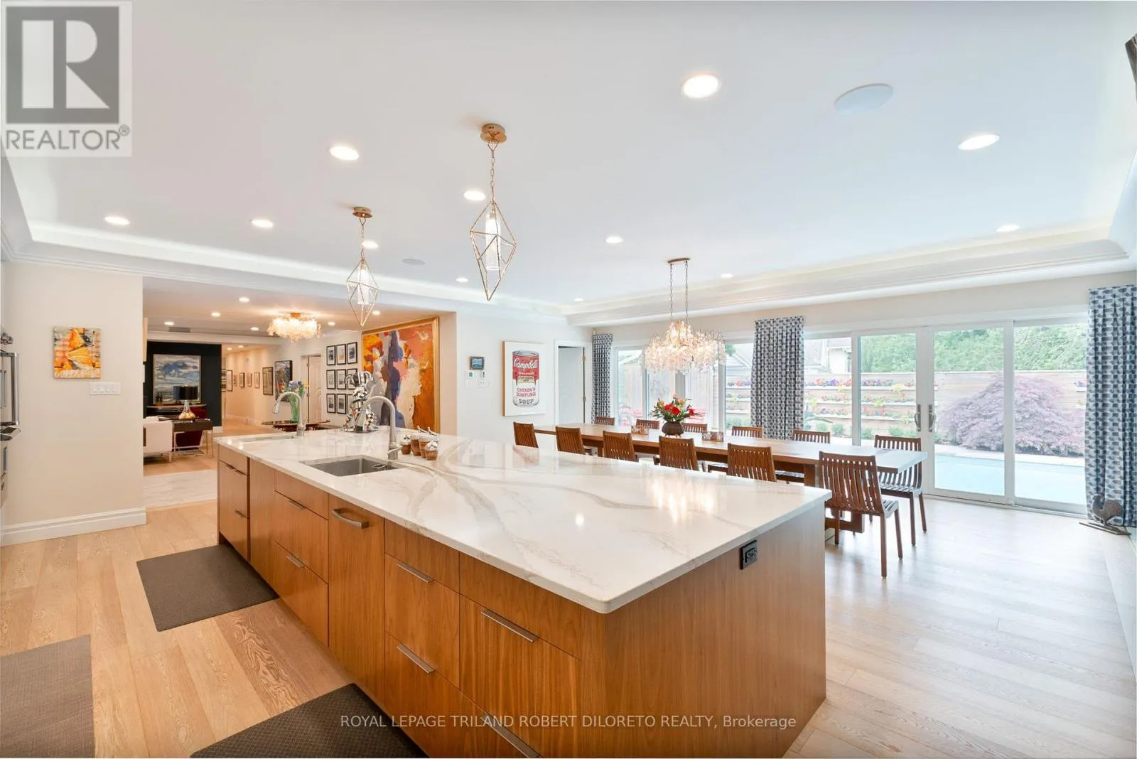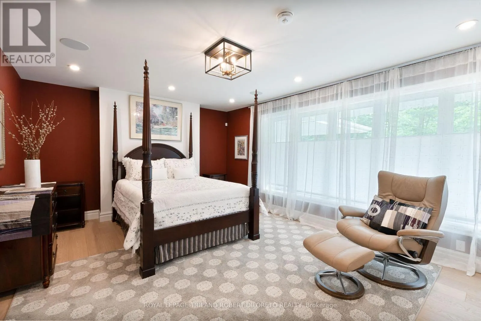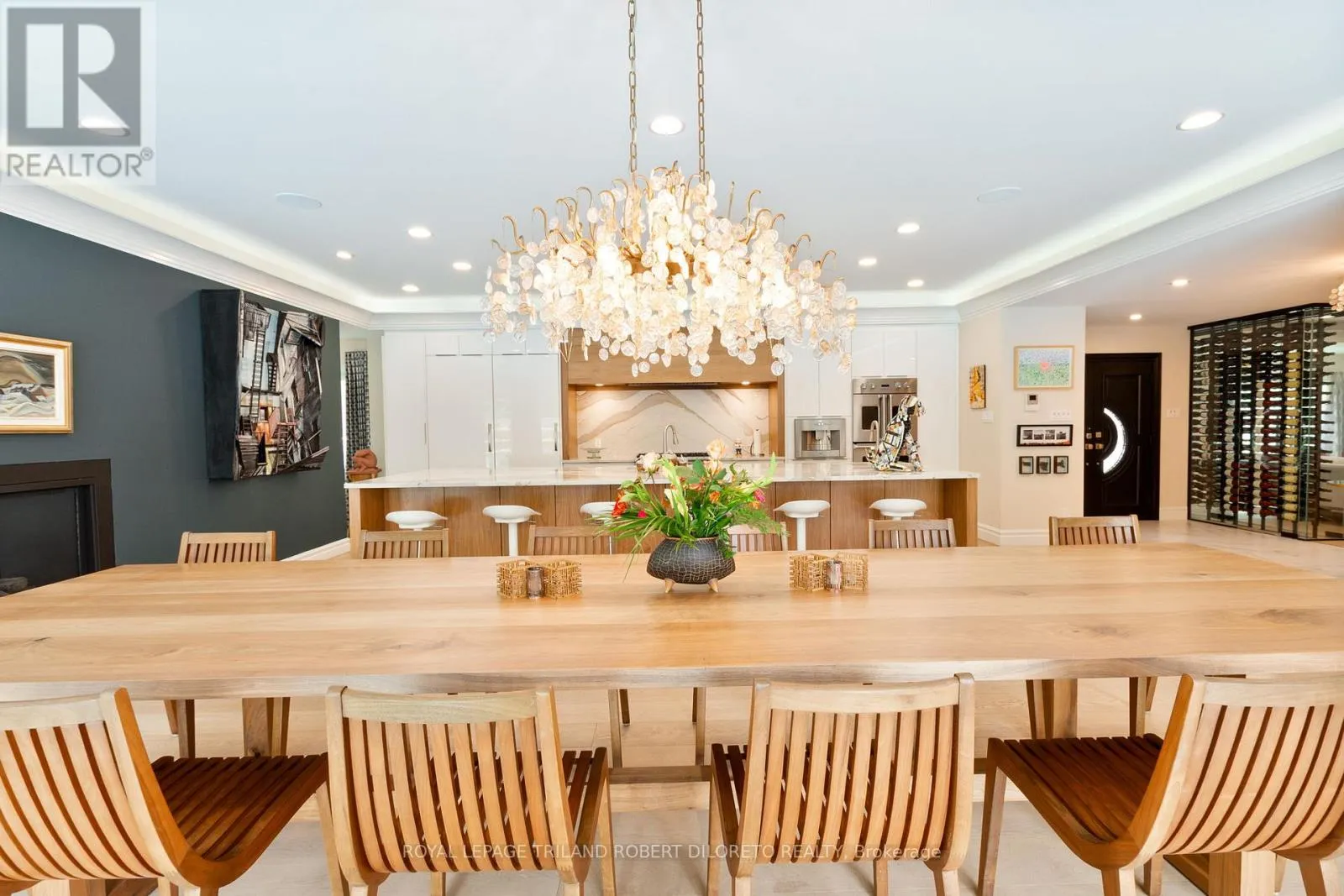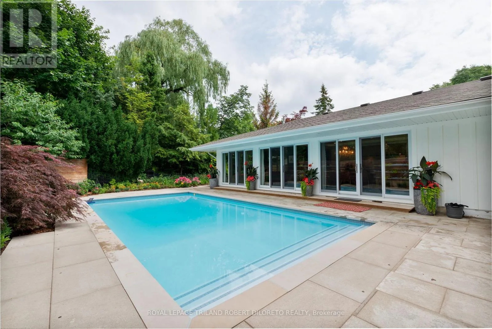 Cross Streets: Wychwood Park. ** Directions: Wonderland Rd N to Lawson. East on Lawson to Wychwood Park. North on Wychwood to property on corner of Wychwood & Doncaster. Once in a while a property comes along that raises the bar of luxury & convenience to another level! Situated on a huge mature lot nestled against "Medway Valley Heritage Forest" in executive "Sherwood Forest" community, is this incomparable 4 bedroom, 3 bath One floor executive w/Triple garage & private rear yard w/in-ground pool! With over 4000sf (main floor) of incredible space & luxury this home is super spacious yet warm & inviting! No expense has been spared for bespoke design & quality craftsmanship for extensive updates since 2018. Features: Exquisite curb appeal with professional landscaping & lighting, hardscaping & irrigation system; statement front entry beckons into breathtaking open concept layout; oversized windows flood the home w/plenty of natural light & neutral wall colours provide perfect backdrop to showcase fine art & furniture; recessed & custom lighting throughout; carpet free throughout w/light hardwood floors & tile plus in-floor heat throughout; all custom cabinetry; grand great room w/fireplace, custom wine cooler & drop down screen & projector; master chef's kitchen w/CAMBRIA counters, massive island, premium quality appliances incl. VIKING & GAGGENAU, butler's pantry w/extra dishwasher & sink; banquet-sized dining area w/walkout to rear yard; incredible grand piano-sized sun/family room w/double sided f/place to kitchen; 4 luxurious bedrooms rival finest upscale hotels & feature a primary bedroom suite like no other w/6pc bath & massive dressing room!; the lower level features a recreation room/exercise area and loads of storage. Additional Renovation highlights since 2018 include: electrical & plumbing, home automation, 3 furnaces & 3 ACs; updated foam insulation to basement floor & exterior walls, pool updates (concrete replastering 2025, mechanicals & plumbing 2023, heating through house boiler system), hot tub-2023, BBQ gas line; 2 sump pumps w/back up batteries; roof shingles, new epoxy floor in garage, garden shed & much more (id:27476)