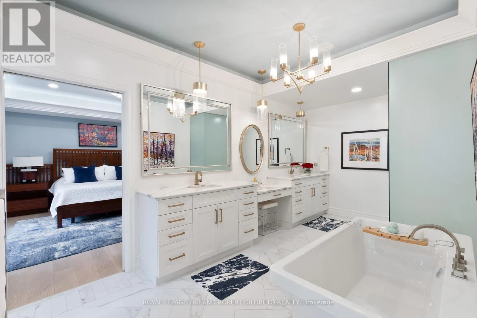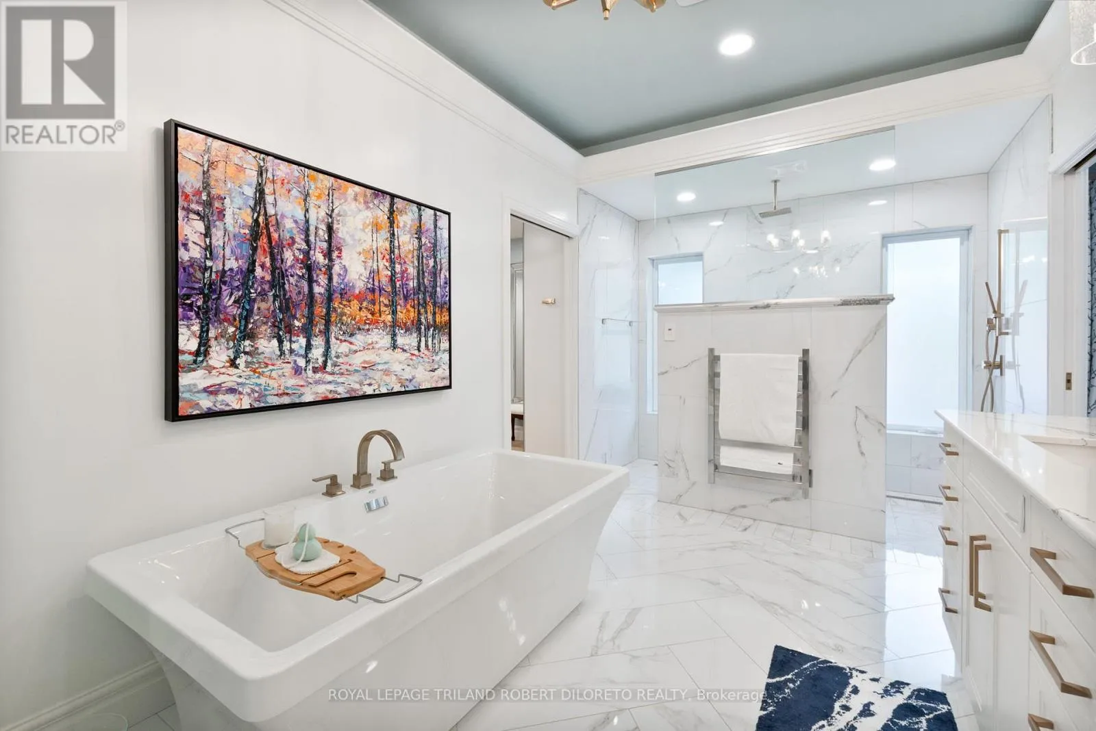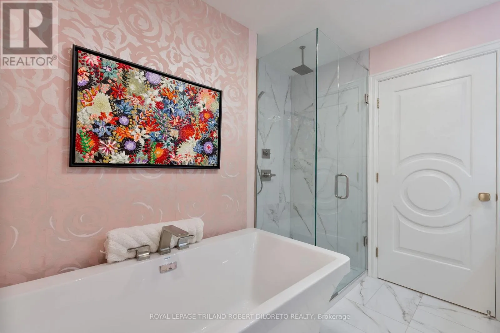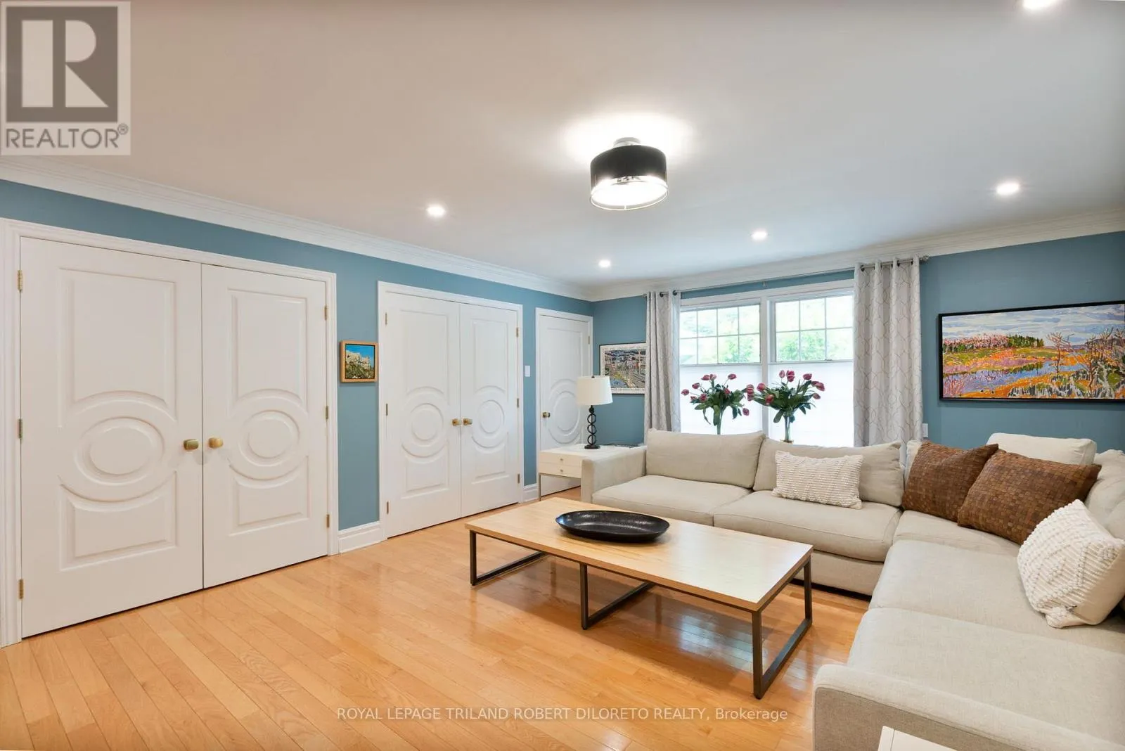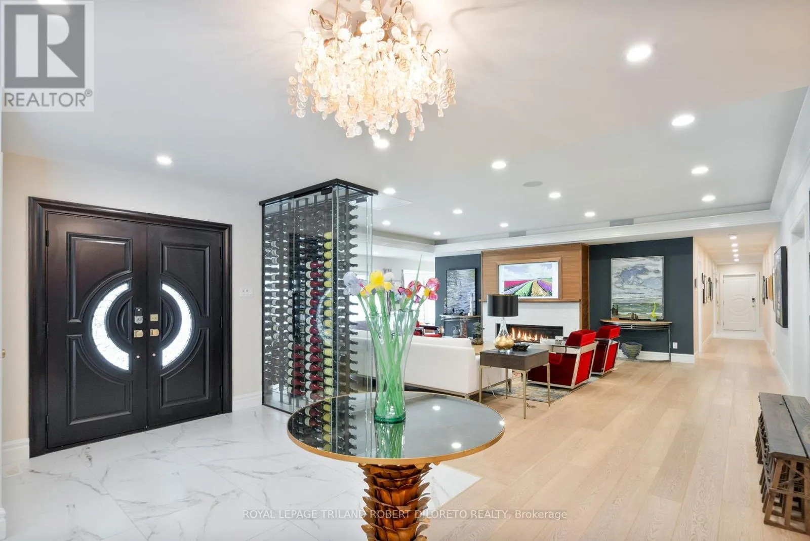 Cross Streets: Wychwood Park. ** Directions: Wonderland Rd N to Lawson. East on Lawson to Wychwood Park. North on Wychwood to property on corner of Wychwood & Doncaster. Once in a while a property comes along that raises the bar of luxury & convenience to another level! Situated on a huge mature lot nestled against "Medway Valley Heritage Forest" in executive "Sherwood Forest" community, is this incomparable 4 bedroom, 3 bath One floor executive w/Triple garage & private rear yard w/in-ground pool! With over 4000sf (main floor) of incredible space & luxury this home is super spacious yet warm & inviting! No expense has been spared for bespoke design & quality craftsmanship for extensive updates since 2018. Features: Exquisite curb appeal with professional landscaping & lighting, hardscaping & irrigation system; statement front entry beckons into breathtaking open concept layout; oversized windows flood the home w/plenty of natural light & neutral wall colours provide perfect backdrop to showcase fine art & furniture; recessed & custom lighting throughout; carpet free throughout w/light hardwood floors & tile plus in-floor heat throughout; all custom cabinetry; grand great room w/fireplace, custom wine cooler & drop down screen & projector; master chef's kitchen w/CAMBRIA counters, massive island, premium quality appliances incl. VIKING & GAGGENAU, butler's pantry w/extra dishwasher & sink; banquet-sized dining area w/walkout to rear yard; incredible grand piano-sized sun/family room w/double sided f/place to kitchen; 4 luxurious bedrooms rival finest upscale hotels & feature a primary bedroom suite like no other w/6pc bath & massive dressing room!; the lower level features a recreation room/exercise area and loads of storage. Additional Renovation highlights since 2018 include: electrical & plumbing, home automation, 3 furnaces & 3 ACs; updated foam insulation to basement floor & exterior walls, pool updates (concrete replastering 2025, mechanicals & plumbing 2023, heating through house boiler system), hot tub-2023, BBQ gas line; 2 sump pumps w/back up batteries; roof shingles, new epoxy floor in garage, garden shed & much more (id:27476)