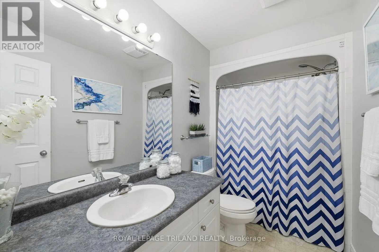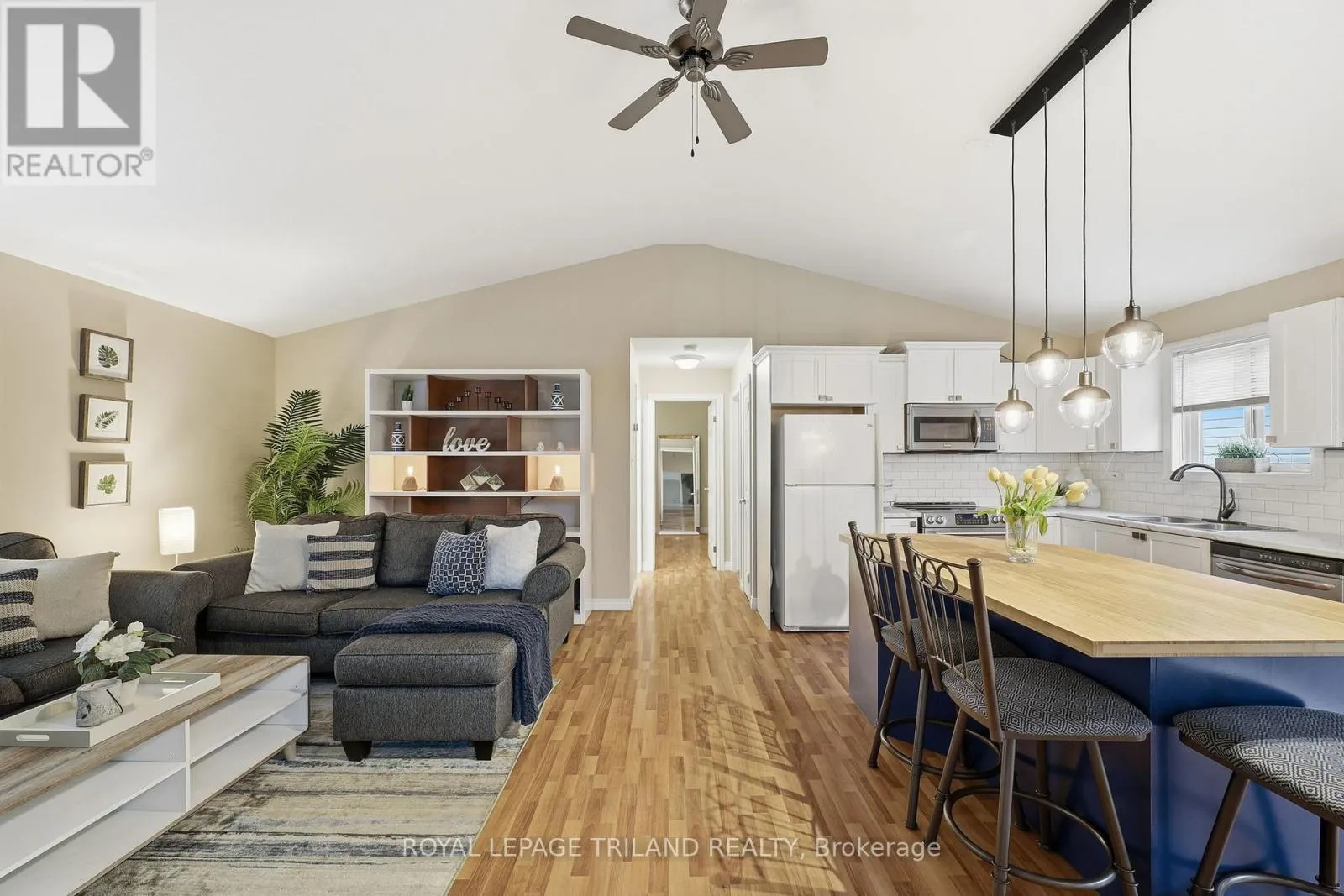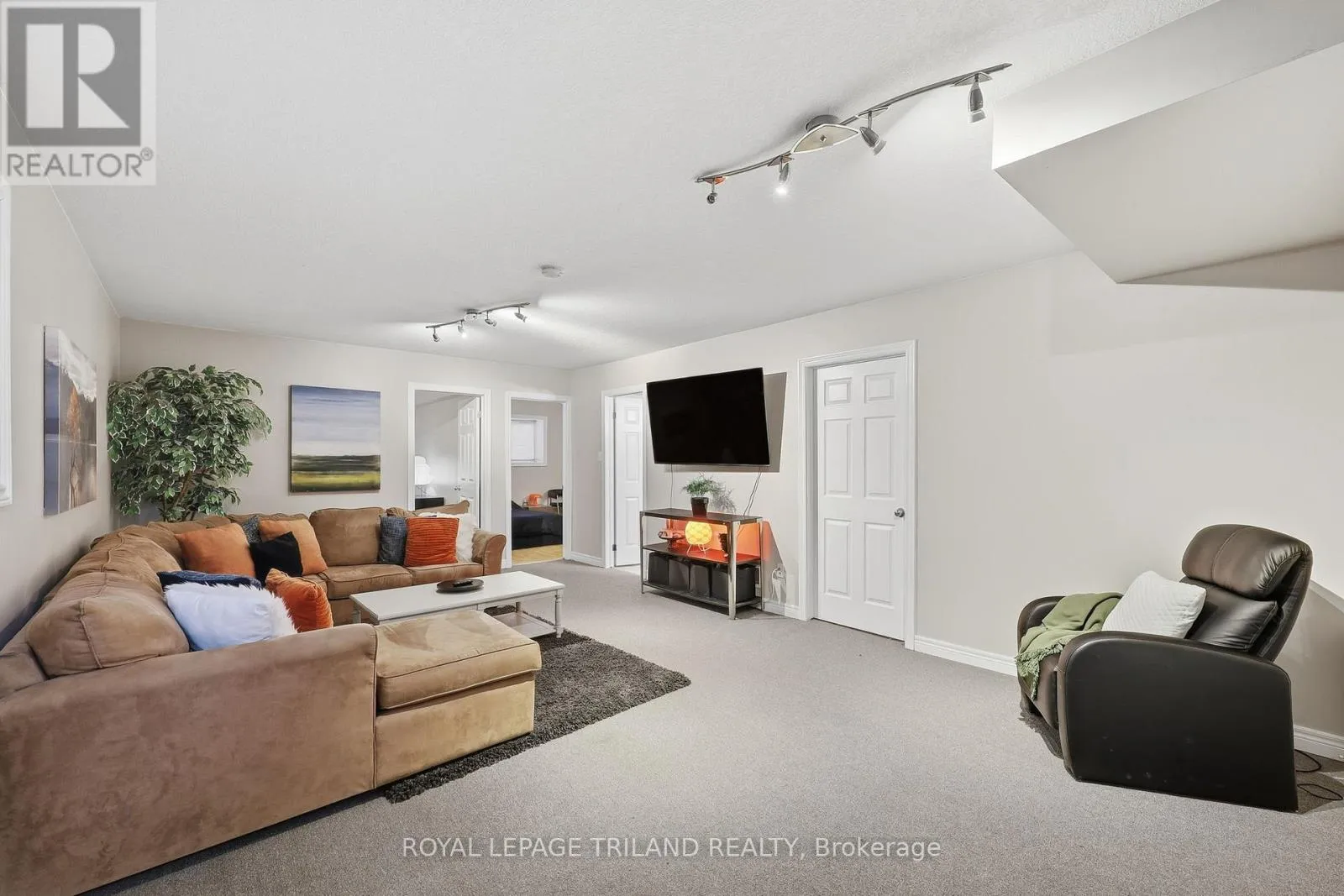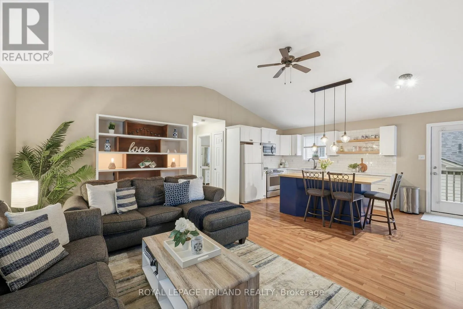 Cross Streets: Capulet Lane. ** Directions: Follow Capulet, which turns into Blythwood. House is located on the north side of Blythwood. Oakcrossing Gem! This raised bungalow built in 2004 offers just under 2,000 sq. ft. of bright, inviting, and family friendly living space. Start by stepping into the foyer, the perfect spot to kick off your shoes and hang your coats, with direct access to the garage. Upstairs, the open concept kitchen with island seating flows into the living area, where an electric fireplace creates a cozy and functional heart of the home. This level also includes two bedrooms, including a primary with a walk in closet and a full bathroom. The next level offers a bonus loft space, a versatile area ideal as a second living area, office, or even a fifth bedroom. The lower level, half above grade, is filled with natural light and features a spacious rec room, two additional bedrooms, a full bathroom, and a combined laundry and storage area. Outside, enjoy a double driveway, 1.5 car garage, large backyard, and deck. Perfectly located in northwest London near schools, parks, shopping, transit, and just a short commute to Western University. (id:27476)