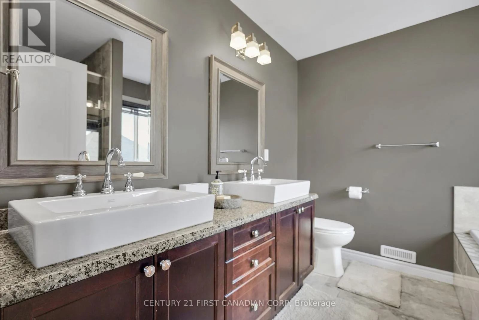 Cross Streets: Beaverbrook/ Wonderland Rd. ** Directions: Intersection of Whetherfield St / Beaverbrook Ave and Roulston St. Welcome to this beautiful family home in the highly sought-after Northwest London Neighbourhood. Offering approximately 2,000 Sq ft above grade plus a finished basement, this well maintained home was originally a model home and showcases quality finishes throughout. The open concept main floor features a spacious living room with hard wood flooring, a gas fireplace and a bright dining room. The kitchen boasts granite countertops, backsplash, a functional pantry and ample cabinetry. Upstairs, you will find a sun-filled family room, ideal for relaxing or as a versatile additional living space. Just a few steps up are three comfortable bedrooms, including a primary suite with a 5- piece ensuite and a walk-in closet with built-ins. A convenient second level laundry room completes this floor. The finished basement expands your living space with a recreation room, two additional bedrooms and a 3-piece bathroom, perfect for guests or teens. Step outside to enjoy the oversized high deck overlooking a beautifully recently landscaped backyard (2025) ideal for outdoor gatherings. Recent updates include Three new split units for added cooling and heating comfort in the family room, primary bedroom and the third bedroom (2025). The concrete drive way has been extended to become a three car parking space (2019). New Fridge with warranty (2023). New Stove with warranty (2025). New gas line for an option of a Gas Stove (2025). New Kitchen sink (2024). Carpet in the second level was replaced in (2022). New Stucco exterior (2024).This home is ideally located close to schools, parks, restaurants and shopping centers. Don't miss your chance to view this exceptional property that is the perfect place to call home. (id:27476)