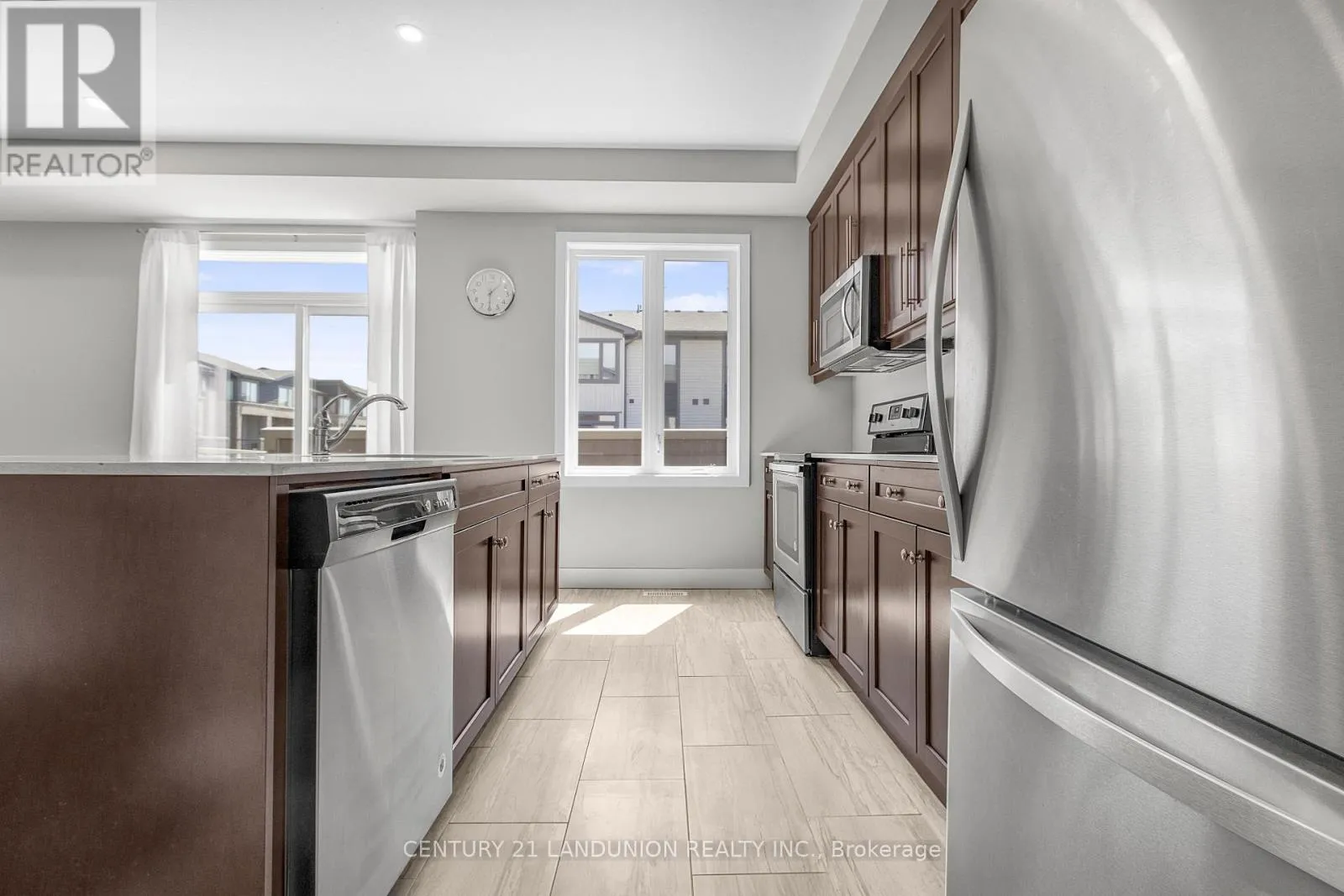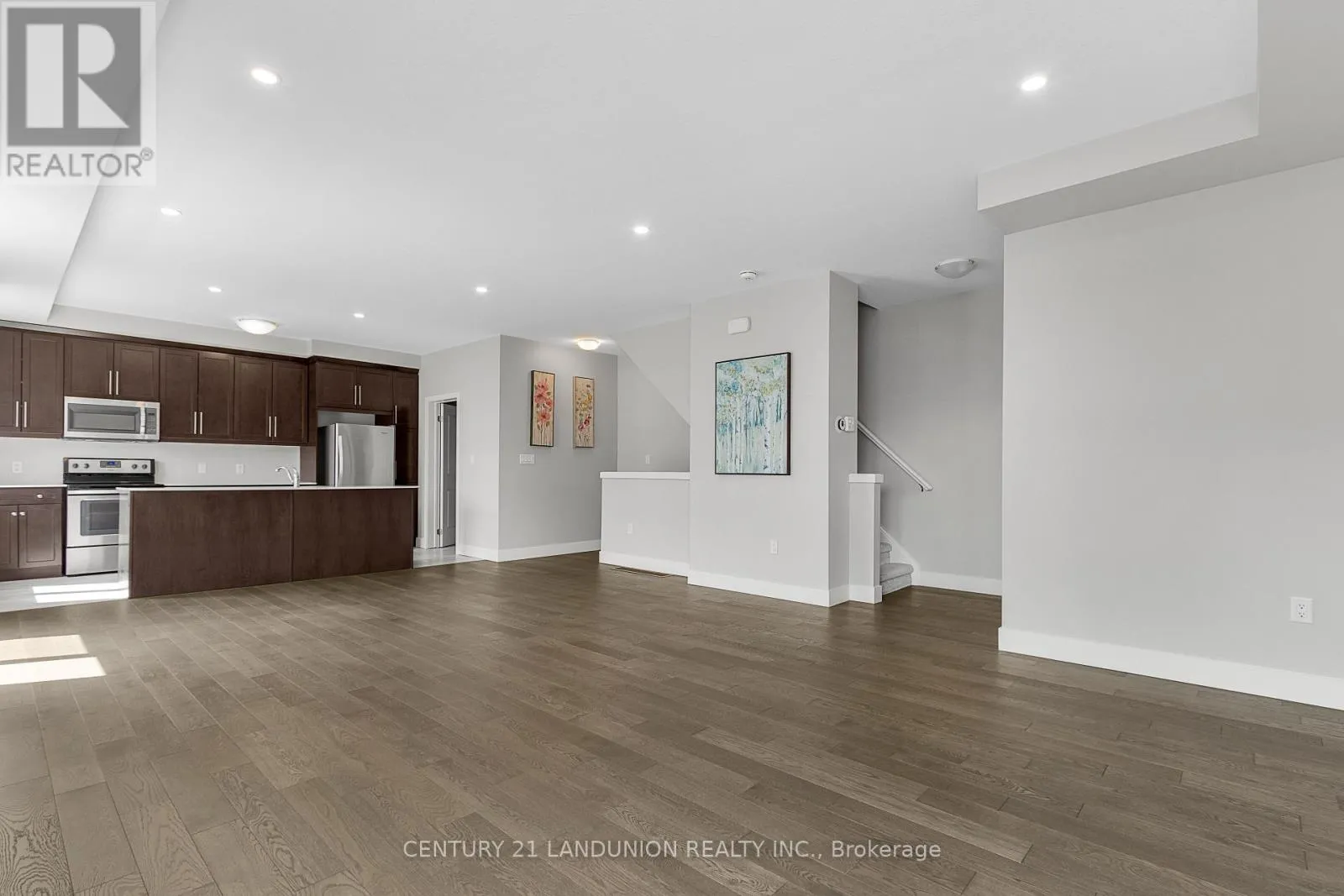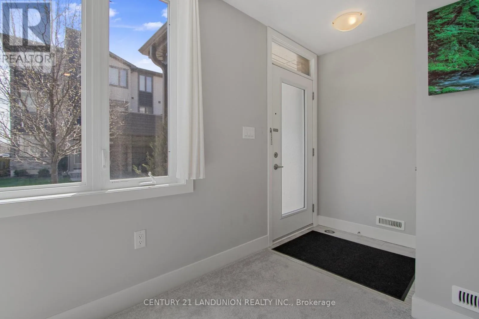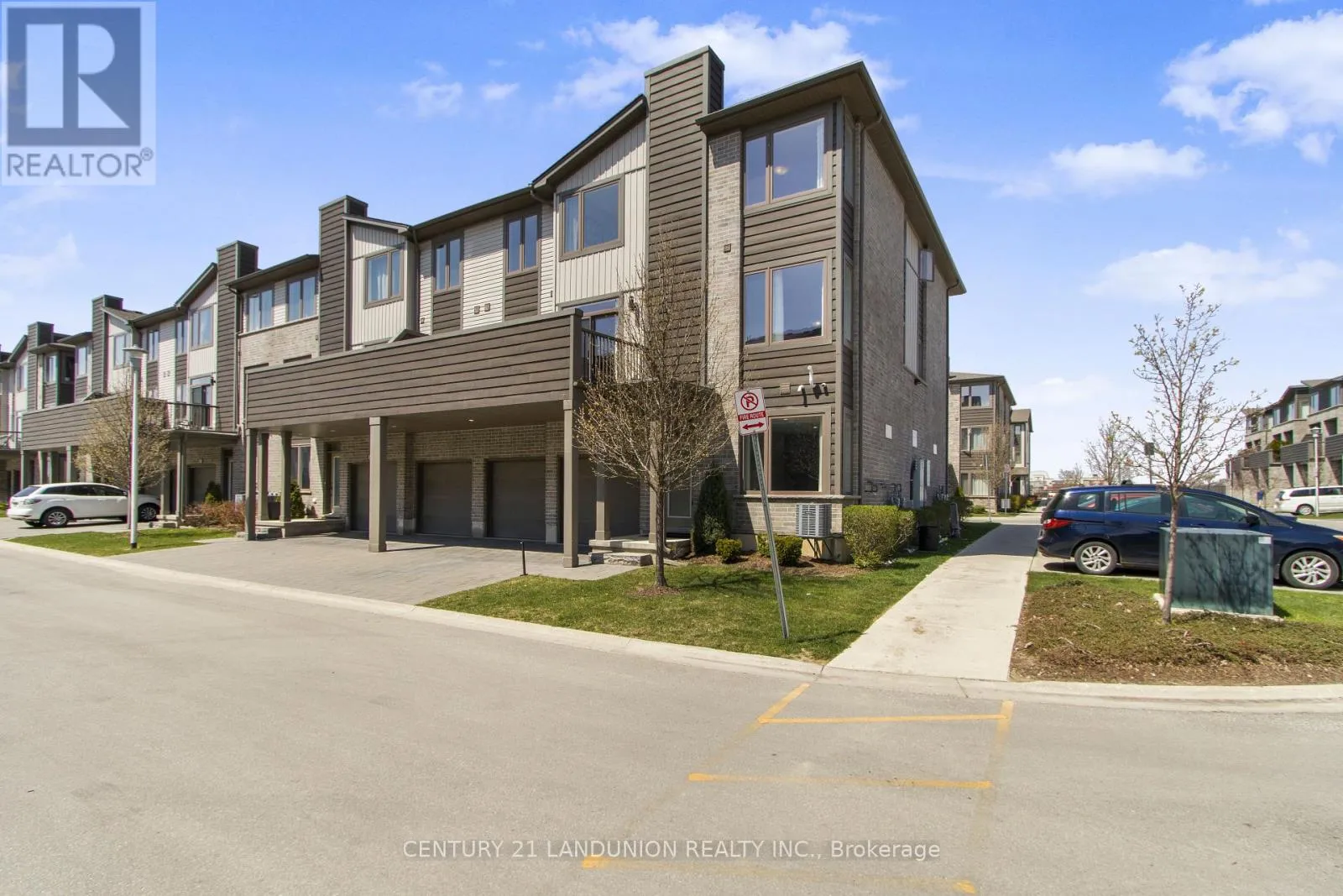 Cross Streets: Fanshawe Park Rd W. ** Directions: Fanshawe Park Rd W/ DalmagarryRd. Rare double garage end-unit townhouse condo offering 1802 sqft of modern, thoughtfully designed living space in Londons sought-after HydePark community. This 3-bedroom, 2.5-bath home features a functional three-level layout. The main floor flex room is ideal as a second livingarea, home office, or library perfect for professionals working remotely.The bright, open-concept second floor showcases 9-ft ceilings and aspacious family and dining area with large windows and unobstructed views. A sleek, contemporary kitchen with quartz countertops, stainlesssteel appliances, and ample cabinetry flows seamlessly into the living space and opens to a private balcony. Just off the kitchen, a full-sizedlaundry and storage room adds everyday convenience and functionality.Upstairs, the primary suite features a walk-in closet and ensuite bath,complemented by two additional bedrooms and a shared full bathroom. As an end unit, this home benefits from added privacy and abundantnatural light. Situated in a well-managed, low-fee complex, and located just minutes from shopping, dining, schools, parks, and WesternUniversity, this home offers modern style, smart layout, and exceptional value. (id:27476)
