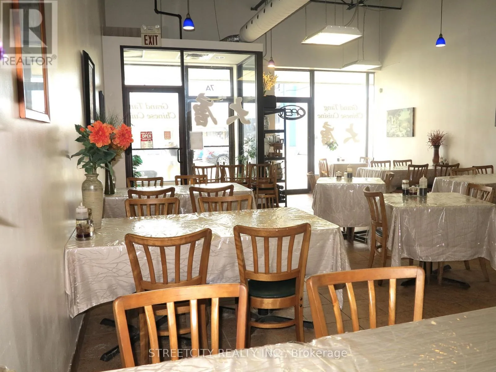 Cross Streets: OXFORD ST W. ** Directions: OXFORD ST W SOUTH TO WONDLERLAND RD N. Located next to T&T Supermarket and near Costco, Grand Tang Chinese Cuisine is a well-known Chinese eatery in North-West London. Nestled in a bustling commercial hub with high-rise buildings and various retail stores, it enjoys excellent public transit connections to Western University, Fanshawe College, White Oaks Mall, and Masonville Mall. Operated successfully by its current owner for over a decade, Grand Tang Chinese Cuisine has a loyal customer base and consistent performance, yet it still has great growth potential. The restaurant operates on a limited schedule - open just 3 days a week from 5 PM to 9 PM for dine-in dinner only, without takeout or a liquor license, and closes for 3 months each year. The 1,178-square-foot space accommodates 34 seats, with affordable rent and a lease that has four years remaining. (id:27476)