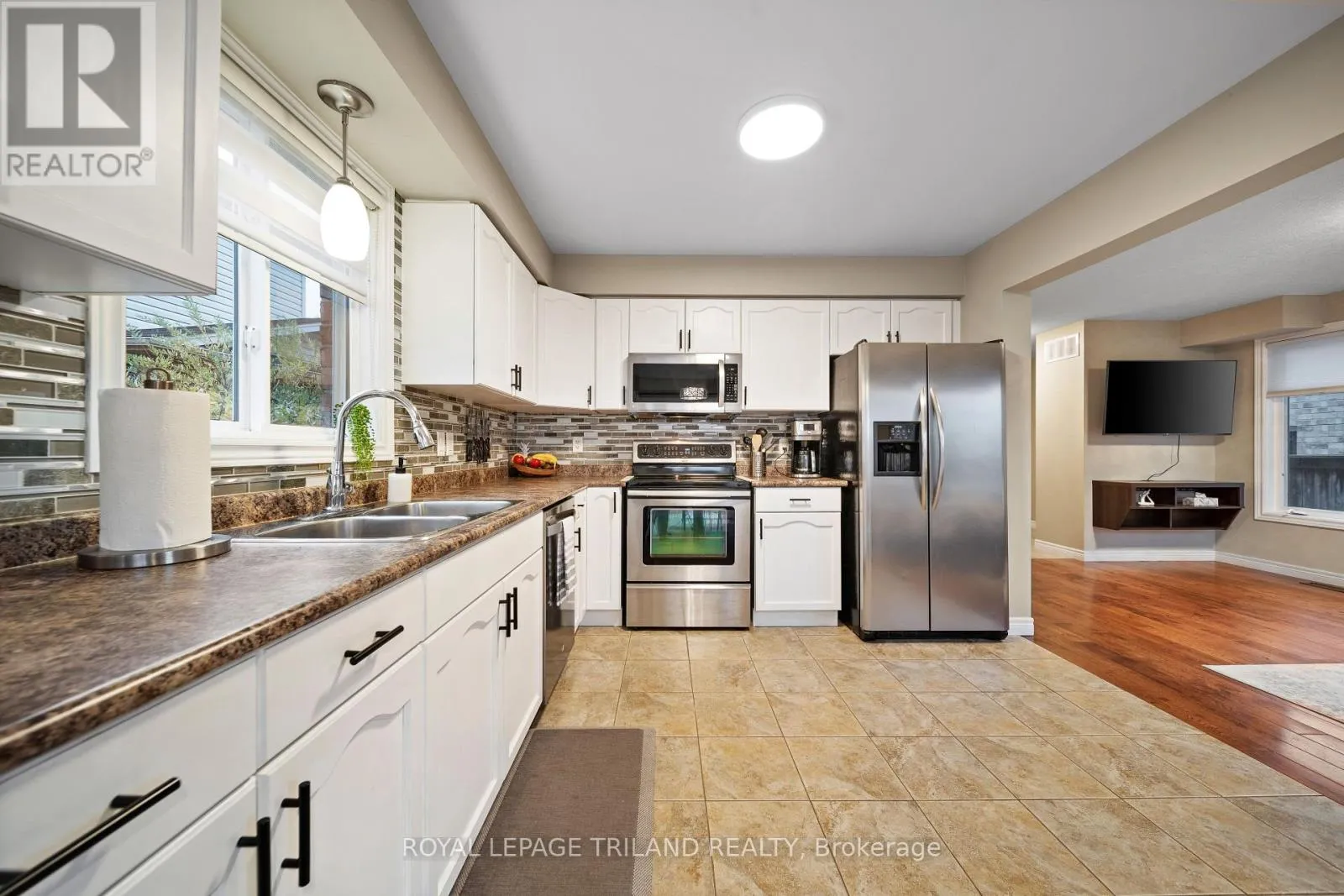 Cross Streets: FOXWOOD AVE. ** Directions: NORTH ON FOXWOOD AVE, LEFT ONTO FOXCREEK. IN LONDONS' NORTHWEST COMMUNITY OF FOXFIELD, THIS TWO STOREY FAMILY HOME IS IN PRISTINE CONDITION AND READY FOR YOU TO CALL HOME! FINISHED ON ALL THREE LEVELS TO MAXIMIZE TOTAL LIVING SPACE, THIS 3 PLUS ONE BEDROOM, 4 BATHROOM HOME IS PERFECT FOR A GROWING FAMILY. OPEN CONCEPT MAIN FLOOR LIVING INCORPORATES LIVING, KITCHEN AND DINING AREAS WHICH FLOW SEAMLESSLY TOGETHER. A SURPRISINGLY LARGE, MODERN KITCHEN WITH TILED FLOORING, WHITE BRIGHT CABINETRY, STAINLESS APPLIANCES AND DESIGNATED DINING WITH ACCESS TO THE REAR YARD. CONVENIENT 2 PC BATH AND INSIDE GARAGE ACCESS COMPLETE THE MAIN. 2ND LEVEL INCLUDES A MASTER WITH HARDWOOD FLOORING, 3 PC ENSUITE AND WALKIN CLOSET, TWO MORE AMPLE BEDROOMS AND 4 PC BATH. THE LOWER LEVEL IS TOTALLY FINISHED, INCLUDING A COSY FAMILY ROOM WITH ELECTRIC FIREPLACE, AN EXTRA BEDROOM, 2 PC BATH AND LAUNDRY. THE REAR YARD IS A PERFECT ENTERTAINING SPACE WHICH INCLUDES AND OUTDOOR KITCHEN WITH GRILL AND BAR FRIDGE,, AND OUTDOOR FIREPIT AREA, AND A CONVENIENT GARDEN SHED. A CONCRETE DOUBLE FRONT DRIVE, PROFESSIONAL LANDSCAPING AND COVERED FRONT PORCH ADDS TO THE HANDSOME CURB APPEAL OF THIS HOME. WITH JUST A TURN OF THE KEY, THIS HOME COULD BE YOURS! (id:27476)