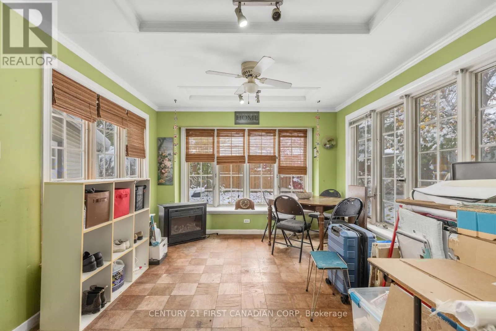 Cross Streets: GLENORA DRIVE - GLENGYLE CRESCENT. ** Directions: FROM MCLEAN DRIVE, TURN LEFT ON GLENORA DRIVE, THEN RIGHT ON GLENGYLE CRESCENT. Welcome to this beautiful side-split home nestled in one of North London's most sought-after neighbourhoods. Ideally located just steps from Northridge Public School, St. Marks Catholic Elementary, and walking distance to Lucas S.S. It is also conveniently located just steps away from Dalkeith park, perfect for summer picnics, climbers, and a winter skating rink, as well as Northridge P.S.'s public pool, and lots of hiking trials. Home includes sunroom off the back, detached garage and superior location on quiet crescent! This classic home also features a separate entrance to the lower level, and a layout ideal for multi-generational living or income generation. Rare find in Northridge. Whether you're an investor looking for an opportunity, a family seeking a flexible living space, or a homeowner with an eye for future value, this property delivers. (AS IS) (id:27476)